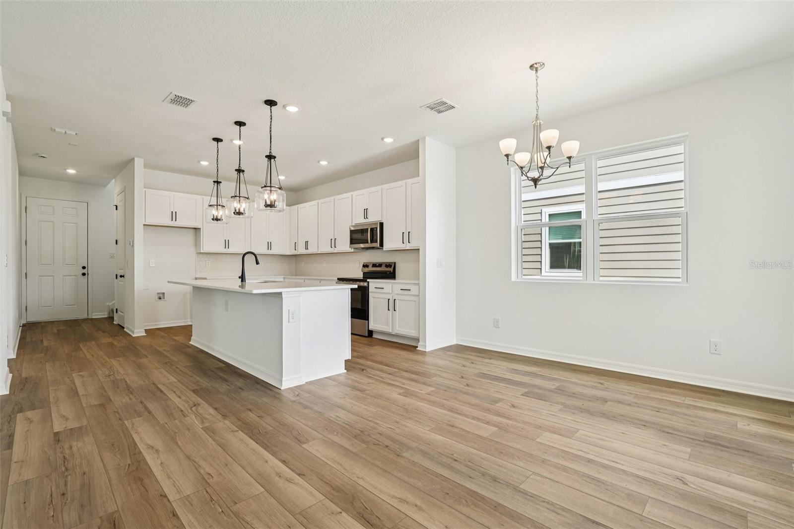Bem-vindo a esta casa de dois andares lindamente projetada no charmoso condomínio de Ellington Place, em St. Esta planta de conceito aberto oferece 4 quartos e 3 banheiros completos, proporcionando muito espaço para relaxamento e entretenimento. A casa possui piso de pranchas de vinil com aparência de madeira em todas as principais áreas de estar e uma garagem traseira para 2 carros que aumenta a atratividade do meio-fio. A cozinha moderna é o coração da casa, apresentando armários de 42", bancadas de quartzo, um elegante backsplash de azulejos e eletrodomésticos de aço inoxidável, incluindo fogão, micro-ondas e lava-louças. Projetada com estilo e função em mente, esta casa reflete um artesanato excepcional e detalhes atenciosos por toda parte. Aproveite a vida em uma comunidade pitoresca com baixas taxas mensais de HOA e sem CDD, convenientemente localizada perto de SR 417, Lake Nona e a área de Sunbridge, oferecendo fácil acesso a lojas, restaurantes e escolas de primeira linha.