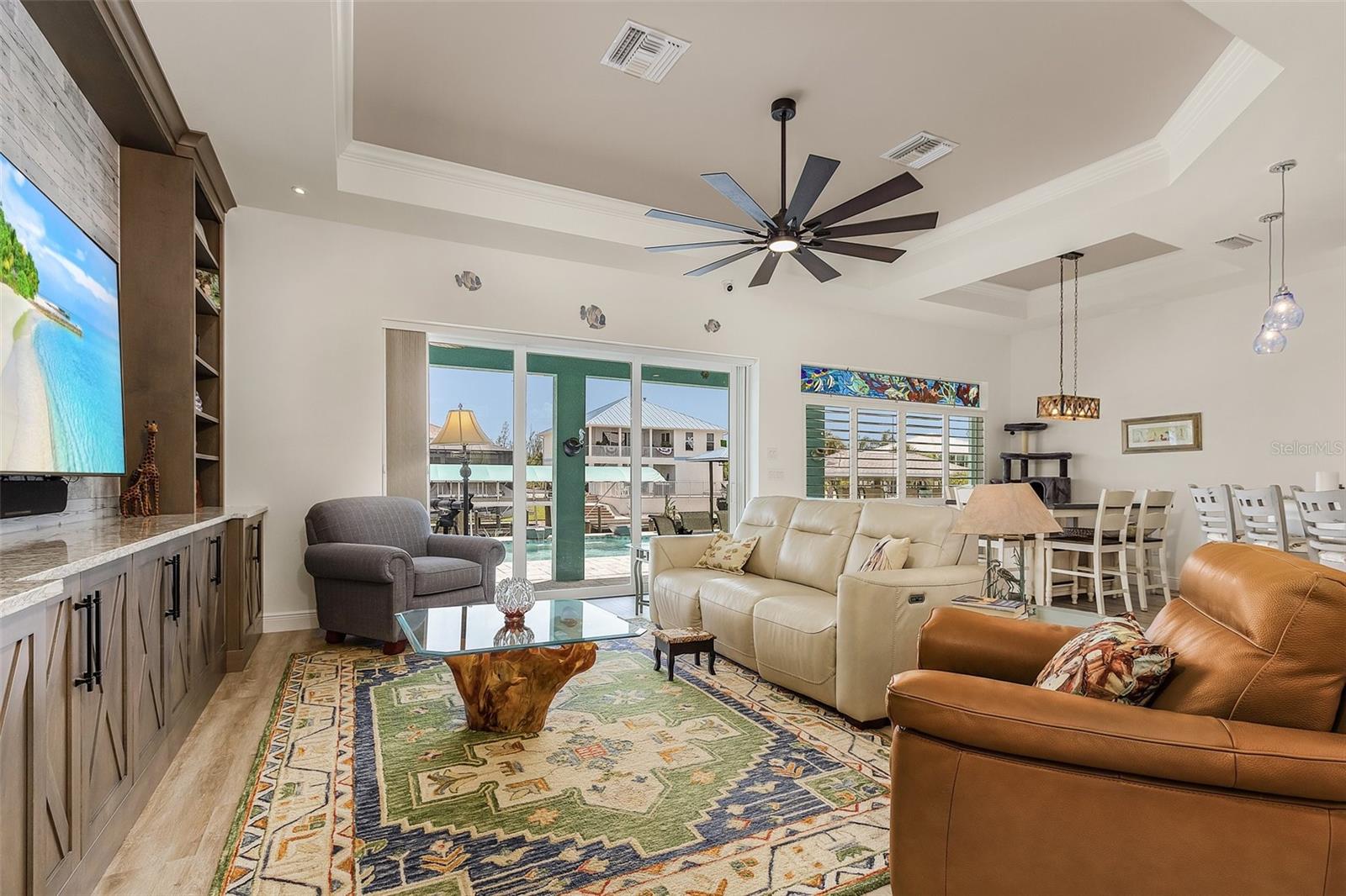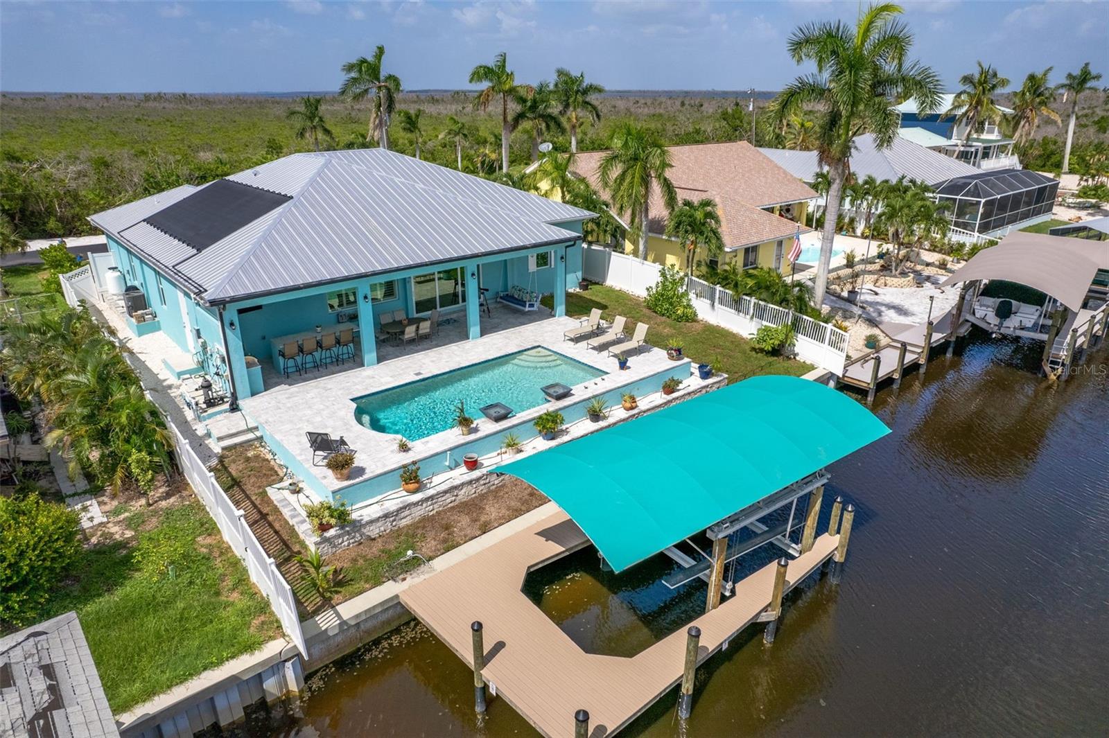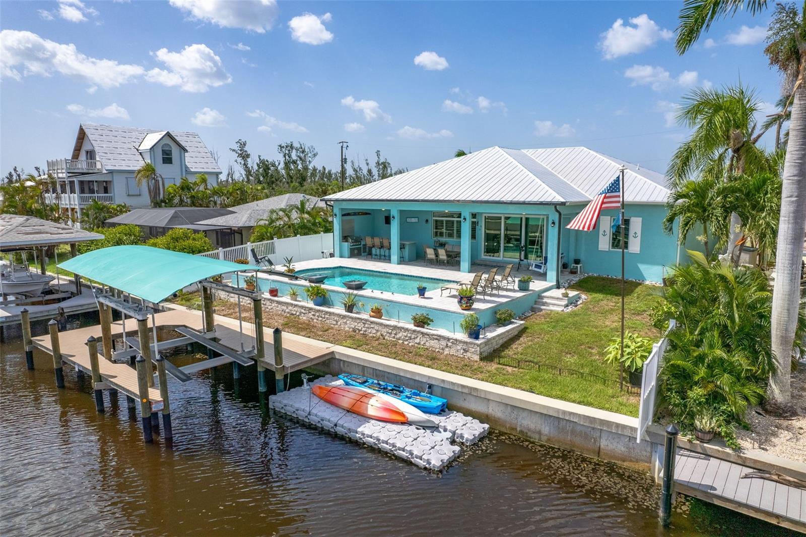 Alto e seco! Esta casa de piscina imaculada de 2020, em 2020, fica a mais de 9 pés de elevação. Oferecendo um paredão mais novo para a paz de espírito. Idealmente, meados da Ilha, para acesso conveniente a compras, restaurantes e todas as atrações locais. Esta bela propriedade turnkey, construída há menos de três anos, oferece luxo moderno, artesanato excepcional e comodidades incomparáveis, incluindo tratamentos de teto personalizados. Um telhado de metal durável e uma construção superior garantem a paz de espírito por anos. Construído para os códigos de construção mais rigorosos e atuais, essa residência nunca experimentou intrusão de água e resistiu aos elementos sem danos ao furacão. Esta casa está em condição pronta e pronta para mover-se. No interior, os móveis de inspiração costeira são organizados com bom gosto. O quarto principal possui uma cama king-size, o segundo quarto é equipado com uma cama queen-size e o terceiro quarto inclui uma cama cheia e uma mesa pequena para versatilidade. A espaçosa grande sala oferece uma poltro de couro reclinável e um sofá de couro elétrico, proporcionando luxo e conforto para relaxar ou divertir na frente de uma TV de tela grande. A cozinha gourmet gourmet com acabamentos de última geração e o forno de gás combustível duplo duplo comercial de um chef se abre perfeitamente nos espaços de estar, criando uma atmosfera quente e convidativa. Ao ar livre, seu oásis particular aguarda. Relaxe pela linda piscina de água salgada, equipada com um sistema de neblina que substitui as telas tradicionais, permitindo vistas desobstruídas do canal cintilante. Hospedar reuniões inesquecíveis na cozinha externa totalmente equipada ou relaxar no ambiente tranquilo. Os velejadores vão se deliciar com o acesso do canal profundo com um elevador de barco coberto de 10.000 libras, perfeito para caiaque sereno, pescar ou explorar as águas abertas. O robusto parede do mar tem apenas 4 anos! Esta residência e o pátio tropical de baixa manutenção são inteiramente confiados por privacidade e segurança. Um sistema de segurança de irrigação e de última geração completa seu paraíso tropical. Uma espaçosa garagem de 3 carros mais espaço extra para uma oficina e a propriedade de 25 'x 80' do outro lado da rua oferece amplo espaço para veículos, barcos e brinquedos! Comunidade privada de Manatee Bay apresenta sua própria rampa de barcos e fica ao lado da bela Trail da Calusa Land Trust, um refúgio para observadores de pássaros e amantes da natureza. Esta casa sob medida é realmente proibida e pode estar pronta para uma ocupação muito rápida, oferecendo um potencial excelente como um aluguel de férias de alta renda. Os vendedores são motivados! Bônus: um barco de deck Tretoon de 2023, 22 pés com horas muito baixas está disponível para compra separada para aproveitar ao máximo o estilo de vida da hidrovia. Não perca a chance de possuir esta ilha schedule da sua exibição hoje!