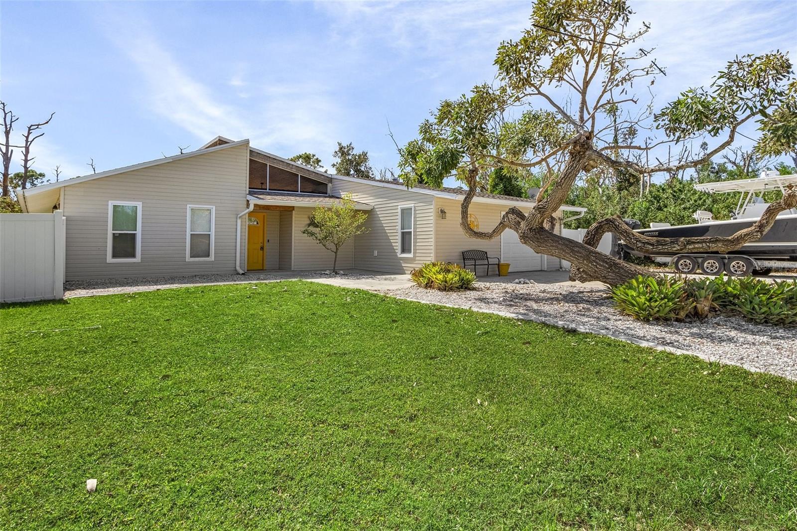 Esta casa de átrio exclusiva inspirada em Frank Lloyd Wright em Pine Island é uma joia rara, oferecendo um estilo de vida sereno na Flórida perto de uma rampa pública para barcos. Pronta para morar e meticulosamente atualizada, esta casa de 2 quartos e 2 banheiros fica em um espaçoso lote DUPLO com amplo espaço para estacionar um barco grande e um lote perfeito para colocar em seu oásis de piscina subterrânea. O amplo átrio com tela o torna perfeito para entretenimento, enquanto a localização da propriedade, voltada para preservar o terreno, garante maior privacidade. As melhorias recentes incluem: Novo telhado (2018) Serviço elétrico de 200 A atualizado (2018) Janelas e portas resistentes a furacões Nova unidade de ar condicionado (2017) Nova cerca (2022) Novos armários de cozinha com bancadas de quartzo MAIS um enchimento de panelas conveniente em toda a linha Esta propriedade combina atualizações modernas com um design atemporal - ideal para quem busca a paz de viver em Pine Island! Pine Island é um oásis tranquilo longe do barulho de Fort Myers, mas a uma curta distância de carro de tudo o que você precisa. A ilha oferece um grande senso de comunidade, uma sensação de cidade pequena, um refúgio na Flórida, perfeito para viver o ano todo ou para alugar como Airbnb. Não deixe de agendar uma exibição e veja por si mesmo que ótima casa é essa. Para sua informação...Esta casa não sofreu danos causados pelos furacões Helene ou Milton.