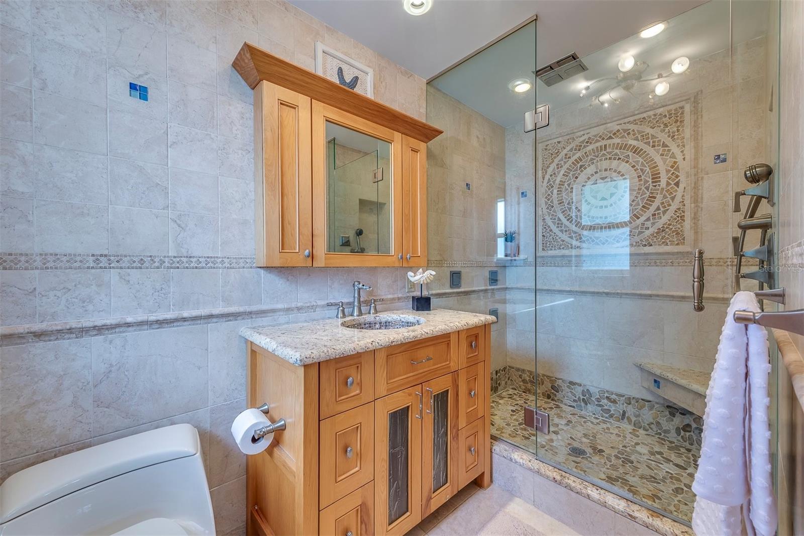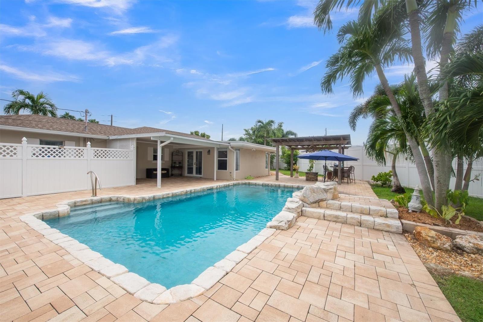 Uma ou mais fotos foram virtualmente encenadas. Bem-vindo à casa dos seus sonhos, escondida no final de uma rua tranquila no altamente cobiçado bairro de Boca Ciega Isle! Esta requintada residência de três quartos e três banheiros fica em um espaçoso lote duplo, oferecendo o equilíbrio perfeito entre luxo e conforto. A poucos passos das melhores praias do condado, a casa se estende por mais de 2.200 pés quadrados e possui uma planta aberta e arejada, repleta de luz natural. A cozinha gourmet é o sonho de qualquer chef, equipada com eletrodomésticos de última geração, elegantes bancadas e backsplash de granito e amplo armazenamento - ideal para cozinhar no dia a dia e para entretenimento. A ampla área de estar inclui uma grande sala de mídia, perfeita para infinitas possibilidades de entretenimento. O encanto costeiro é realçado pelas venezianas em quase todas as janelas. Os quartos lindamente decorados proporcionam um retiro tranquilo, com a suíte principal com banheiro privativo. Relaxe no box amplo com chuveiro relaxante e oito jatos corporais, ou desfrute de um mergulho na banheira de hidromassagem do banheiro de hóspedes. As portas francesas na sala de mídia levam a um pátio coberto revestido de pavimentação, onde você encontrará uma piscina de água salgada cintilante com cascata e luzes que mudam de cor. Perfeito para se refrescar ou organizar reuniões à beira da piscina. Relaxe sob o telhado de zinco da cabana Tiki enquanto o som da cachoeira contribui para a atmosfera tranquila. O quintal, cercado por uma cerca de vinil branco de 2,5 metros de altura, oferece o máximo de privacidade. Com o amplo lote duplo, há muito espaço para atividades ao ar livre e relaxamento, permitindo que você abrace totalmente o estilo de vida praiano da Flórida. Além disso, a propriedade oferece potencial para dividir o lote e construir duas casas separadas. Não perca a oportunidade de personalizar esta extraordinária propriedade!