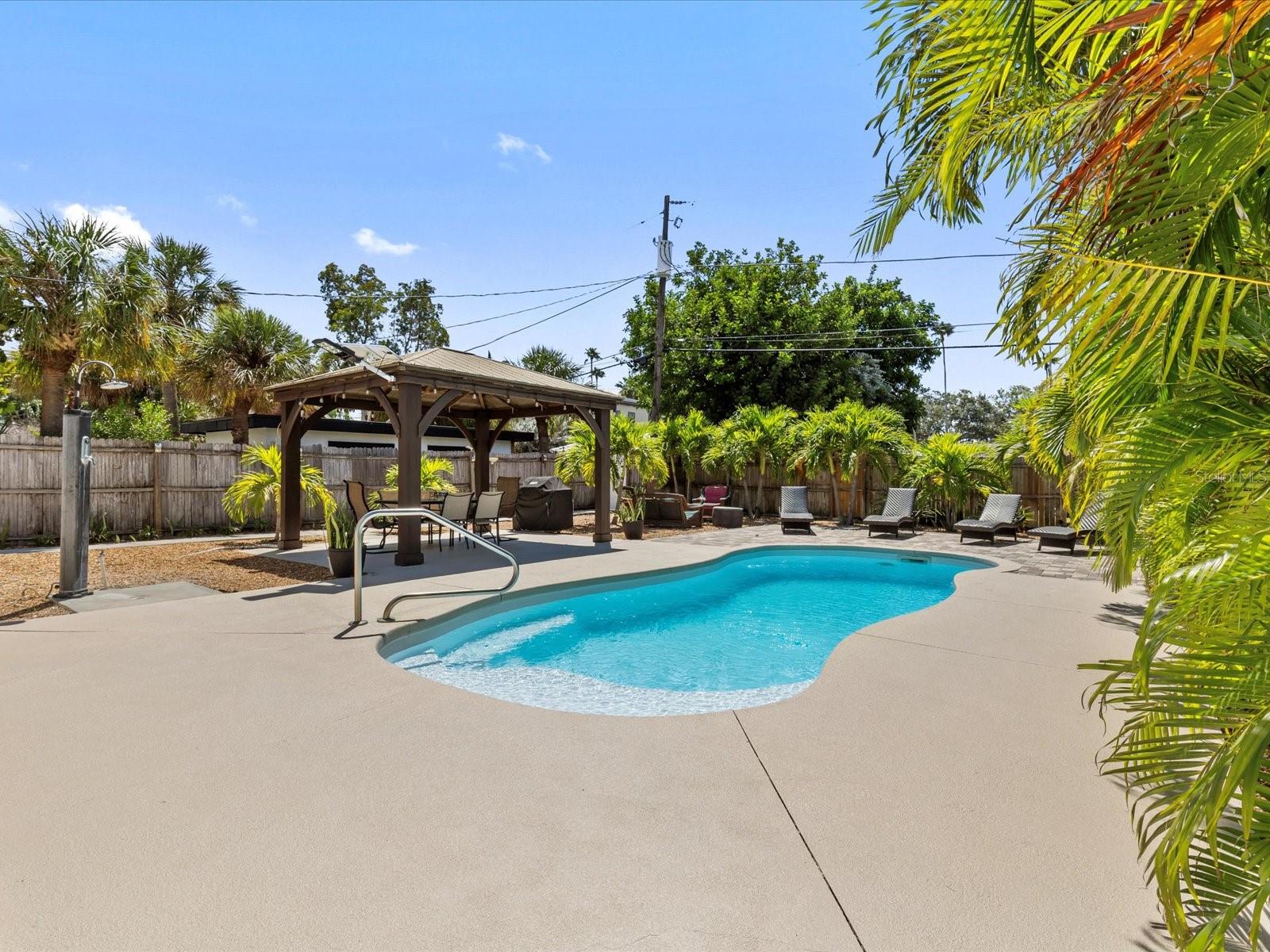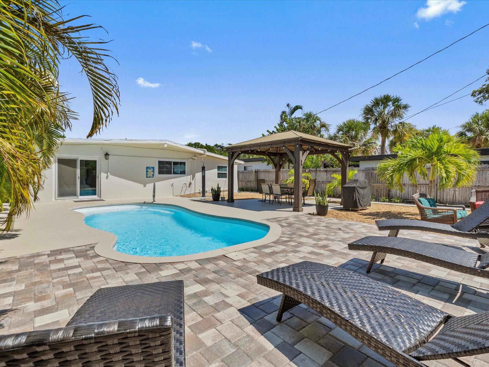 Aqui está a oportunidade de possuir sua Florida Beach House. Esta casa com piscina de 3 quartos e 2 banheiros é mobiliada com chave na mão. Esta propriedade está perfeitamente situada a poucos passos das belas praias arenosas de St. Pete Beach, nas sombras do Don Ce Sar Hotel. Com sua convidativa apelação e paisagismo tropical exuberante, esta casa oferece uma recepção calorosa desde o momento de sua chegada. Entre para descobrir uma planta aberta iluminada e arejada que combina perfeitamente o conforto moderno com o charme costeiro. A espaçosa sala de estar dispõe de grandes janelas que inundam o espaço com luz natural, criando um ambiente convidativo. A cozinha é uma delícia para o chef, com bancadas de quartzo e amplos armários. Retire-se para a suíte master, um santuário tranquilo completo com banheiro privativo. Dois quartos adicionais oferecem flexibilidade para família, convidados ou home office, com um segundo banheiro próximo. O espaço exterior totalmente vedado é um verdadeiro destaque, com uma piscina privada de água salgada com aquecimento solar e um pátio coberto perfeito para o café da manhã ou reuniões à noite. O exuberante quintal oferece muito espaço para relaxar ou brincar, cercado por folhagens tropicais que realçam o ambiente sereno e privado. Localizado no coração de St. Pete Beach, você terá fácil acesso a lojas locais, restaurantes e atividades recreativas. É um refúgio ideal para quem procura o melhor estilo de vida costeiro ou uma casa de investimento lucrativa que gere rendimentos de aluguer. Esta linda casa fica a poucos minutos da I-275, facilitando o deslocamento para qualquer lugar na área da Baía de Tampa. Você pode caminhar até o extremo leste da rua e pescar na Baía de Boca Ciega ou caminhar até o parque do bairro na próxima rua. Agende hoje mesmo sua exibição privada e comece a viver a vida na praia que você sempre sonhou.