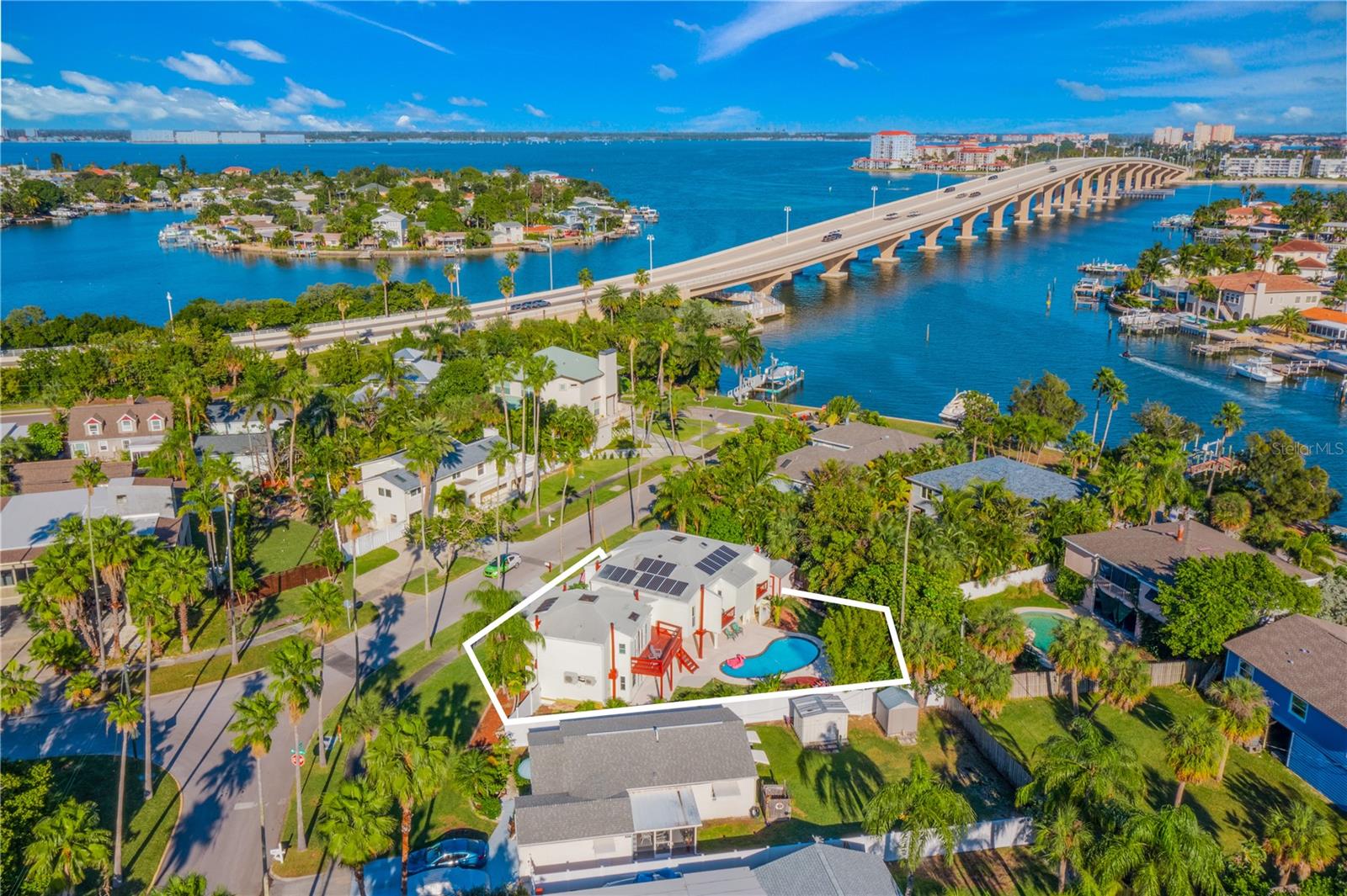 Bem-vindo à Pier House, uma impressionante casa executiva à venda no exclusivo bairro de Don Cesar, em St. Pete Beach. Esta residência com design exclusivo oferece uma combinação perfeita de luxo e tranquilidade, com sua posição elevada proporcionando um ambiente semelhante ao de uma casa na árvore. No interior, a área de estar em conceito aberto é destacada por tectos abobadados e uma clarabóia central, oferecendo muita luz natural. A cozinha do chef, completa com bancadas de quartzo e eletrodomésticos de última geração, é o sonho de qualquer entusiasta da culinária. A casa possui três espaçosos quartos com banheiro privativo, cada um com banheiro privativo e varanda, enquanto a suíte master oferece vistas deslumbrantes do Canal Pass-a-Grille. Saia para desfrutar de uma piscina privada, um amplo quintal com exposição ao sul e um jardim exuberante. O espaço ao ar livre é perfeito para relaxamento e entretenimento, com churrasqueira a propano, lavabo e deck para banhos de sol. Localizada perto de praias exclusivas e do histórico bairro Pass-A-Grille, esta propriedade também oferece acesso conveniente ao centro de São Petersburgo, a apenas 15 minutos de distância, onde você encontrará restaurantes e atrações culturais de classe mundial. Experimente a vida de um resort nesta notável casa em St. Pete Beach, onde cada dia parece um refúgio.