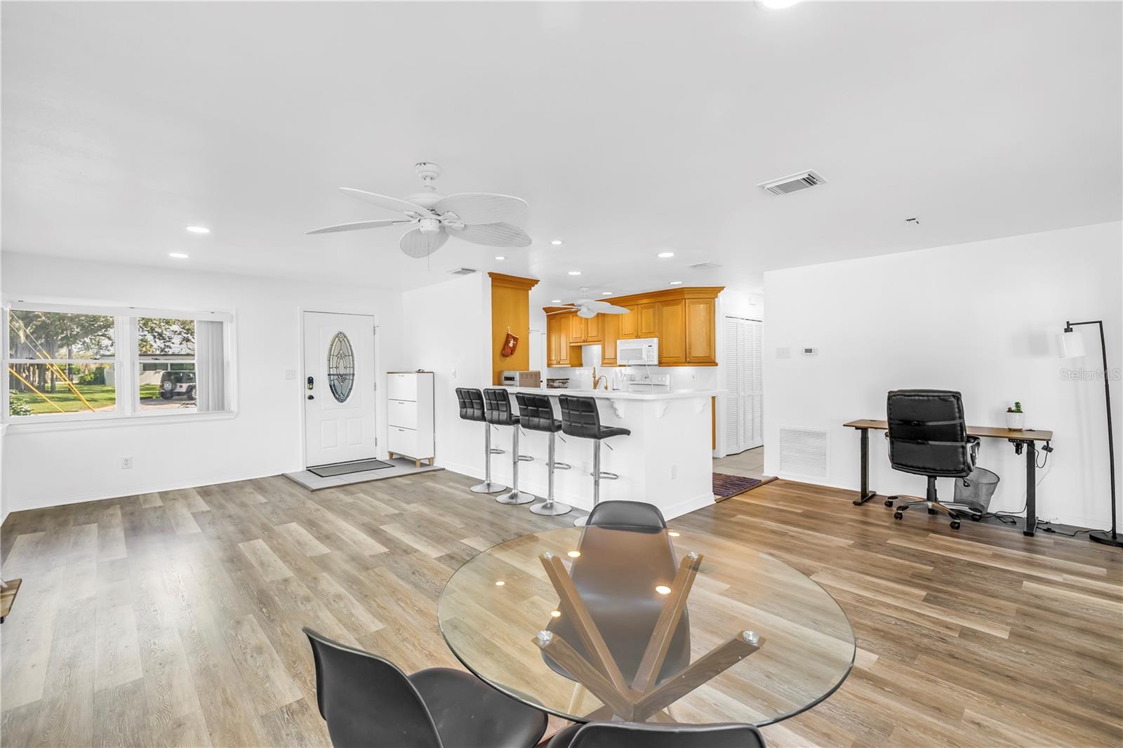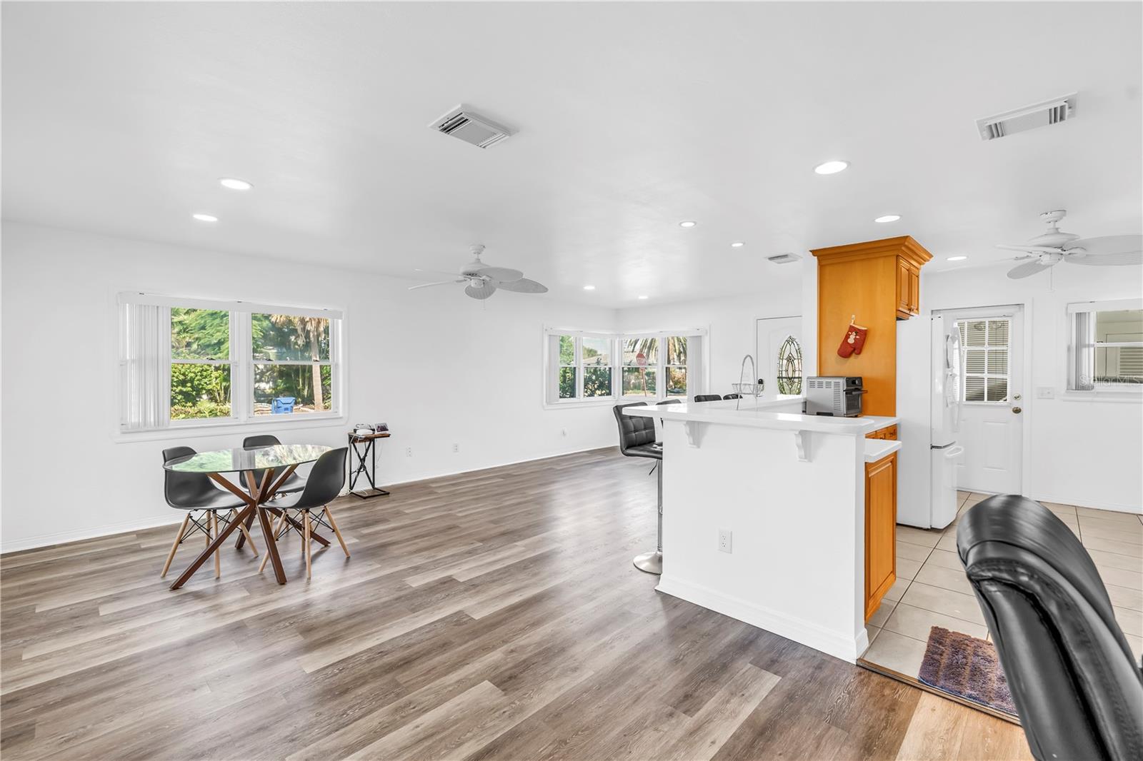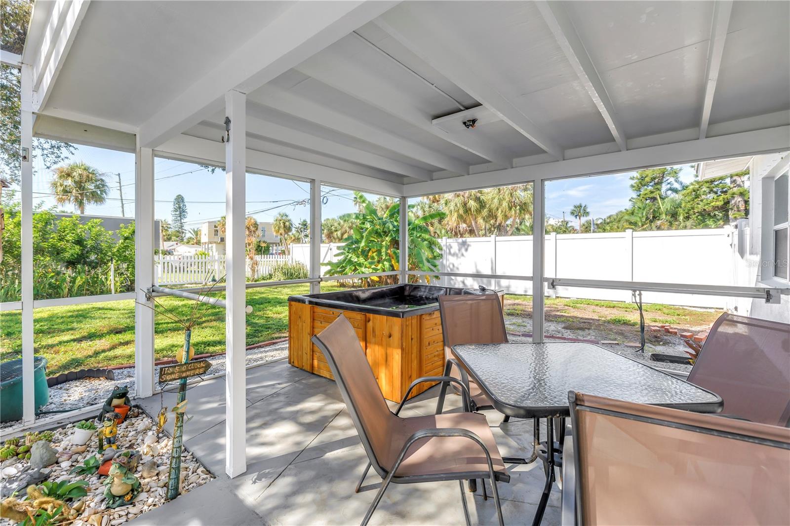 Linda casa remodelada em Belle Vista, a poucos passos de St. Pete Beach Viva o estilo de vida da praia nesta casa lindamente atualizada de 3 quartos e 2 banheiros, idealmente localizada no tranquilo bairro de Belle Vista. Situada em um amplo terreno de esquina, a casa recebe você com uma entrada circular e um charmoso meio-fio. Estacione sob a garagem coberta e entre em um espaço iluminado e de conceito aberto, com luxuoso piso de pranchas de vinil e luz natural abundante. A cozinha é perfeita para entretenimento, com uma península que oferece assentos de bar, amplo balcão e armazenamento generoso. Um corredor próximo leva a um conveniente armário de lavanderia e a um banheiro de hóspedes modernizado. Todos os três quartos, incluindo uma suíte primária privativa, incluem armários embutidos. Abra as portas de vidro deslizantes para uma varanda com área de estar coberta e uma banheira de hidromassagem mais recente (instalada em 2019), todas com vista para o oásis no quintal com uma cerca totalmente nova. Aproveite o quintal paisagístico com várias árvores frutíferas, incluindo bananeiras no quintal, pintura externa fresca e muito espaço para relaxar ou se divertir. Os destaques adicionais incluem um grande galpão de armazenamento, um armário na garagem para armazenamento extra, um gerador para toda a casa (2020), sistema HVAC mais recente (2018), janelas de impacto, um filtro de água de osmose de 7 estágios e um aquecedor de água sem tanque para eficiência energética e tranquilidade.