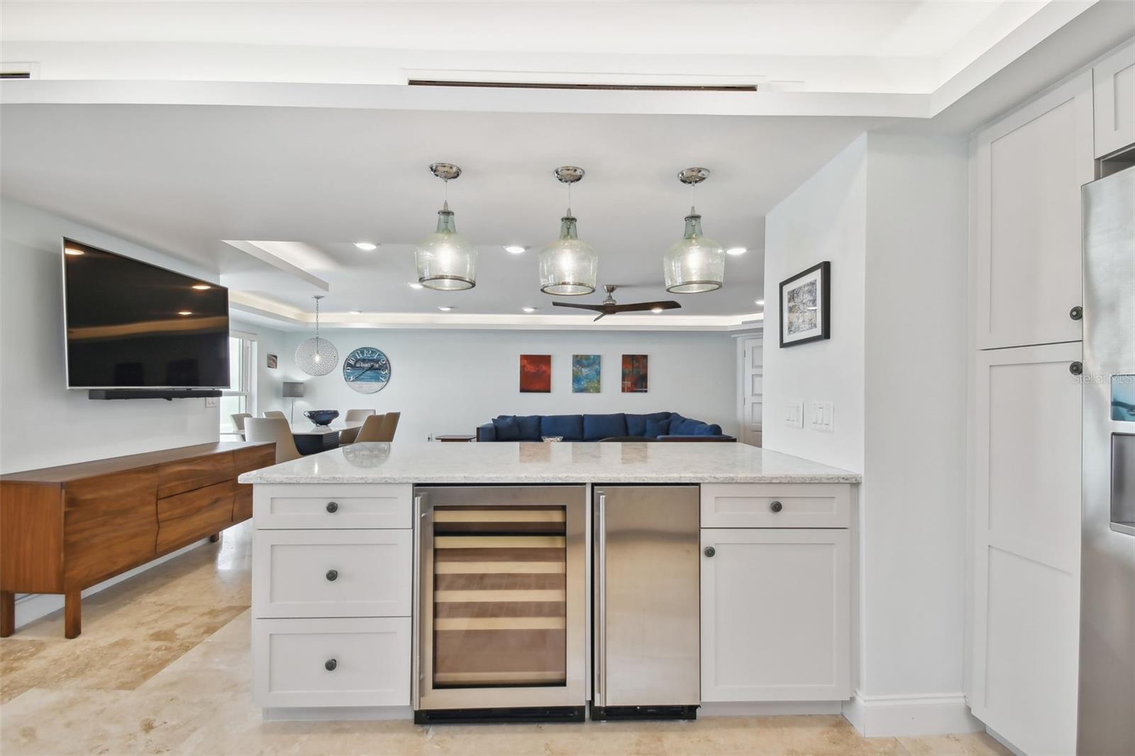 Com vistas de 270 graus do Golfo do México e da Baía de Boca Ciega, este condomínio no sétimo andar é o sonho de qualquer amante da praia! Cada detalhe da remodelação de 2017 foi curado profissionalmente e transformou completamente a unidade em uma planta aberta com acabamentos e eletrodomésticos de última geração. O redesenho deste espaço luxuoso adicionou tetos trey com iluminação embutida regulável, piso de travertino por toda parte, paredes com detalhes em shiplap, pia de casa de fazenda, churrasqueira embutida na cozinha, refrigerador de vinho, persianas automáticas Hunter Douglas, um termostato inteligente para o novo aparelho de ar condicionado, janelas contra impacto de furacão com venezianas retráteis externas, closet no quarto principal da Califórnia e muito mais. O complexo oferece uma garagem individual privativa e um armário de armazenamento para esta unidade, além das espetaculares comodidades à beira-mar, que incluem piscina de cloro, pátio à sombra de palmeiras, churrasqueira ao ar livre, quadras de shuffleboard, duas salas de recreação, mesa de sinuca e ducha externa para os moradores que retornam da praia. Este edifício passou pela inspeção histórica e é a casa de férias ideal para qualquer pessoa pronta para se mudar, descontrair e relaxar.