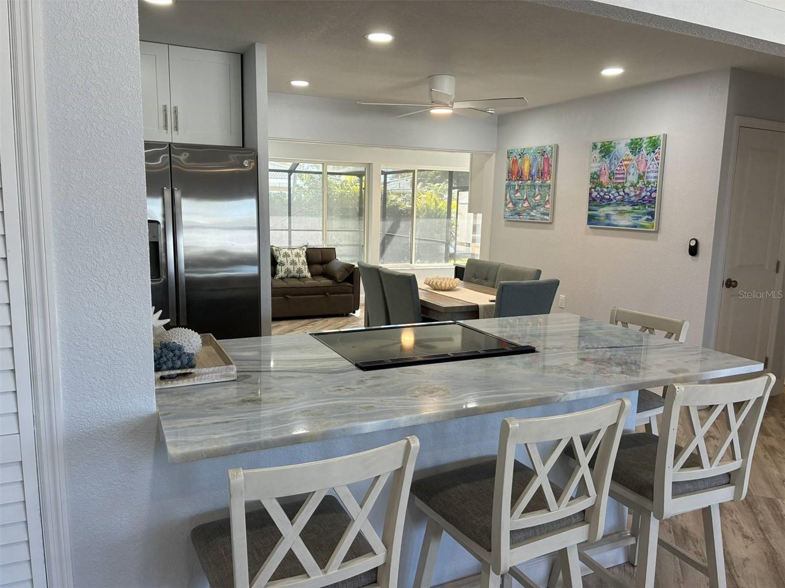 **Paraíso para velejadores e amantes da praia! Armazenamento ideal para barcos em propriedade com rampa pública a apenas 2 quarteirões de distância!** Casa de praia totalmente mobiliada e reformada com comodidades incríveis a poucos minutos da areia. Há uma enorme varanda frontal fechada e coberta, quintal com paisagismo tropical completo com piscina aquecida e área de entretenimento. No interior, há uma área de estar ampla e uma cozinha em conceito aberto, completa com ilha grande. A cozinha possui armários contemporâneos de madeira maciça e bancadas exóticas de ônix do Himalaia, complementadas por eletrodomésticos de aço inoxidável. Tudo dá para as enormes janelas de vidro e para o pátio completo com piscina aquecida. Depois de passar pela área de jantar, há uma área de escritório aberta bônus, com armários grandes e mesa embutida. Os dois grandes quartos são complementados por 2 banheiros separados, completamente atualizados com azulejos de mármore requintados e penteadeiras de madeira maciça. Além disso, há uma sala de bônus grande o suficiente para um terceiro quarto, escritório ou sala de jogos. Há também um aquecedor de água sem tanque, lavanderia completa com eletrodomésticos empilháveis e amaciante de água. Os painéis solares nos telhados mantêm a conta de luz abaixo de US$ 200, em média, no verão, e praticamente gratuita no inverno. Há também espaço de garagem para armazenamento, juntamente com dois novos galpões ao ar livre construídos com piso projetado, proporcionando mais de 300 pés quadrados de armazenamento total. Além disso, uma segunda unidade foi instalada junto com uma cerca de privacidade com portões de 12 pés para permitir o maior armazenamento de barco, trailer ou trailer na lateral da casa. Mesmo com tudo isso, ainda há muito quintal com grama complementada por uma área para fogueira na concha. O paisagismo projetado profissionalmente é composto por palmeiras circundando todo o quintal e também a frente com sistema de irrigação próprio. O seguro contra inundações presumível atual custa cerca de US$ 3.200 anualmente e os proprietários de casas custam cerca de US$ 3.500 anuais. Aproveite o seu passeio e obrigado por olhar!