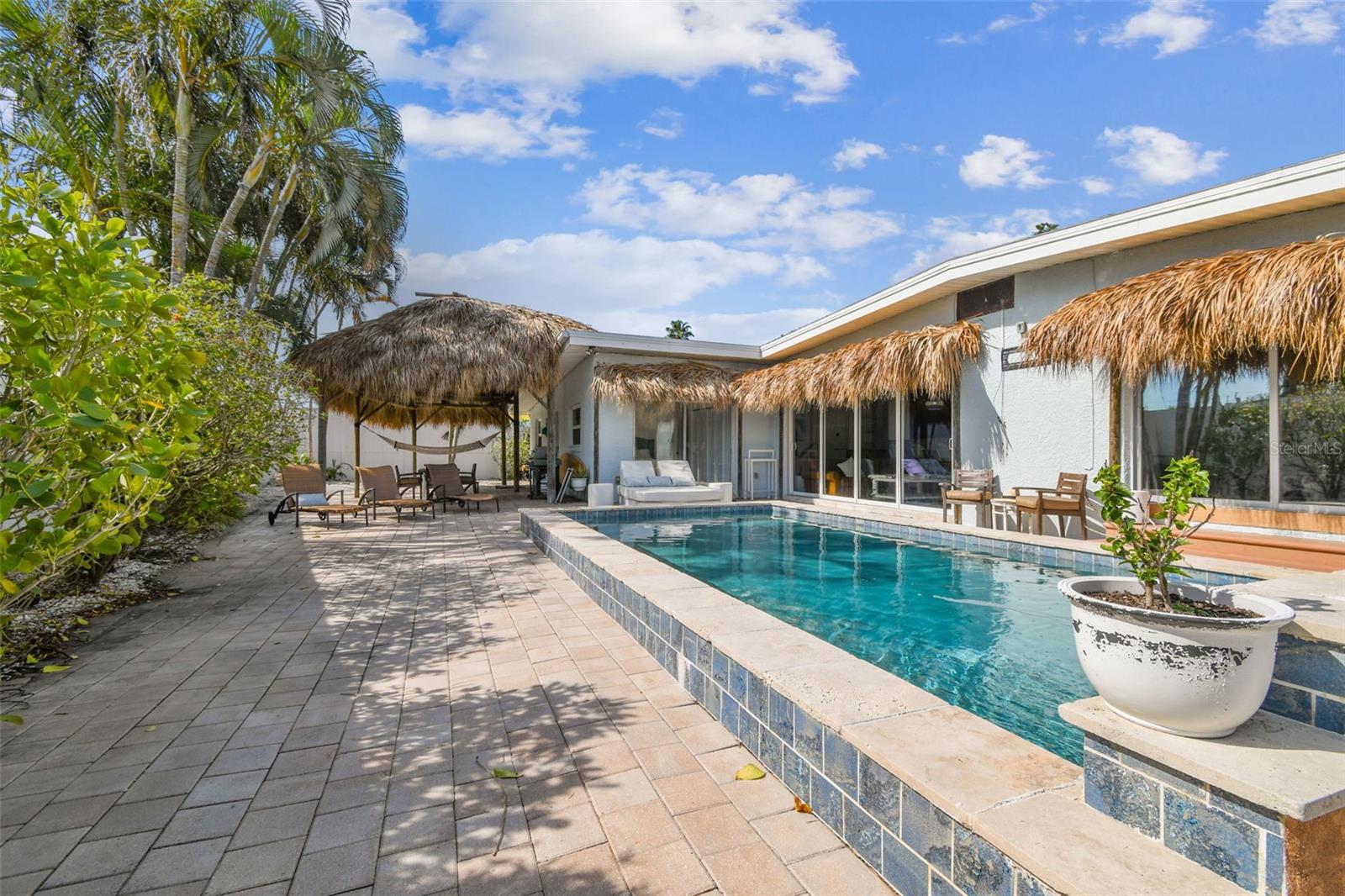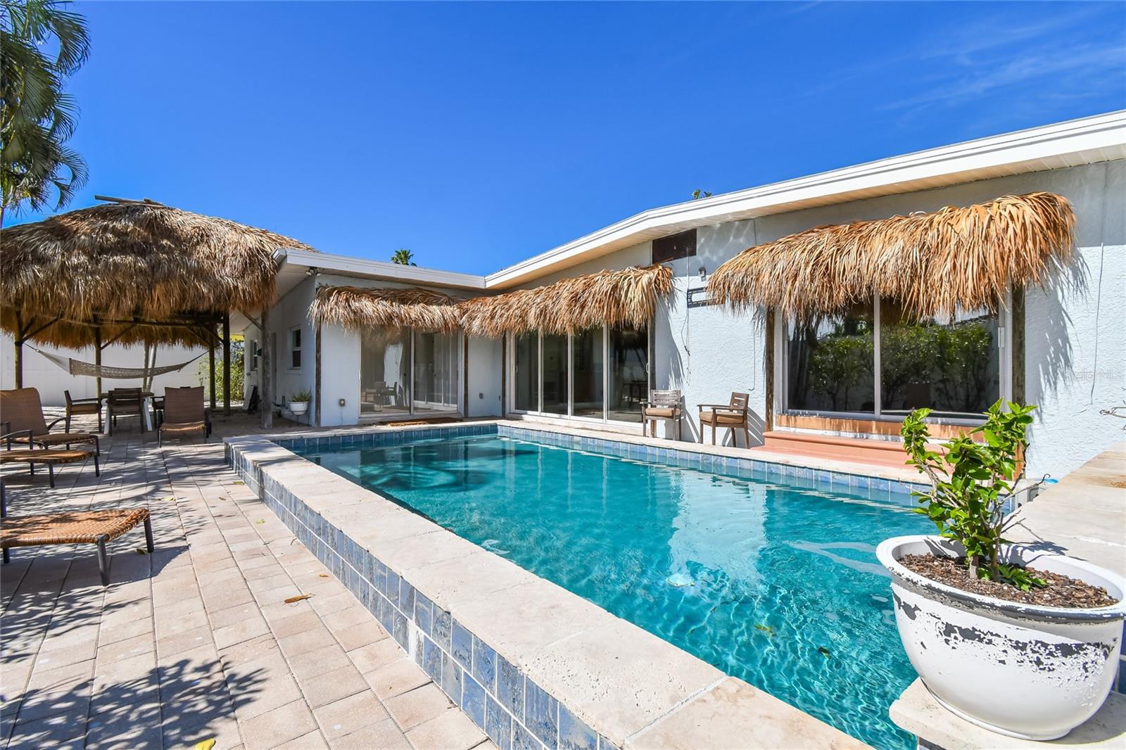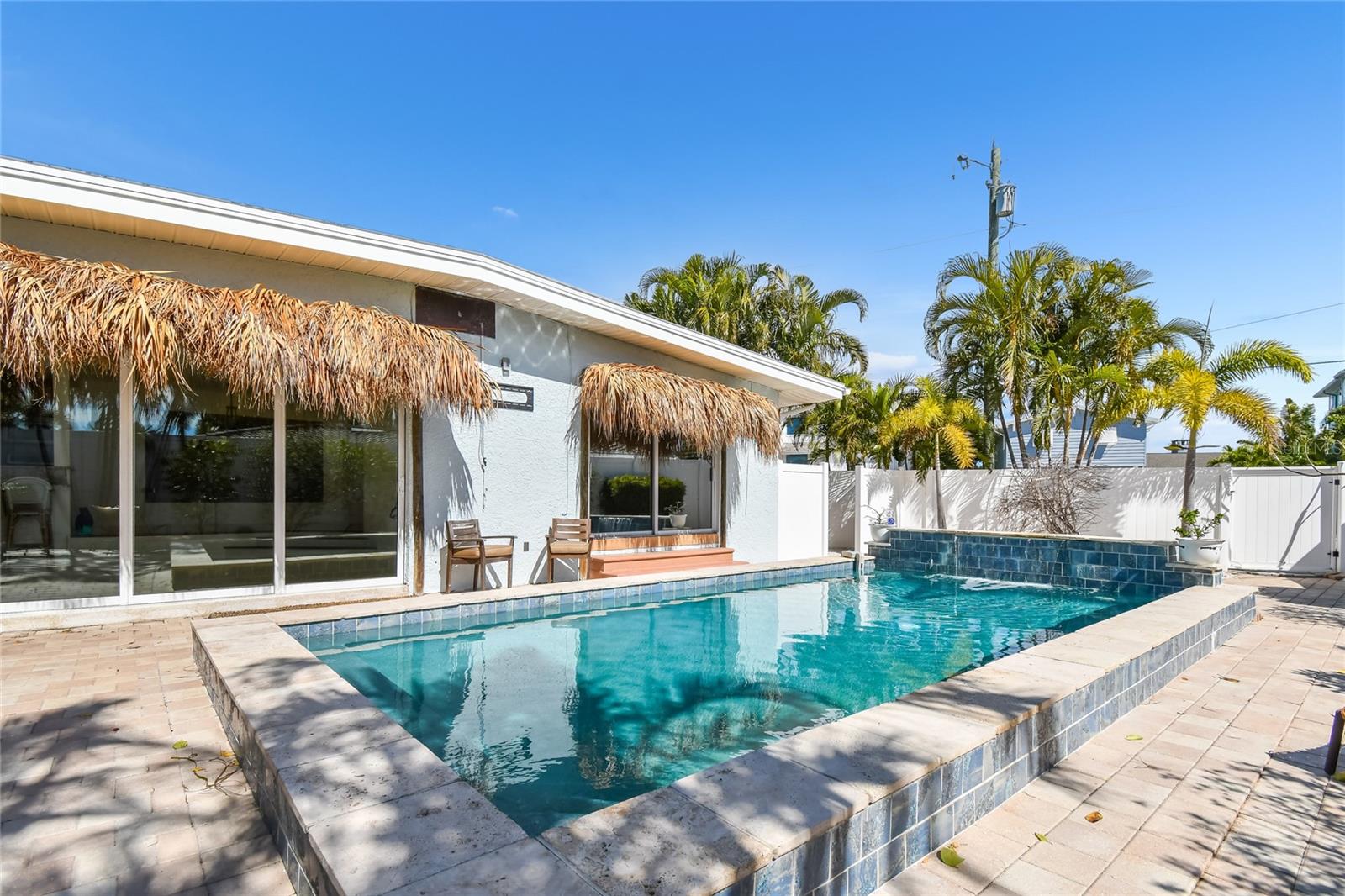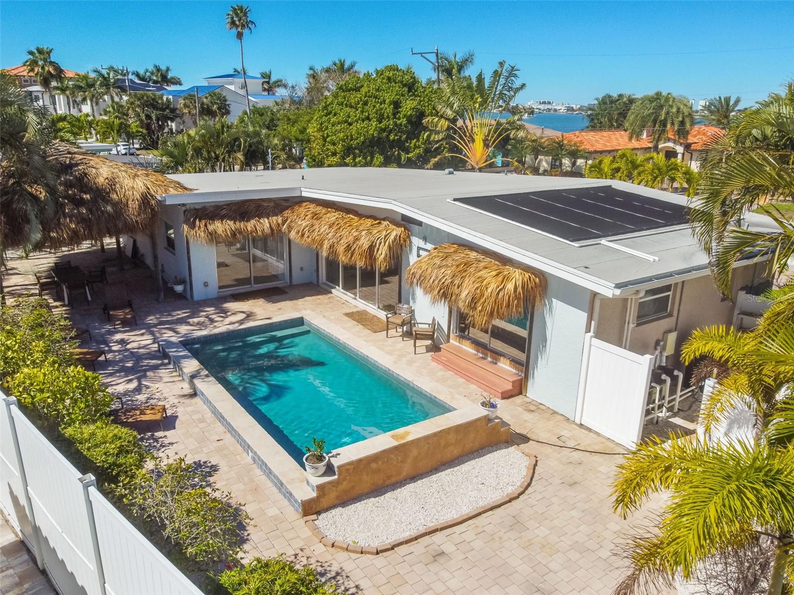 Bem-vindo a esta casa única localizada na Ilha Boca Ciega, no centro de St Pete Beach, a capital do pôr do sol da Flórida. Esta incrível casa é perfeita para entretenimento e vida ao ar livre. Caminhe até a praia ou dirija até vários pontos de acesso à praia e 71 blocos de areia no Golfo do México. Nenhum centímetro é desperdiçado nesta confortável casa de 4 camas, 2 banheiros, plano dividido, varanda frontal elevada, quarto principal e cozinha. Você também provavelmente passará a maior parte do tempo na grande sala, que permite trazer o ar livre para dentro com enorme vidro solar Low E, portas deslizantes para o oásis pavimentado do quintal com uma piscina semelhante a um spa. O interior é luminoso e abre-se para o sul e para a sua ilha tropical paradisíaca. St Pete Beach oferece passeios de praia Freebee e os residentes não precisam pagar pelo parquímetro da praia. A cabana Tiki gigante e alta no telhado traseiro com 5 portas para seu quintal privado 3 são de vidro deslizante, todas levando às clássicas áreas de estar ao ar livre da casa, mesmo em um dia chuvoso ou quente de verão, você pode sentar do lado de fora e desfrutar da brisa do golfo. Acorde com os pássaros da ilha e o som da água corrente da cachoeira da sua piscina. Este quintal privado pavimentado está preparado para uma TV externa que pode ser vista da piscina ou talvez de um sofá-cama, e alto-falantes de som surround conectados a um sistema Savant para noites de cinema ou apenas para ouvir ótimas músicas. O 4º quarto inclui uma porta traseira de entrada pelo portão oeste e gramado, sua porta canina é boa para tamanho pequeno ou médio e também pode ser facilmente removida. Esta é uma grama perfeitamente cercada para seu animal de estimação ou criança brincar longe da piscina. O segundo banheiro, que tem uma banheira de imersão tipo spa atualizada e hardware de última geração, leva à enorme área de brisa ao ar livre Tiki Hut - BBQ. Ao norte da grama fica o portão da conhecida árvore, com as mangas mais saborosas! O portão da garagem armazena algumas utilidades e muita arrumação (actualmente 161 m2). NÃO Garagem, mas sim o 4º quarto. Sala de Ginásio / Lavandaria que pode ser reaberta para garagem individual e ainda tem arrecadação. Sua suíte principal fica na extremidade leste elevada da casa, com piso de travertino voltado para a piscina e sons suaves de respingos de água, tudo criando uma atmosfera de resort. Todos os outros pisos são de epóxi madrepérola com acabamento liso fosco inspirado em Tulum e Santorini, e uma aparência de mármore perfeita, sem argamassa para limpar! Armários planos personalizados, venezianas e iluminação balinesa tecida à mão. A menos de dois quilômetros a pé da praia “areia nos dedos dos pés”. ainda mais perto do centro comercial Público. St Pete Beach City foi nomeada a Capital do Pôr do Sol e tem impostos baixos e passeios gratuitos em carrinhos de golfe. Ligue hoje para uma visita, você se sentirá a mundos de distância nesta ilha natural com sua pitoresca ponte de acesso a cerca de 100 casas com 1 tranquilo Waterfront Park. St Pete Beach tem muito o que fazer além de 71 quarteirões de praia de areia fofa para se divertir e certamente muitos ótimos restaurantes e bares de praia! Os residentes do SPTB têm parquímetro gratuito, 2 veículos registrados por domicílio, muito acesso à praia, caminhada ou carrinho de golfe, areia, ao Drunken Clam, Publix, Starbucks ou qualquer um de nossos muitos locais à beira-mar. Apenas 25 minutos virtuais sem escalas do aeroporto até St Pete Beach Ligue para ver hoje mesmo!