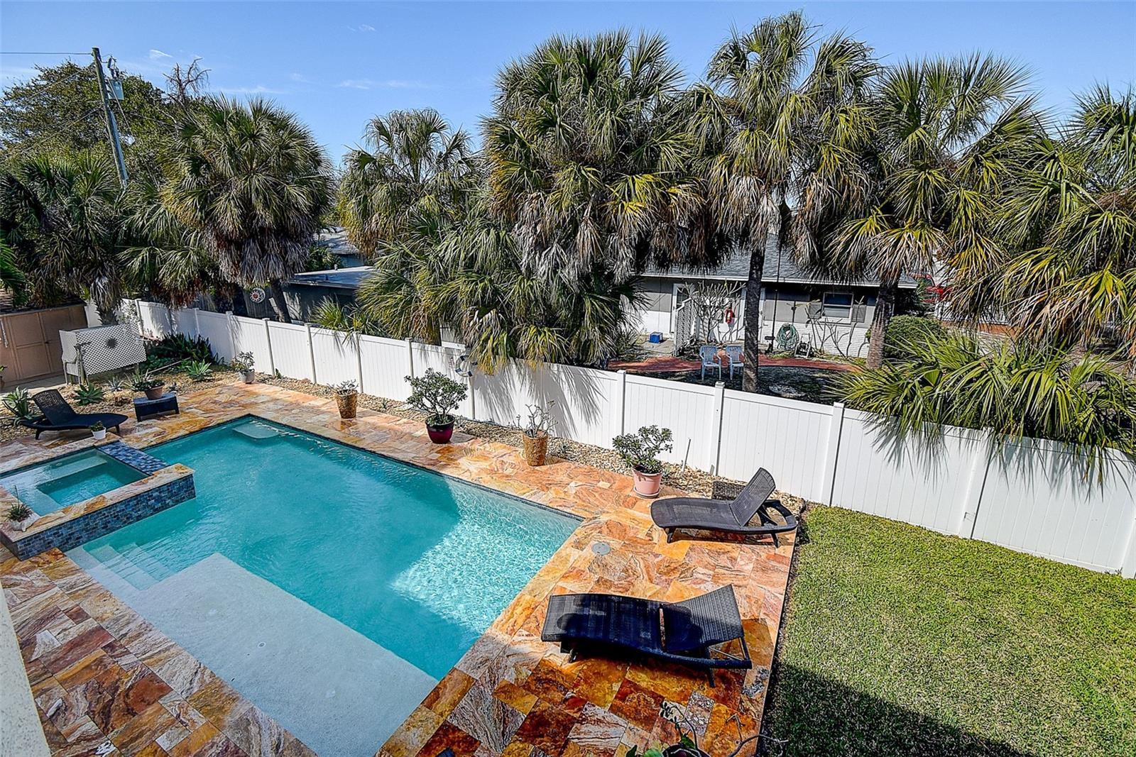 BELEZA DO PASSE CEGO! Não perca esta casa incrível que pode funcionar como uma casa unifamiliar de 3 quartos e 3 banheiros com uma sogra de 2 quartos e 2 banheiros OU um verdadeiro duplex! Esta casa incrível apresenta muitas atualizações, incluindo uma cozinha de design em um lado com armários shaker brancos e iluminação embutida, respingos de azulejos de metrô, bancadas de granito e eletrodomésticos de aço inoxidável! Você vai adorar a ilha construída sob medida com fogão e muito espaço de armazenamento, piso laminado de tábuas por toda parte e ainda tem um lindo aquário de água salgada que você pode desfrutar tanto na sala quanto no quarto! Suba para o 3º nível, onde você encontrará mais 2 quartos e banheiros! O banheiro principal ainda possui um chuveiro vertical E uma banheira de hidromassagem para relaxar! Há muitos armários por toda parte e lavanderia interna para sua conveniência! O outro lado está atualmente conectado com uma porta aberta que poderia facilmente ser fechada para transformá-lo em um duplex gerador de renda! Ambos os lados possuem grandes espaços de garagem e varandas com vista para a piscina AQUECIDA personalizada, pavimentos de travertino dourado dispostos em padrão francês e uma banheira de hidromassagem para relaxar após um árduo dia de trabalho! Esta linda casa foi recentemente atualizada com um novo telhado e aparelhos de ar condicionado! Ele ainda possui um gerador Generac para garantir que você nunca perca energia! Agende hoje mesmo sua exibição privada porque essa propriedade de unicórnio não vai durar muito!!