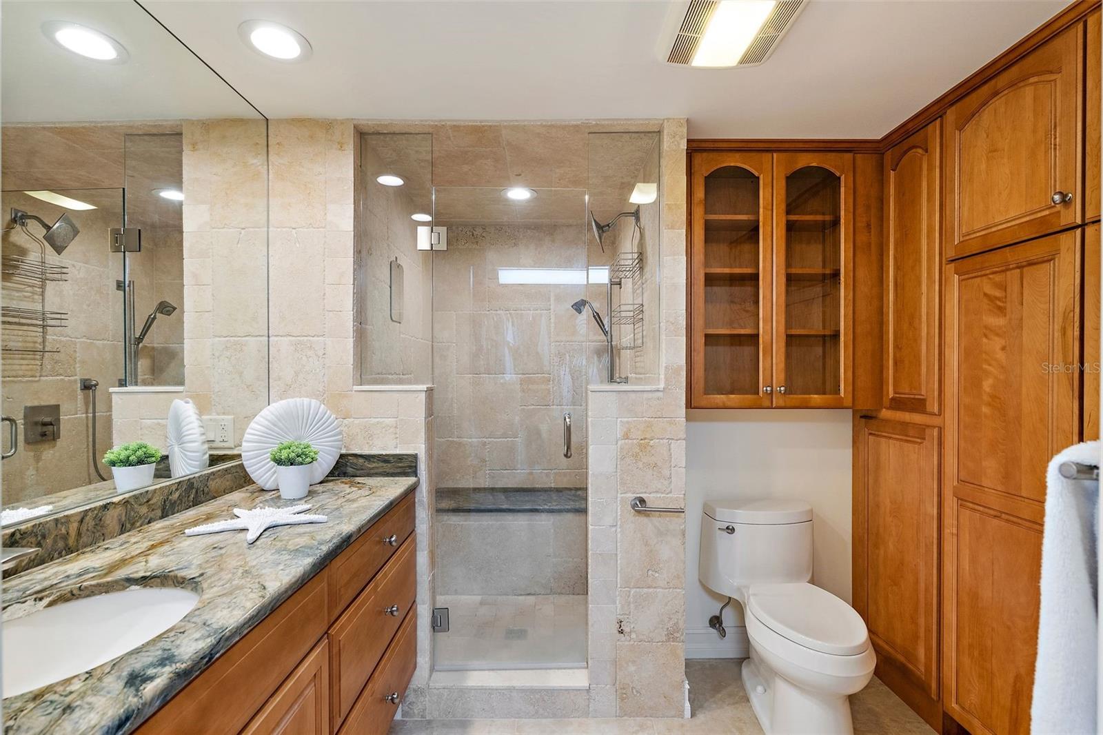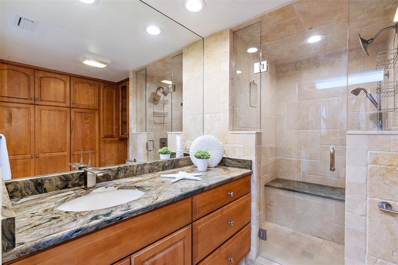 ATENÇÃO COMPRADORES: O vendedor está disposto a considerar toda e qualquer solicitação incluída em uma oferta. Localizado no coração da ação em St. Pete Beach, classificado como número 1, você ficará emocionado com mais do que a localização deslumbrante assim que abrir a porta para esta casa de condomínio incomparável. São mais de 1700 acsf com 2 quartos + arrumos/escritório e 2,5 banheiros. Ele foi atualizado para padrões verdadeiramente meticulosos. Quão meticuloso? O Empreiteiro era filho do Proprietário! Concluída em janeiro de 2015, a reforma não foi apenas nas vigas. Eles removeram todas as vigas sem suporte para ganhar metragem quadrada adicional; mover paredes; e adicione ½ ”de isolamento acústico por toda parte. Um novo piso foi colocado sobre toda a unidade e um tapete sussurrante foi adicionado antes da instalação do lindo piso de cerâmica. Prepare-se para ser encapsulado em um silêncio feliz enquanto estiver dentro! Todas as novas canalizações e fiações elétricas foram instaladas, incluindo um novo quadro elétrico. Eles também fecharam a varanda na área da sala de jantar com janelas resistentes a impactos para adicionar 75 acsf adicionais, criando um enorme espaço aberto. O efeito geral é uma vista deslumbrante de 180 graus da praia, do Golfo do México e da Baía de Boca Ciega! Não há um, mas DOIS quartos com banheiro privativo e varandas com vista para a praia e a baía! Você e seus convidados vão adorar a privacidade de ter os dois quartos localizados em extremos opostos do condomínio. A Suíte de Hóspedes ainda tem sua própria entrada externa! Os armários e bancadas, incluindo armários de design embutidos, são todos combinando e de madeira maciça. Juntos eles criam um sistema organizacional muito estiloso que você vai ADORAR! Até o perfil do teto se destaca com degraus suaves para criar três camadas e fornecer espaço para dutos, iluminação e alto-falantes de som surround. E tudo o que você precisa fazer para deixar sua casa de praia segura é fechar as duas persianas elétricas! Quão fácil é isso? Com o apertar de dois botões, sua nova casa de praia fica fechada e segura! Você nem precisa trazer os móveis da sua varanda! Aqui está outra surpresa agradável: o lugar de estacionamento não poderia estar mais convenientemente localizado! A própria Seamark passou por um extenso projeto de pintura e impermeabilização que custou US$ 1,2 milhão e garantia de 15 anos. O HOA também concluiu recentemente a reforma da sala e cozinha do clube ao lado da piscina e de uma academia bem equipada com equipamentos de ginástica atualizados. Claro, o destaque é o amplo deck da piscina à beira-mar com sua grande piscina aquecida, que tem um formato muito icônico, tornando-a facilmente identificável em todas as fotografias aéreas! O deck da piscina é um ótimo ponto de encontro, principalmente no final de cada dia. À medida que o sol se põe, os moradores daqui tocam uma campainha para comemorar o fim de mais um dia e a amizade da comunidade. A vida é boa. A vida na praia é ainda melhor! Característica do quarto: Armário de linho no banheiro (quarto principal).