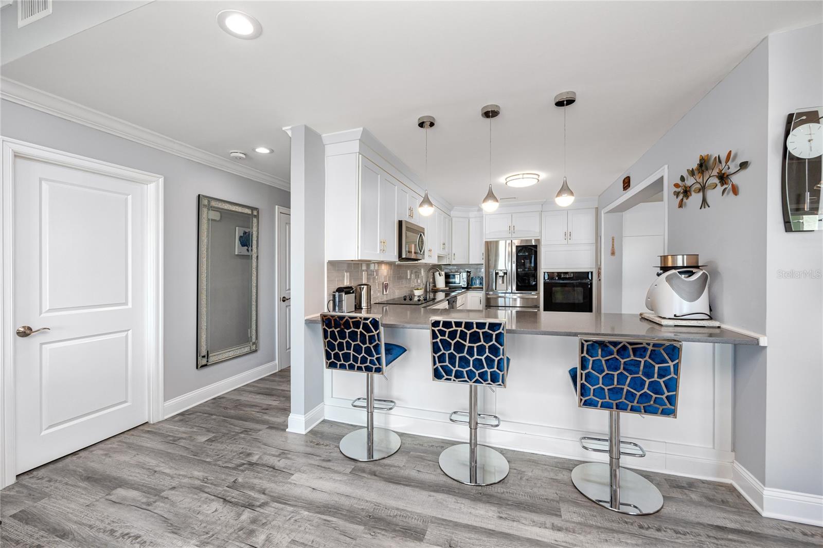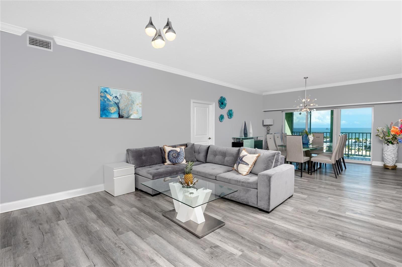 Cobertura raramente disponível com vista frontal para o Golfo, oferecendo isolamento tranquilo ao longo do Golfo do México, combinado com fácil acesso à praia, comodidades em estilo resort e entretenimento sem fim para desfrutar. Esta unidade de canto de 1.973 pés quadrados tem uma planta baixa aberta e limpa que inclui uma combinação luminosa de sala de estar/sala de jantar completa com tetos abobadados, piso de madeira projetado, controles deslizantes de impacto de furacão e uma varanda coberta de grandes dimensões. O layout espaçoso da cozinha é ideal para receber convidados e oferece muito espaço para sentar, balcão e armários, superfícies de pedra sólida, armários de madeira e eletrodomésticos SS. No final do corredor há uma luxuosa suíte Prime com área de estar, grande closet, pias duplas, banheira e box amplo separado. A suíte adicional está equipada com um grande closet, banheiro privativo, mesa de trabalho embutida e vistas deslumbrantes para o mar. Mais recursos de bônus incluem lavadora/secadora interna na unidade, garagem coberta atribuída e armário de armazenamento. Viva no luxo com uma ampla área de atividades ao ar livre com piscina aquecida em frente ao Golfo, sauna, píer de pesca privativo, Clubhouse, academia e muitos outros recursos divertidos para explorar. Esta localização fantástica coloca você a uma curta distância de restaurantes sofisticados, lojas locais, principais rodovias e um trajeto rápido até o Aeroporto Internacional de Tampa.