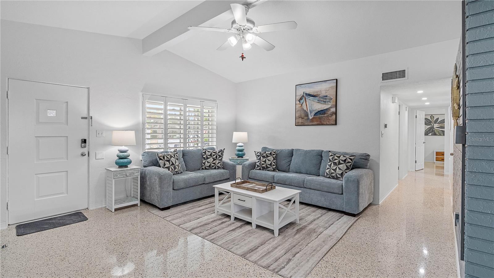LOCALIZAÇÃO, LOCALIZAÇÃO, LOCALIZAÇÃO! Viva a vida na praia! Você pode caminhar até as belas areias brancas de St Pete Beach em menos de 10 minutos. Esta linda casa em bloco pronta vem totalmente mobiliada e tem 3 quartos, 2 banheiros e uma espaçosa garagem para 2 carros. Os móveis têm menos de 2 anos. Os tectos altos e a ampla sala de estar tornam a sua casa convidativa para a sua família e amigos. Sua nova casa está localizada no pitoresco bairro de Belle Vista, em um gigantesco terreno de esquina. Belle Vista está em uma bela comunidade de alta altitude. Esta casa é a casa de praia por excelência, com piso de cerâmica brilhante por toda parte. A cozinha remodelada inclui armários brancos, backsplash de azulejos de vidro, balcões de concreto personalizados e eletrodomésticos de aço inoxidável. Há também uma sala de bônus de bom tamanho. O interior foi recentemente pintado e as portas interiores foram recentemente substituídas por portas de 6 painéis. Existem ventiladores de teto em todos os quartos. AC é novo em 2023, todas as janelas e controle deslizante foram substituídos em 2020 por janelas com classificação de impacto. O telhado foi substituído em 2019 e o novo aquecedor de água em 2018. Porta de garagem com classificação Hurrican em 2016. O painel elétrico e o encanamento também foram atualizados. Há um termostato Nest e esta casa também inclui um amaciante de água. Você pode entrar imediatamente e apenas trazer sua escova de dente. Abra a grande porta deslizante para acessar sua espaçosa varanda com tela. No exterior encontrará um chuveiro exterior privado com água corrente quente e fria. Existe um barracão de arrumos que também dispõe de água corrente quente e fria. O grande pátio lateral oferece amplo estacionamento adicional para um barco ou trailer. Situado em um grande terreno de esquina, você percebe imediatamente o belo jardim paisagístico. Existem muitas áreas gramadas para você aproveitar. O pátio possui um sistema de sprinklers que utiliza água recuperada. Seu oásis privado é totalmente cercado com vinil branco. Não perca esta casa para que você também possa começar a viver o estilo de vida da Flórida que todos amamos. Não vai durar muito!