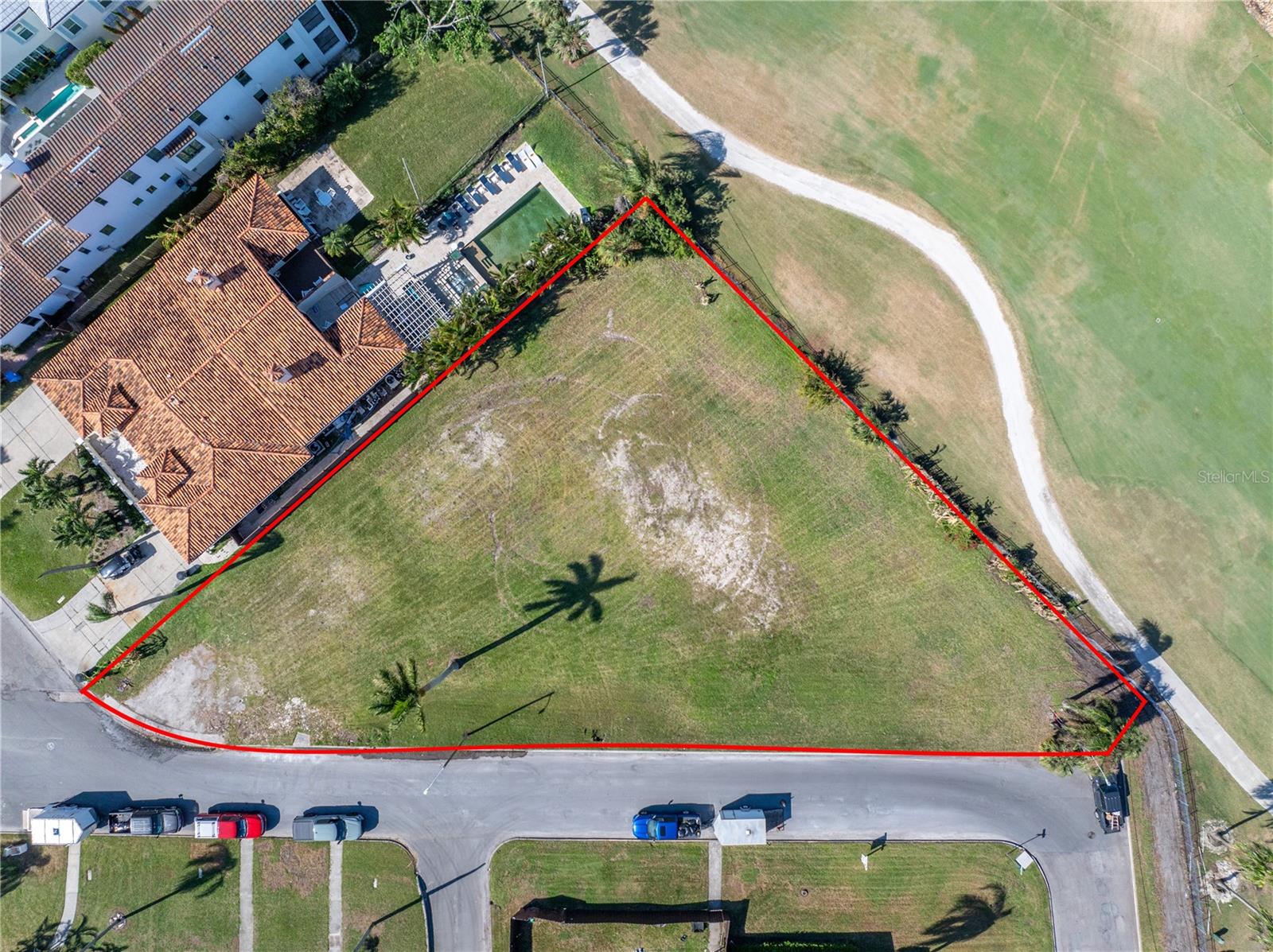 Edificável, limpo, lote de esquina, planície aluvial/terreno inferior, limites da cidade, no campo de golfe, pavimentado