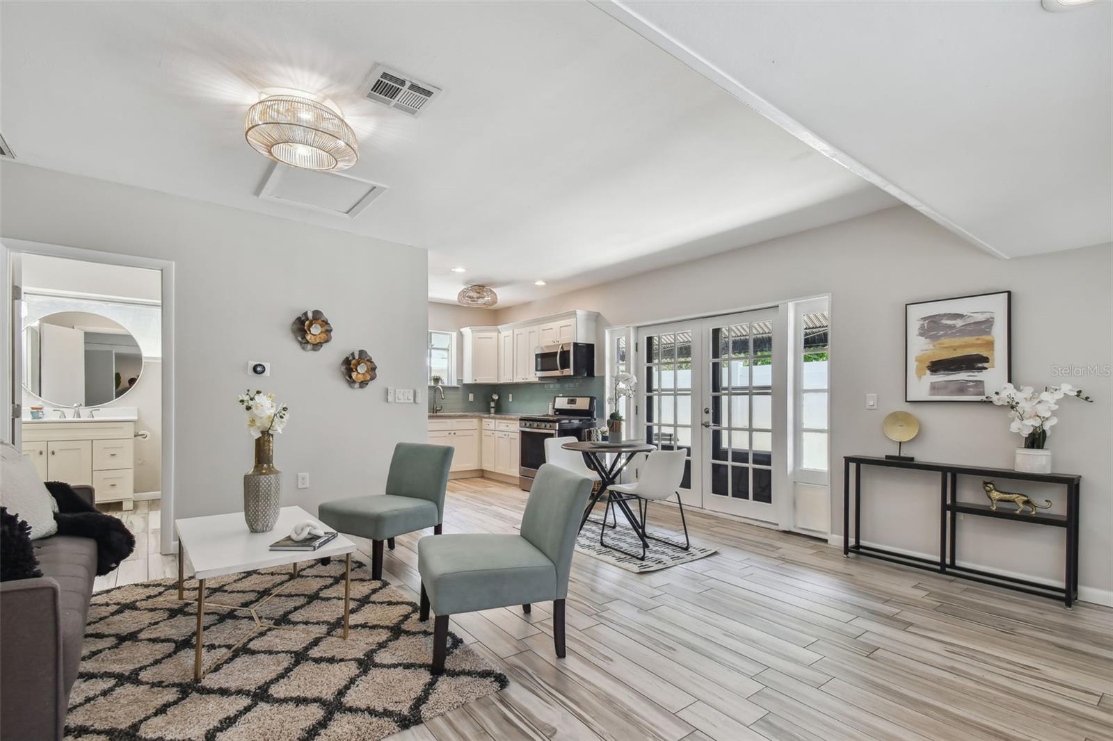 Notável propriedade única localizada no opulento e desejável lado nordeste de São Petersburgo. Localizado a uma curta caminhada da bela cafeteira Bayou, esta casa em um canto estelar do bairro de Snell Shores é o que você esperou! Multifamiliar, com 2 unidades em 1 lote excepcionalmente grande, esta casa tem muito potencial! Totalmente renovada e Turn Key, a casa principal é composta por dois quartos, dois banheiros e 1 garagem. Com espaços conceituais abertos e cheia de luz natural, a casa principal é impactante e um ótimo espaço para entreter e viver o estilo de vida da Flórida. A aparência de madeira de porcelana flutua em toda a casa. A cozinha está aberta e possui armários de madeira, utensílios de aço inoxidável, península de bar grande, balcões de pedra e uma janela de sacada estética com vista para a pia. Dois quartos estão escondidos na esquina da casa e atendidos por um banheiro com o combo de chuveiro/banheira. Uma garagem de 1 carro fora da área de jantar é um local perfeito para armazenamento ou estacionamento extra e apresenta o segundo banho completo na casa principal. A garagem pode ser facilmente incorporada para criar uma suíte master, tornando a casa principal um ideal de 3 -lábios | 2 banhos para casa. A saída da cozinha leva a uma espaçosa lanai totalmente rastreada. Uma cerca de vinil cria os limites de uma área lindamente com casca, que é um lugar perfeito para sediar festas, churrascos e fogueiras. A segunda unidade é um apartamento de 1 quarto. Totalmente enfeitado, este apartamento (ADU) tem todo o potencial de ser usado como suíte, escritório, mestre júnior ou aluguel de tempo integral para ajudar a compensar a hipoteca. Também com telhas de trava de madeira, é consistente com a casa principal. A cozinha é deslumbrante, com armários de madeira, balcões de pedra, eletrodomésticos, backsplash do metrô, janela de gás e sacada; É um lugar excelente para preparar refeições. As portas francesas da cozinha levam a uma área externa agradável e privada. Na parte de trás, existem canteiros de jardim elevados que atualmente estão produzindo verduras de jardim !! Um galpão na parte traseira também é transmitido para armazenamento adicional. Além disso, a nuance de ser um grande lote de canto permite potencial para um novo desenvolvimento. Rasgue as duas estruturas e construa uma grande casa com fachada impressionante e acesso lateral! O lado nordeste de St Pete é conhecido por sua localização ideal. Localizado perto de lojas e uma infinidade de supermercados (Whole Foods, Trader Joes, Rollin Oats, Fresh Market e 2 Publixes), Starbucks, Chik Fil A e DTSP, é um ótimo lugar para se viver. Uma curta viagem de carro leva ao Gandy ou Howard Franklin Bridge, dando fácil acesso a Tampa e Tia. Não perca essa chance de viver São Petersburgo. Agende sua exibição hoje!