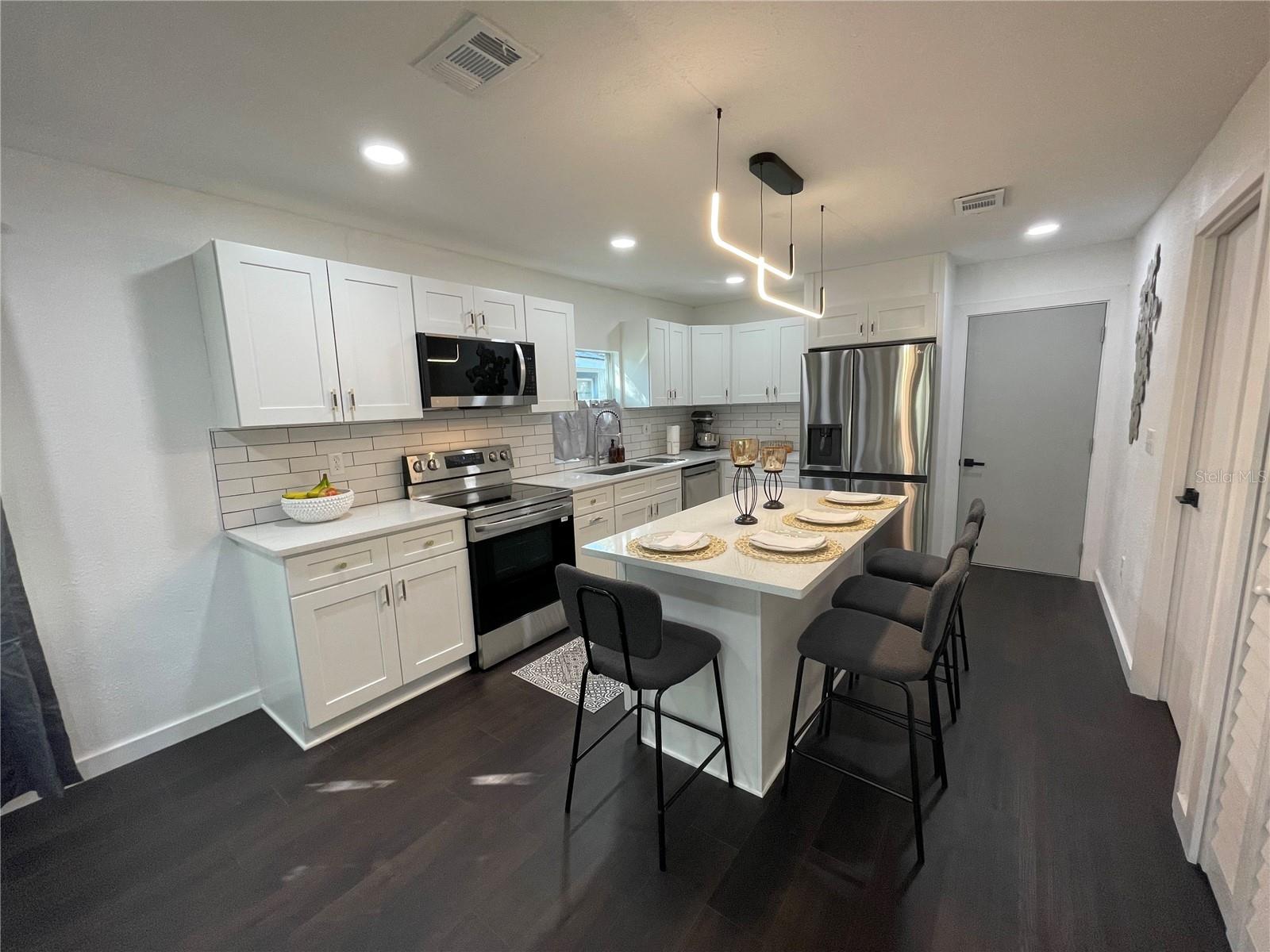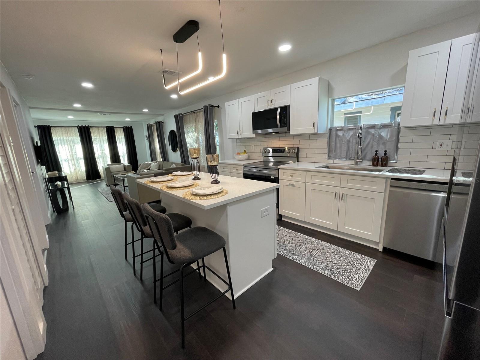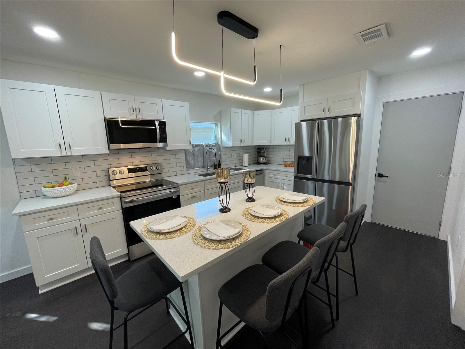 Duas unidades pelo preço de uma! Entre nesta deslumbrante casa moderna que está pronta para morar e é ideal para aluguel pronto para uso! Esta propriedade meticulosamente renovada está totalmente mobiliada e foi projetada para o máximo conforto, tornando-a ideal para quem deseja se instalar imediatamente ou gerar renda de aluguel sem esforço. Perfeita para um comprador experiente, esta propriedade permite que você more em uma unidade enquanto aluga a outra, ou compre como investimento para alugar as duas unidades simultaneamente! Mergulhe na cultura do Grande Distrito Central visitando boutiques, antiquários, galerias, restaurantes, cafeterias, museus e vida noturna! Depois de explorar a cidade, retire-se para o seu espaço tranquilo totalmente mobiliado, projetado para o máximo conforto e estilo. Casa completamente renovada que inclui móveis de luxo com comodidades totalmente abastecidas. Principais características: totalmente mobiliado, aquecedor de água sob demanda, zona sem inundação, câmeras de segurança, eletrodomésticos sob garantia, bancadas de granito, eletrodomésticos de cozinha em aço inoxidável, pisos duráveis LVP, casa elevada, livre de cupins, quintal sem complicações, recursos de casa inteligente e muito mais! Danos mínimos na cerca causados pelo furacão Milton, sem intrusão de água nem danos devido à casa elevada e localizada em uma zona sem inundação. Informações adicionais estão disponíveis mediante solicitação. O comprador deve verificar todas as informações antes da compra. Ao entrar, você é recebido por um espaço amplo e luminoso, onde a sala de estar, a sala de jantar e a cozinha estão integradas em um layout coeso e fluido. Grandes janelas revestem as paredes, convidando a luz natural a inundar o espaço, criando uma sensação luminosa e arejada que incentiva a interação e a conexão entre familiares ou convidados. Os quartos estão cuidadosamente organizados, com um banheiro bem equipado situado entre eles. Ambos os quartos têm vista para o pátio cercado privado e fechado. O banheiro possui uma banheira relaxante para imersão, uma penteadeira espaçosa para acomodar todos os seus itens essenciais, um banheiro moderno e eficiente, acessórios e acabamentos elegantes. O corredor dá ligação à lavandaria, quintal e ao terceiro quarto em suite. O corredor compartilhado funciona como uma ligação entre os dois ambientes, garantindo acesso conveniente à área de serviço para os moradores de ambas as unidades. A suíte dos fundos oferece sua própria entrada privada a partir do beco e estacionamento dentro do quintal cercado, além de acesso exclusivo ao corredor compartilhado através de uma entrada separada. O quintal inclui uma cerca de 6 pés para privacidade para relaxar e descontrair no pátio, com uma área de grama artificial dedicada, perfeita para animais de estimação. O paisagismo é intencionalmente projetado para baixa manutenção, permitindo que você se concentre em simplesmente aproveitar o ar livre sem trabalhar. Ambas as cercas incluem sistemas de trava/trava. Conforme mencionado anteriormente, é necessário um trabalho mínimo para a cerca traseira devido a danos nas árvores. Esta casa aguarda a sua chegada para morar e/ou alugar para gerar renda!