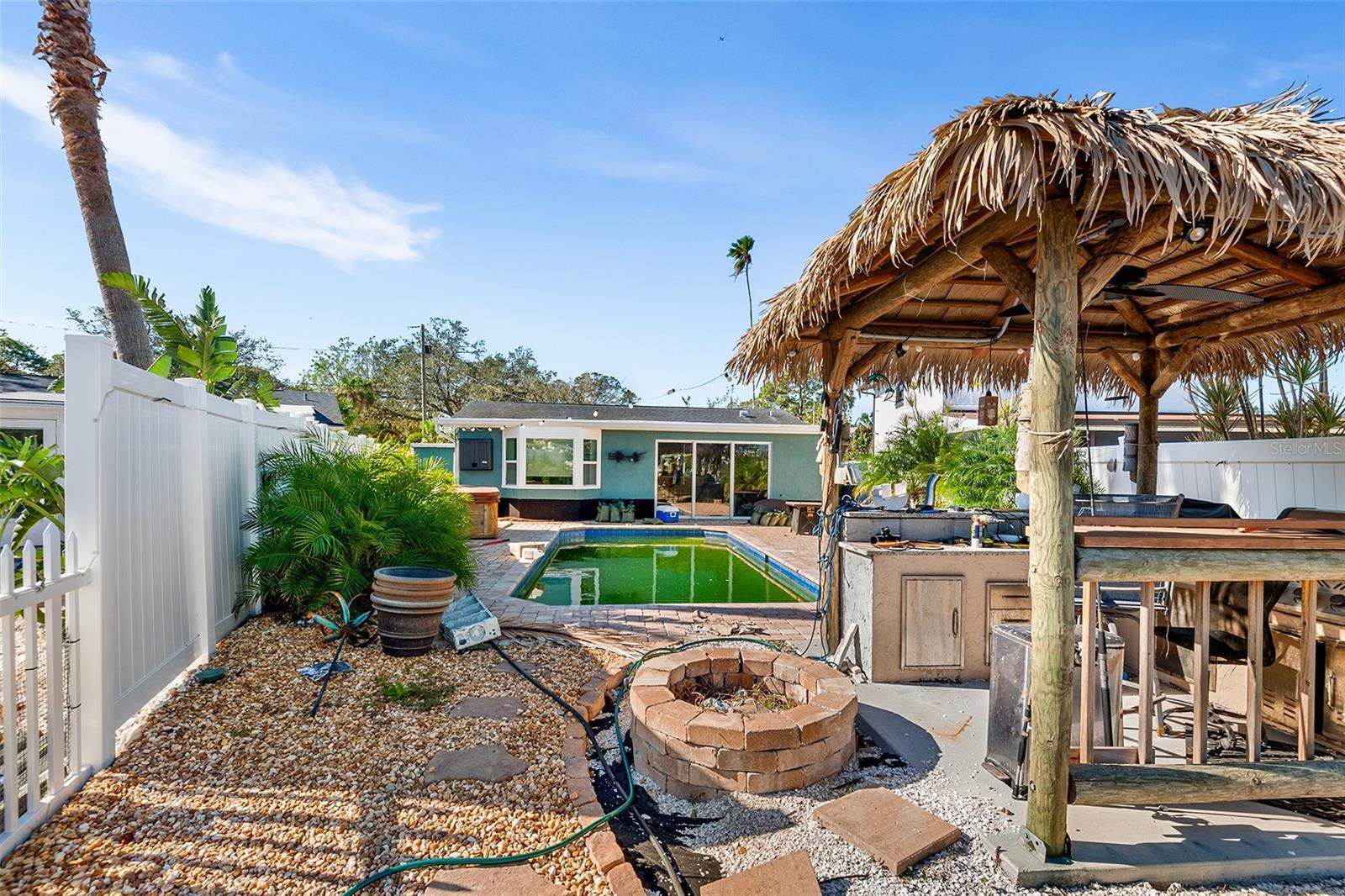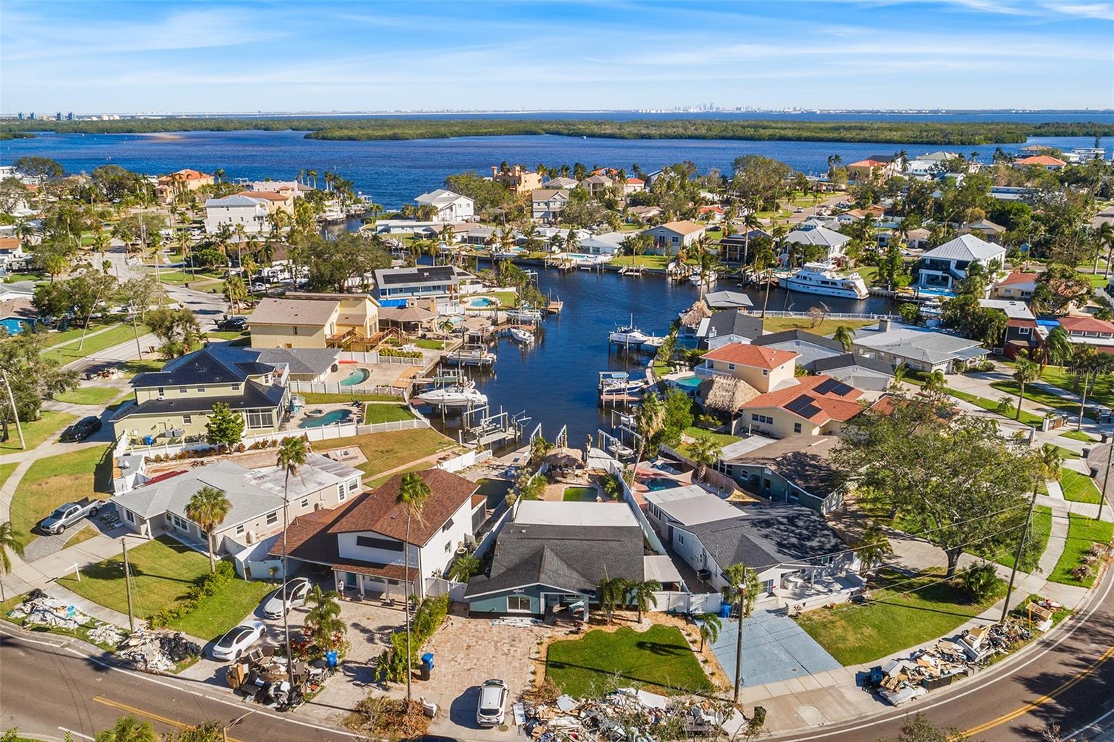 ESTA CASA FOI INUNDADA PELO FURACÃO RECENTE E ESTÁ PROCURANDO ALGUÉM PARA TRAZÊ-LA DE VOLTA À VIDA OU USAR A INCRÍVEL LOCALIZAÇÃO À BEIRA-MAR PARA CONSTRUIR UMA NOVA CASA DE SONHO. Esta casa está situada em um local muito procurado, com acesso direto (sem ponte) à baía aberta. Com um cais privado e um elevador para barcos de 9.000 libras, é um paraíso para os velejadores aguardando sua próxima aventura. Entre na casa atual e seja recebido pelo piso de cerâmica, levando a uma espaçosa cozinha de conceito aberto e área de estar projetada para entretenimento sem esforço. A cozinha não só oferece funcionalidade, mas também oferece vistas deslumbrantes sobre o mar, para que você nunca perca um momento com seus convidados ou com a paisagem deslumbrante. A luxuosa suíte master é um verdadeiro santuário, com grandes janelas salientes que emolduram vistas pitorescas do mar. Aproveite a conveniência de um banheiro privativo completo com recursos de spa e um amplo closet. Para o máximo em relaxamento e entretenimento, a casa inclui uma sala de cinema privativa, perfeita para noites aconchegantes. Do lado de fora, o quintal é nada menos que um oásis tropical. Relaxe na cintilante piscina subterrânea ou rejuvenesça no spa anexo, tudo isso cercado por uma exuberante paisagem tropical. Organize reuniões inesquecíveis no bar tiki ou simplesmente mergulhe no ambiente tranquilo do seu paraíso à beira-mar. Se você planeja trazer esta casa de volta à vida ou começar do zero, você não vai querer perder esta oportunidade de possuir um pedaço do paraíso à beira-mar com acesso rápido à baía aberta.