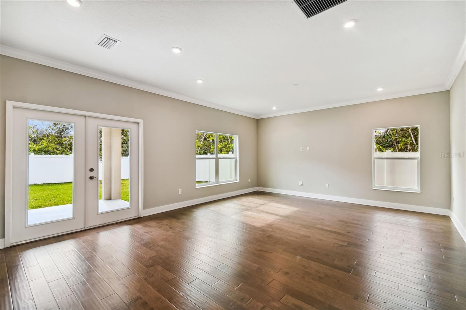 Persianas contra furacões, sistema de irrigação, iluminação, calhas de chuva, calçada