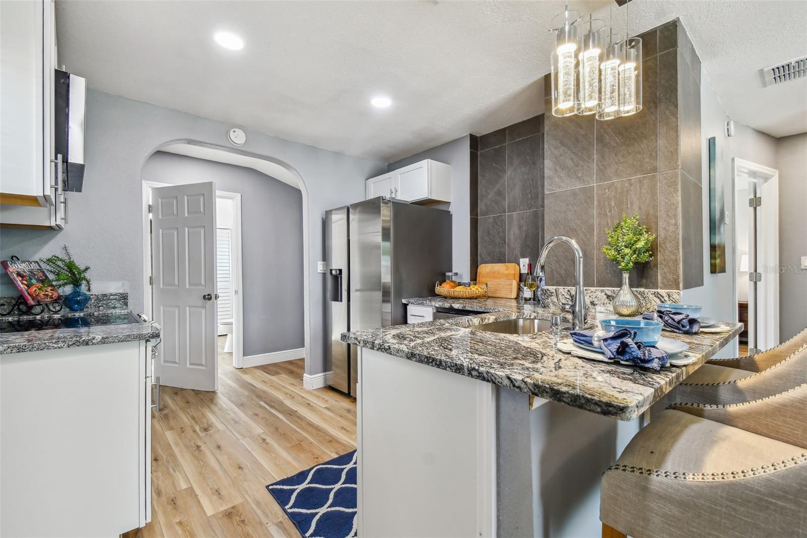 Bem -vindo a Pasadena Estates! Este é o lugar perfeito para chamar de lar ou pode fazer uma propriedade de aluguel fantástica! Apresentando uma planta baixa aconchegante com 988 pés quadrados de espaço, 2 quartos, 1 banheiro, ADU separado nas costas, lavanderia e enorme quintal com acesso ao beco traseiro. Chegue a um apelo impressionante do meio -fio com grama fresca e paisagem! Após a entrada, você é recebido por uma sala de família com toneladas de luz natural e um conceito aberto desejável! Cores de tinta em tendências neutras e pisos de vinil de luxo cobrem o interior com fãs e acessórios atualizados por toda parte. A nova cozinha bonita apresenta armários modernos, novos aparelhos de aço inoxidável inteligentes, bancadas em granito, backsplash de telha e bar de café da manhã! O banheiro tem tetos altos e apresenta uma pia elegante com um chuveiro de grandes dimensões! Os quartos são de grande tamanho, com muito espaço no armário. A ADU separada traseira é um espaço flexível perfeito para um ótimo escritório, outro espaço de estar e muito mais! Desfrute de verdadeira Flórida que vive com um enorme quintal que tem espaço suficiente para adicionar futuras opções de entretenimento! Este é um local perfeito para dar as boas -vindas ao clima mais quente com amigos e familiares! Outros recursos incluem um HVAC mais recente, teto mais recente, tinta fresca, pisos novos e muito mais! Pasadena Estates é uma comunidade pitoresca, sem HOA e um apelo encantador! Enquanto estiver localizado centralmente perto de compras, restaurantes, ótimas escolas, acesso fácil à rodovia e, claro, as praias vencedoras do AWRD! Faça sua consulta hoje!