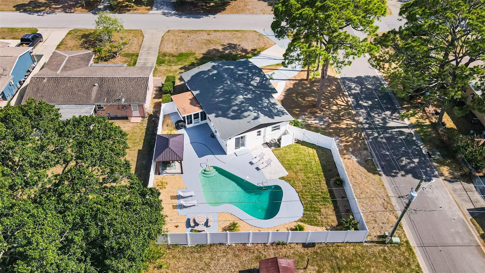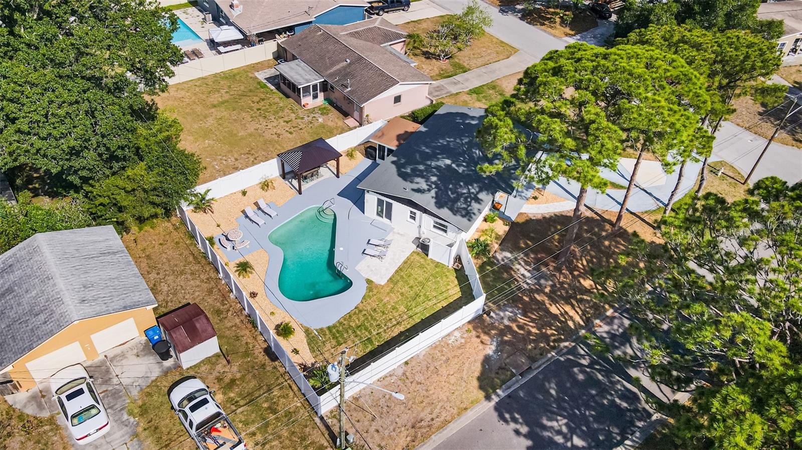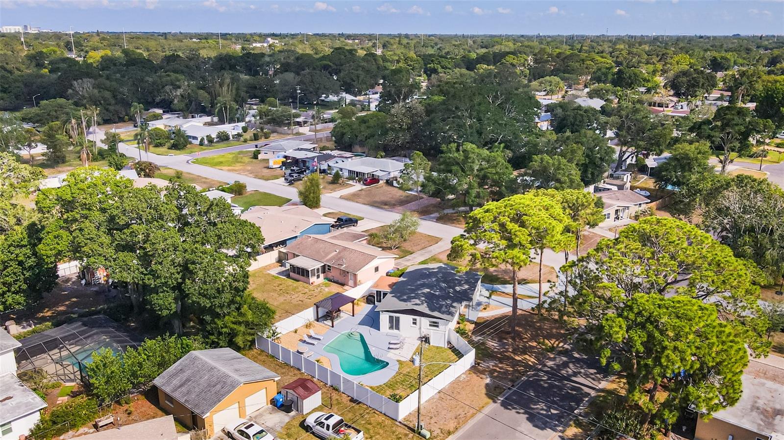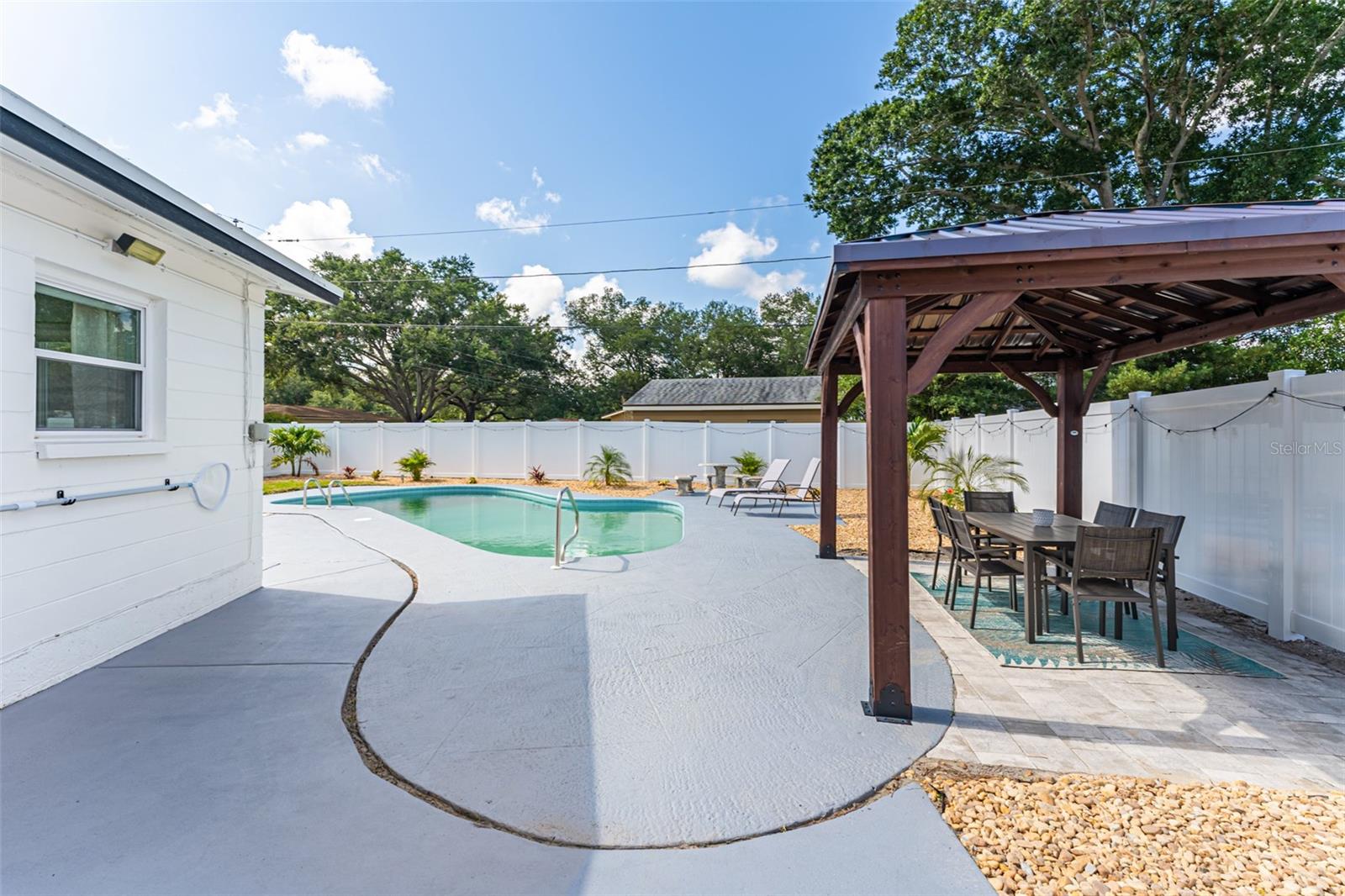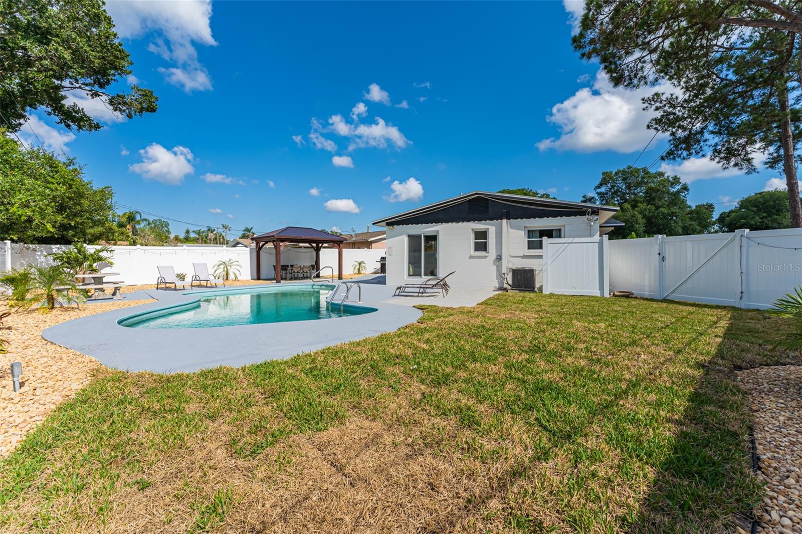 Linda casa de três quartos e dois banheiros com piscina no coração de Saint Pete. Recentemente pintado e atualizado. Pavimento vinílico de luxo na sala de jantar, sala de estar, cozinha e hall. Tapete novo em ambos os quartos. Novo telhado em maio de 2021. HVAC 2020. A cozinha bem iluminada tem um novo fogão e exaustor e bancadas em corian. Grande área de jantar. O quarto principal tem banheiro privativo com box amplo. O segundo quarto é amplo, com escritório e área de estar. A garagem foi lindamente convertida para um terceiro quarto ou escritório. O banheiro do corredor tem uma combinação de banheira/chuveiro. Nova lavadora e secadora empilhável. As janelas atualizadas têm inclinação fácil e limpa. Um oásis de quintal com piscina térrea, pérgula, múltiplas áreas de entretenimento e totalmente vedado incluindo armazém. SEM HOA, SEM INUNDAÇÃO! Ligue para sua exibição privada hoje!