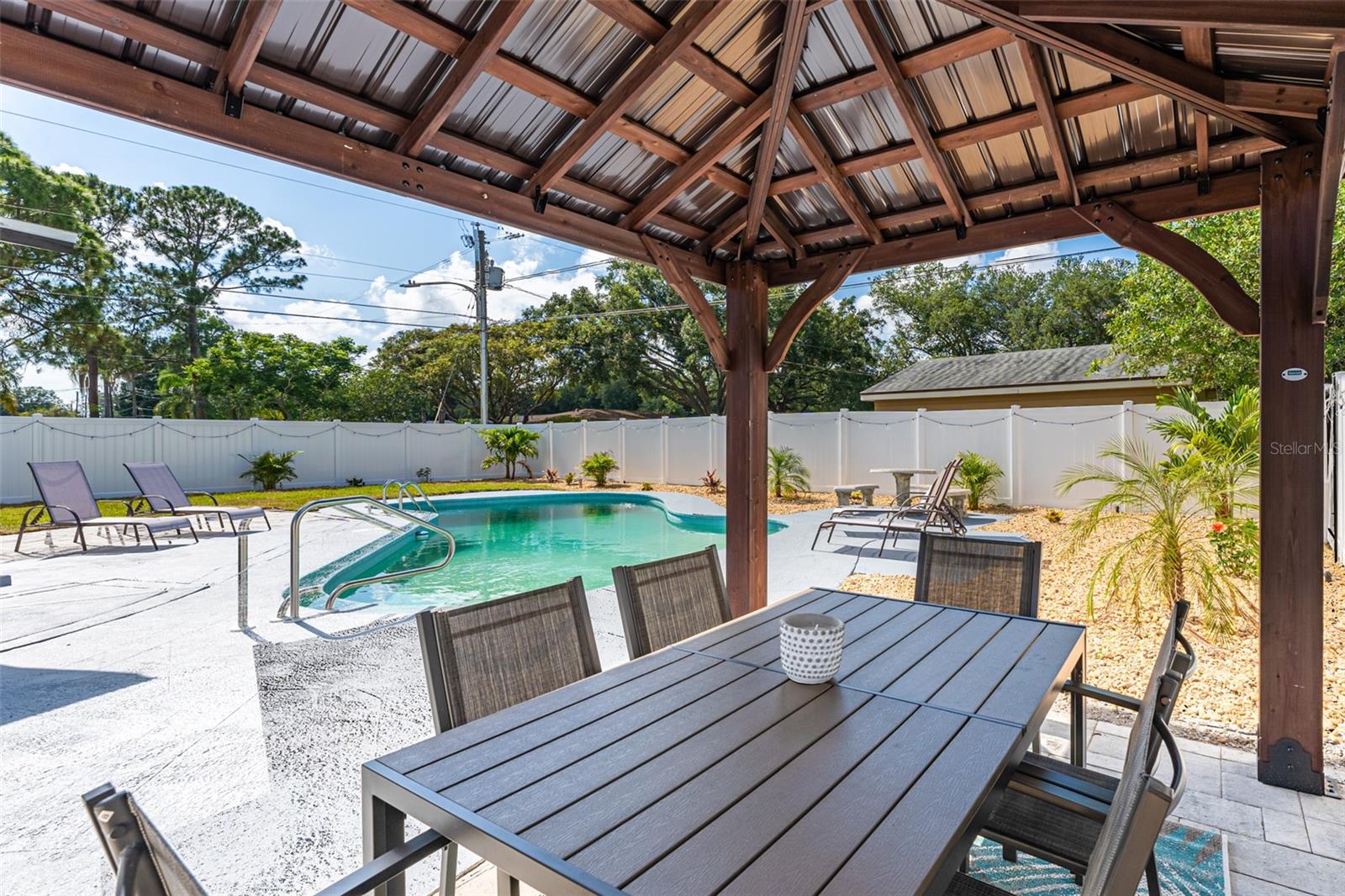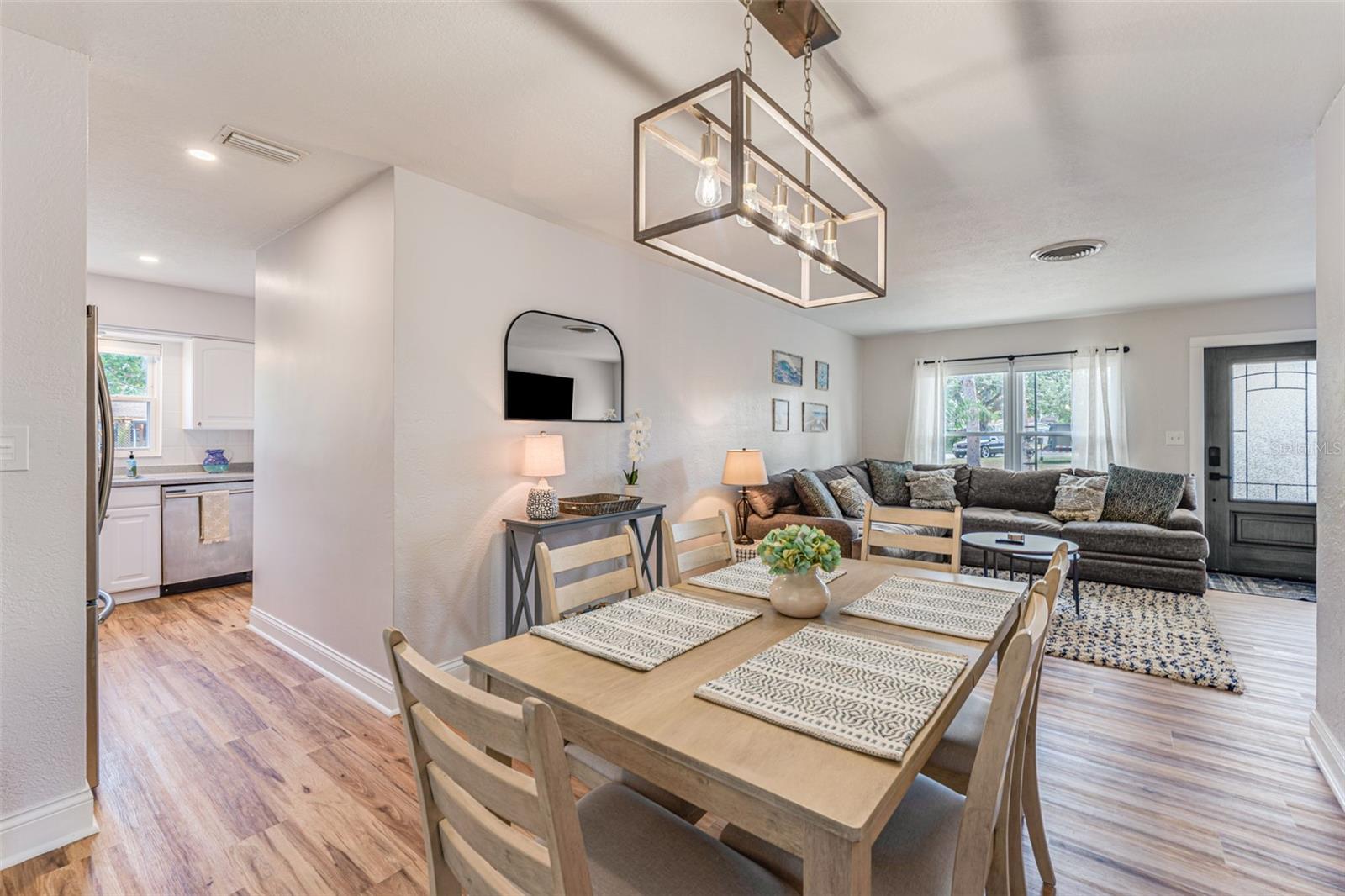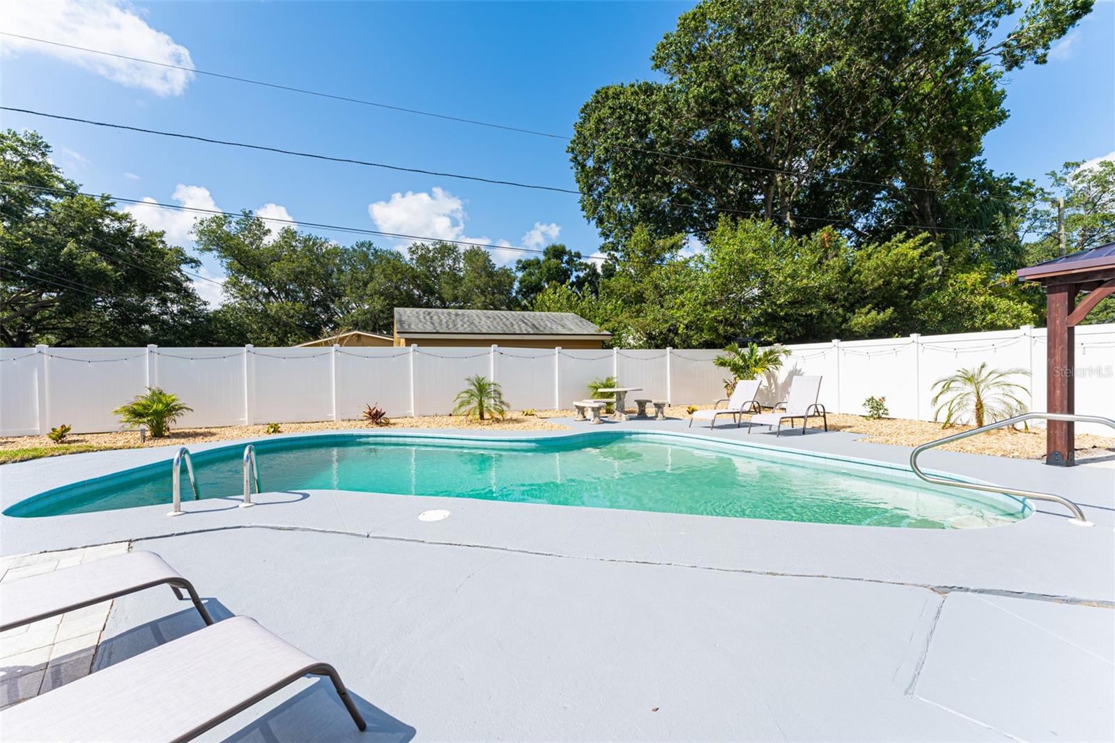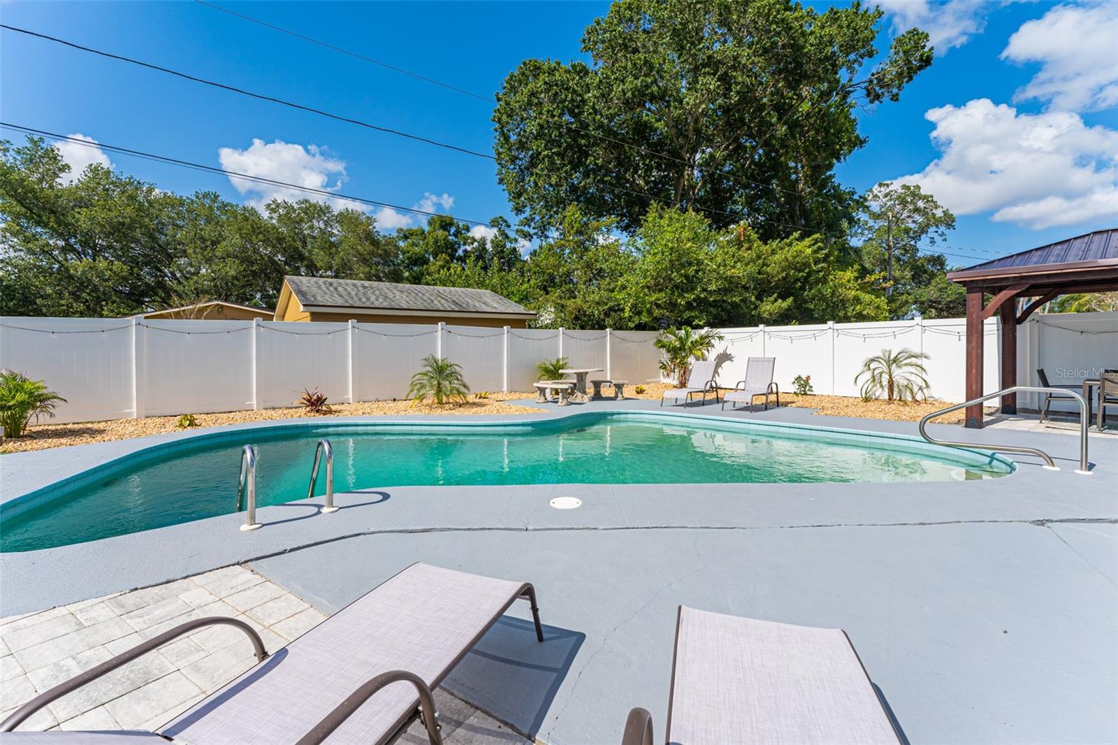Linda casa de três quartos e dois banheiros com piscina no coração de Saint Pete. Recentemente pintado e atualizado. Pavimento vinílico de luxo na sala de jantar, sala de estar, cozinha e hall. Tapete novo em ambos os quartos. Novo telhado em maio de 2021. HVAC 2020. A cozinha bem iluminada tem um novo fogão e exaustor e bancadas em corian. Grande área de jantar. O quarto principal tem banheiro privativo com box amplo. O segundo quarto é amplo, com escritório e área de estar. A garagem foi lindamente convertida para um terceiro quarto ou escritório. O banheiro do corredor tem uma combinação de banheira/chuveiro. Nova lavadora e secadora empilhável. As janelas atualizadas têm inclinação fácil e limpa. Um oásis de quintal com piscina térrea, pérgula, múltiplas áreas de entretenimento e totalmente vedado incluindo armazém. SEM HOA, SEM INUNDAÇÃO! Ligue para sua exibição privada hoje!