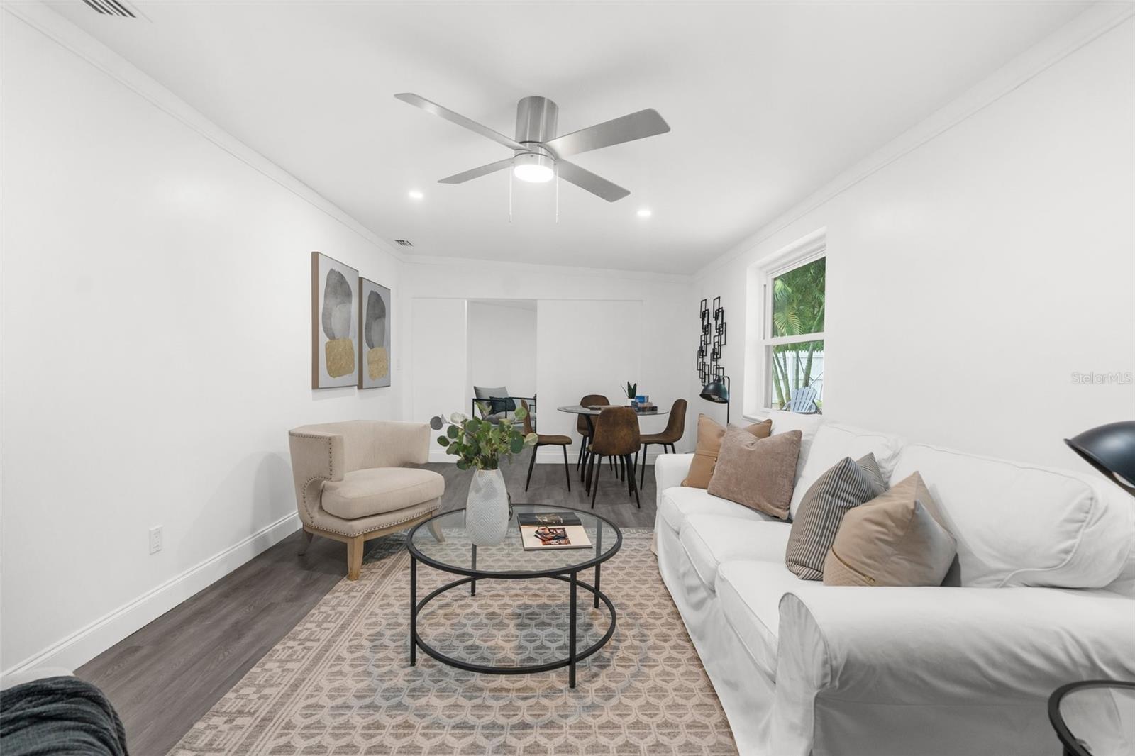 Esta convidativa casa de 3 quartos e 2 banheiros combina com maestria renovações modernas com um layout que enfatiza espaço e flexibilidade. Ao chegar, a atratividade do meio-fio é inegável - a entrada de automóveis alongada, com espaço para seis ou mais carros, leva a uma charmosa varanda frontal emoldurada por palmeiras Areca maduras e um paisagismo exuberante, criando uma primeira impressão acolhedora. As linhas simples e os detalhes das venezianas do exterior sugerem as atualizações cuidadosas encontradas no interior. Ao entrar, você é recebido por uma sala aberta e arejada, banhada por luz natural proveniente de grandes janelas frontais. O piso de madeira projetada flui perfeitamente por toda a casa, unificando os vários espaços de convivência. As principais áreas de estar e jantar formam o coração da casa, onde você notará a atenção aos detalhes em cada canto - desde a moderna textura lisa do drywall Nível 4 até as luminárias selecionadas pelo designer que adicionam um toque contemporâneo. A cozinha, equipada com armários shaker brancos e elegantes bancadas de quartzo, fica ao lado da área de jantar, proporcionando um espaço de trabalho eficiente e elegante para os entusiastas da culinária. O layout é ideal tanto para a vida cotidiana quanto para o entretenimento, com a cozinha se conectando perfeitamente à área de jantar, facilitando as refeições em família ou organizando reuniões. Na parte traseira da casa, a planta baixa se desdobra em uma sala de estar versátil, oferecendo vistas tranquilas do amplo quintal. Este quarto é perfeito para um retiro tranquilo ou para um escritório em casa, e seu acesso direto ao exterior aumenta a conexão entre a vida interna e externa. Para aumentar ainda mais a flexibilidade da casa está a ampla sala familiar, com uma lareira aconchegante que ancora o espaço. Esta sala é grande o suficiente para servir múltiplas funções - seja como área de estar secundária, sala de jogos ou até mesmo uma potencial conversão em suíte master. Com a adição de um quarto e banheiro, este espaço poderia facilmente transformar a casa em uma propriedade de 4 quartos e 3 banheiros, acomodando uma família em crescimento ou proporcionando acomodações extras para hóspedes. Os quartos são cuidadosamente posicionados para oferecer privacidade e conforto, com destaque para a suíte master. Possui uma grande janela que emoldura vistas tranquilas do jardim da frente, criando um ambiente sereno para relaxar. Os banheiros totalmente renovados, com detalhes em azulejos do chão ao teto, exalam uma qualidade de spa, adicionando um toque de luxo ao dia a dia. rotinas. Ao sair, o enorme quintal privado é uma tela em branco para os seus sonhos de viver ao ar livre. Quer você pretenda adicionar uma piscina, criar um oásis de jardim exuberante ou projetar a melhor área de entretenimento, as possibilidades são infinitas. Localizada em uma área nobre perto do centro de São Petersburgo, Madeira Beach e Aeroporto Internacional de Tampa, esta casa oferece conveniência incomparável. Também fica perto do HCA Northside Hospital e com fácil acesso a shopping centers, restaurantes e opções de entretenimento, tornando-o a escolha ideal para quem procura um ambiente de vida sereno e fácil acesso a comodidades urbanas. Esta casa não é apenas um lugar para morar – é um estilo de vida, oferecendo uma combinação perfeita de atualizações modernas, áreas de estar espaçosas e potencial externo. Não perca a oportunidade de torná-lo seu.