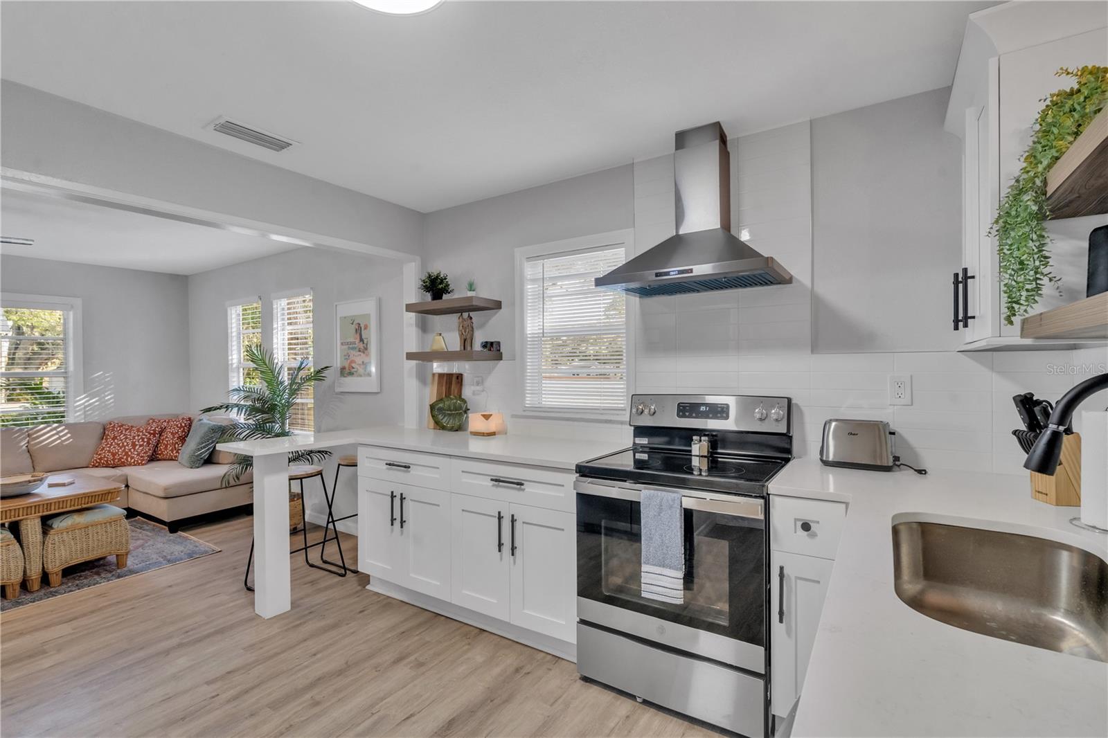 Descubra este bangalô deslumbrante, acessível a pé até Gulfport! Entre em um espaço de conceito aberto banhado por luz natural quente, com destaque para a cozinha recém-remodelada. Apresentando bancadas de quartzo personalizadas, armários totalmente em madeira com portas e gavetas com fechamento suave e eletrodomésticos de aço inoxidável atualizados, cada detalhe foi meticulosamente elaborado. A casa apresenta novos pisos de pranchas de madeira e vinil, pintura interna e externa fresca e um NOVO telhado (2022). Localizada a apenas um quarteirão de campos de golfe, perto das praias e a poucos minutos do centro de St. Pete, esta casa também possui um amplo quintal, perfeito para viver ao ar livre. Verdadeiramente uma jóia!