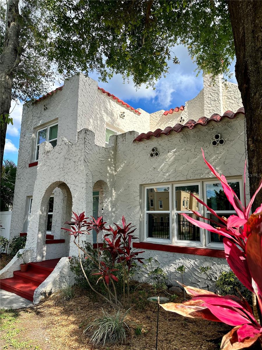 Belo castelo de estilo espanhol em um enorme lote duplo com uma piscina aquecida e na banheira de hidromassagem moída! Esta casa incrível é linda por dentro e por fora, com três quartos e dois banheiros no segundo andar, além de dois quartos adicionais e 1,5 banheiros no primeiro andar, que também podem ser usados como um apartamento em direito. Esta casa foi reformada em 2016 com novas janelas, portas, uma cozinha espetacular e um novo teto. Os painéis solares adicionados em 2019 e são pagos. As pavimentadoras foram adicionadas ao redor do convés da piscina em 2021. Este é um lote duplo gigante com um grande cercado no pátio lateral e separado no quintal com piscina e banheira de hidromassagem. A Areca Palms, em todo o jardim da frente, oferece privacidade e o quintal tem belo paisagismo tropical. A propriedade é dividida em NTM-1 e a cidade de St. Pete disse que pode ser desenvolvida para 11 moradias.