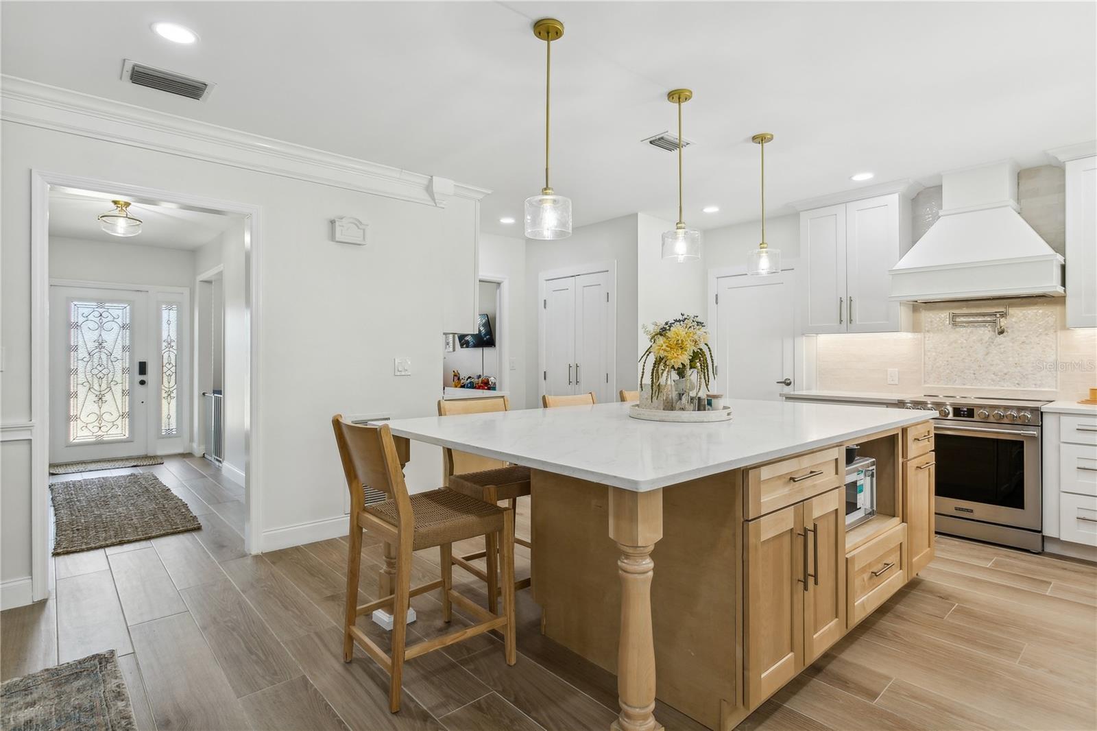 Bem-vindo ao Bayway Isles, um condomínio fechado muito procurado do outro lado da ponte da premiada St. Pete Beach, Pass-a-Grille e Treasure Island. A apenas 15 minutos do vibrante centro de São Petersburgo, você terá fácil acesso a restaurantes sofisticados, museus e boutiques. Esta casa térrea com piscina, recentemente e lindamente renovada, oferece 3 quartos e 2 banheiros. A NOVA COZINHA apresenta armários de madeira maciça, bancadas de pedra, iluminação sob os armários, novos eletrodomésticos de aço inoxidável e uma grande ilha ideal para reuniões. Uma espaçosa despensa recém-adicionada e um bar de café da manhã completam a configuração dos sonhos do chef. A cozinha flui perfeitamente para a sala familiar iluminada, tornando-a perfeita para entretenimento. O piso de porcelanato em estilo madeira recentemente instalado se estende por toda a casa. Ambos os banheiros completos foram atualizados com acabamentos modernos, incluindo novos azulejos, armários e encanamentos. Saia para o seu oásis de quintal privado de grandes dimensões, com uma grande piscina subterrânea cercada por uma paisagem exuberante. Relaxe na varanda durante as noites frias de verão. Os destaques adicionais incluem janelas e portas deslizantes de impacto de furacão, um sistema HVAC 2024 totalmente novo, novos ventiladores, garagem para 2 carros, grande lavanderia interna com armários novos, sala de estar formal e sala de jantar.