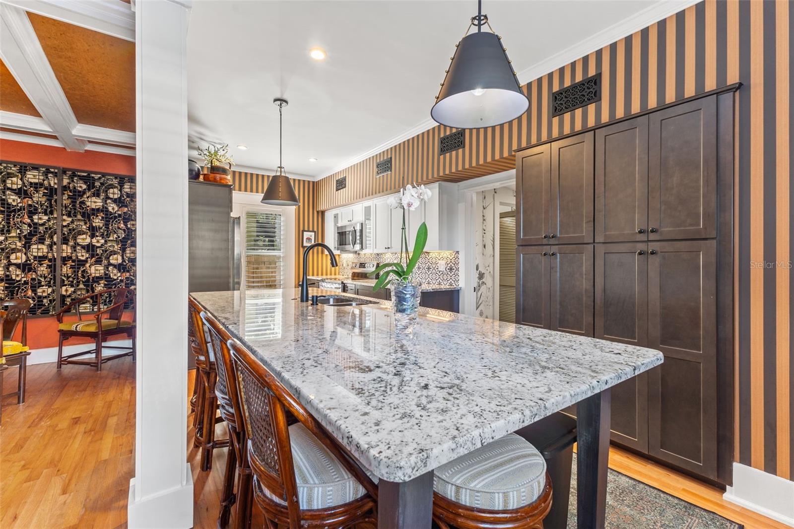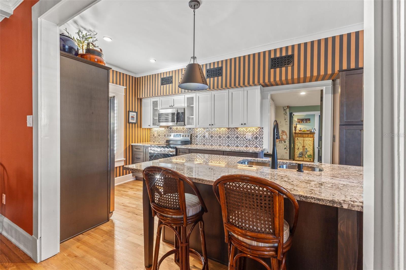 Construído como um boi! Descubra um retiro único e personalizado em estilo de casa de fazenda em um dos bairros mais procurados de São Petersburgo - Crescent Heights. Alta e seca durante o furacão Helene e Milton! Esta residência principal de dois andares, com 3 quartos, 3,5 banheiros e 2.454 pés quadrados de área de luxo, ostenta charme histórico com elegância moderna e importada. Ao entrar, você é recebido pelo calor dos pisos de madeira originais, realçados pelo carvalho antigo em todo o nível principal. A cozinha lindamente remodelada apresenta bancadas de granito, armários de madeira maciça e toques personalizados, como uma grande ilha central, uma intrincada sala de jantar com teto em caixotões com cortiça italiana e detalhes em folha de ouro. Eletrodomésticos de aço inoxidável e muito espaço de armazenamento, inclusive com um armário Cinderela. Um verdadeiro santuário, a suíte principal no segundo andar é um retiro por si só, oferecendo um café e bar de vinhos embutidos personalizados, gaveta embutida na geladeira e guarda-roupa personalizado com gavetas profundas que tornam a vida diária uma indulgência. espaçosa área de estar com tapete personalizado e escritório privativo. O banheiro privativo exala sofisticação com um armário de laca escura e um box amplo espaçoso. Dois quartos adicionais possuem iluminação personalizada, venezianas e acabamentos impecáveis. Adjacente à casa principal, uma ADU totalmente independente oferece 900 pés quadrados de funcionalidade elegante. Com um loft aconchegante, cozinha completa, sala de jantar e área de estar, este espaço é ideal para hóspedes ou potencial renda de aluguel. Ele apresenta um novo telhado de metal com costura vertical e compartilha as atualizações de alta qualidade da propriedade, como janelas à prova de furacões e iluminação Visual Comfort. Ao ar livre, relaxe no pátio privativo cercado, à sombra de carvalhos maduros, ou desfrute do jardim personalizado com uma variedade de plantas personalizadas, árvores e uma fonte de água decorativa em funcionamento. A propriedade também inclui armazenamento em estilo estável, um sótão totalmente piso no 3º andar com ventiladores solares e industriais e 7 vagas de estacionamento. Detalhes distintos incluem uma fundação à prova de criaturas, novo encanamento na casa principal, novas cercas, papel de parede importado personalizado de G P & J Baker, William Morris e artesãos europeus, sancas personalizadas e portas com venezianas por toda parte. Esta casa com paisagismo requintado combina o melhor do artesanato do velho mundo com o luxo contemporâneo, criando uma residência verdadeiramente rara e convidativa. A poucos minutos do centro de St. Pete e fácil acesso à I-275 com fácil deslocamento para Tampa. Lojas próximas e restaurantes especializados. Mime-se com a melhor vida de luxo com toda a atenção aos detalhes.