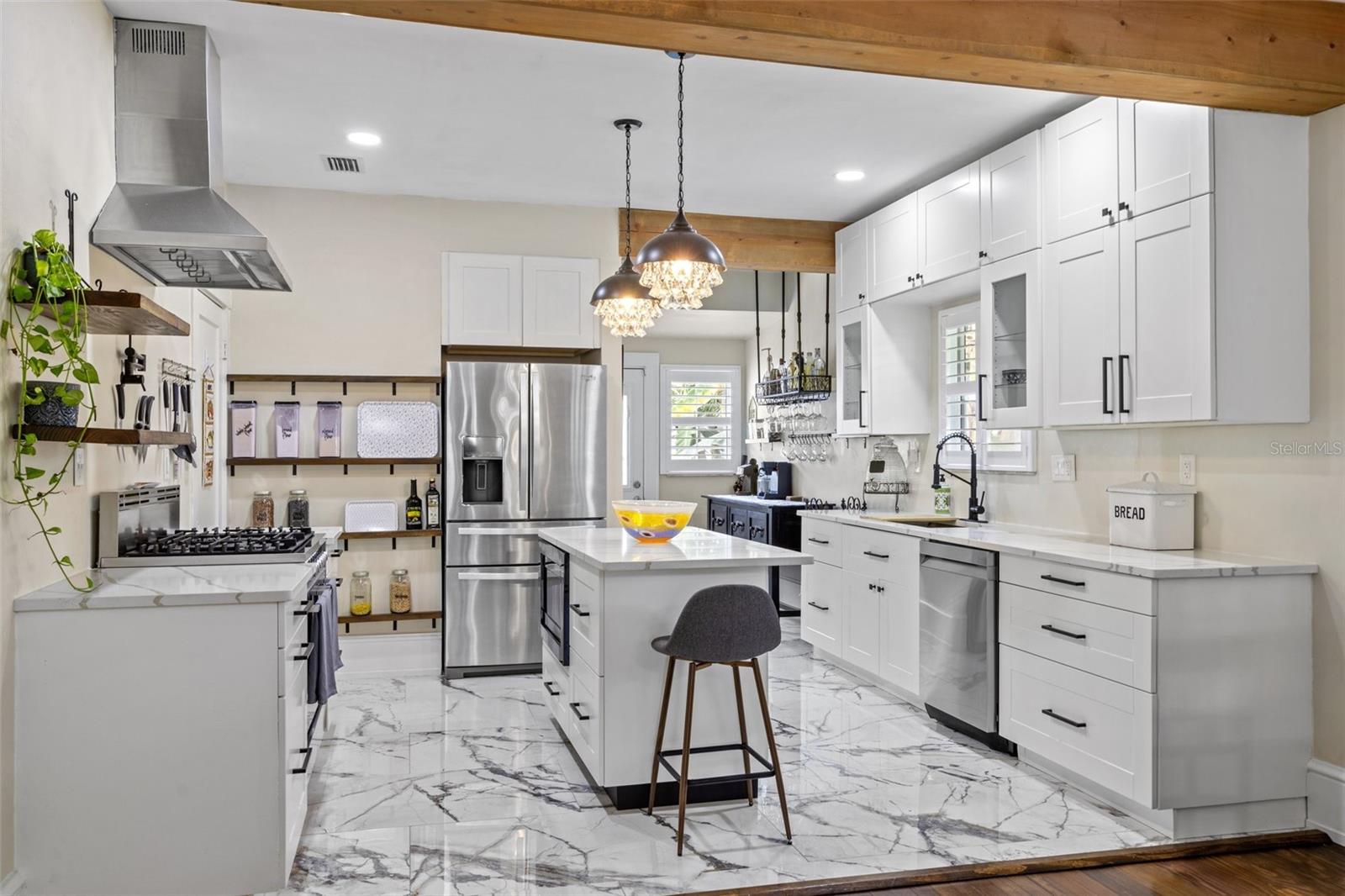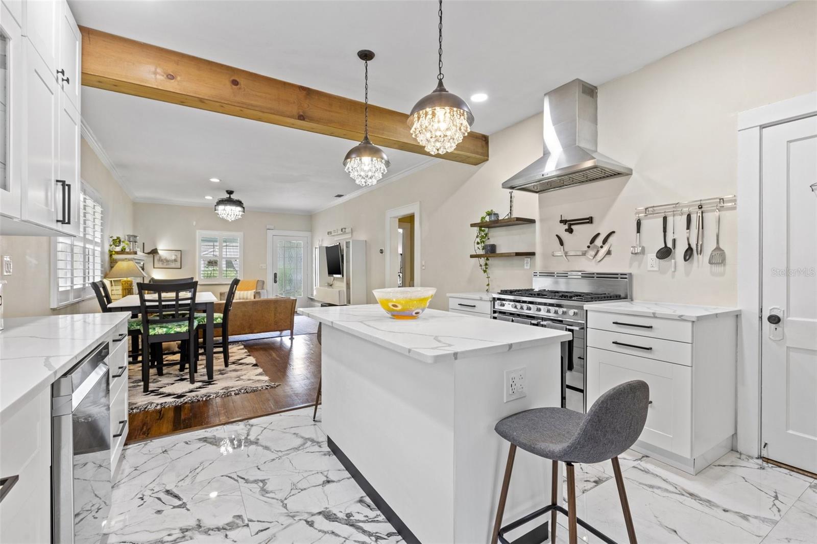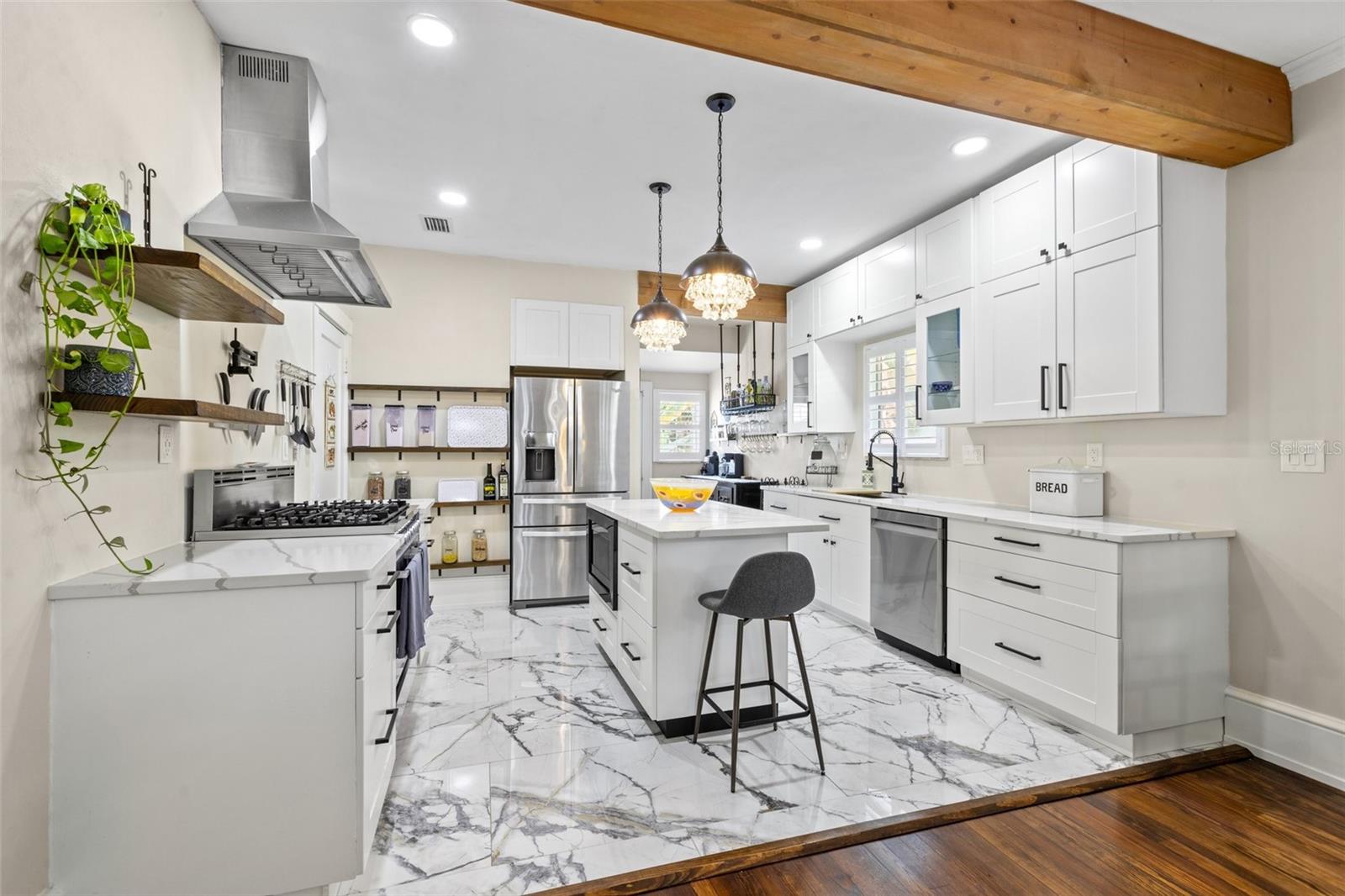 Uma ou mais fotos foram virtualmente encenadas. Este deslumbrante bangalô histórico Kenwood de 1927 com 2 quartos e 1 banheiro fica em um lote multifamiliar e oferece não um, MAS dois estúdios separados para sogros! A casa principal possui uma grande varanda frontal por excelência, perfeita para o café da manhã ou para relaxar com uma taça de vinho e um bom livro no final do dia. Pela porta da frente você notará imediatamente os brilhantes pisos de madeira originais que são banhados pela luz natural das muitas janelas, todas com venezianas personalizadas. A sala de estar flui para a sala de jantar e para a deslumbrante cozinha totalmente atualizada, completa com fogão a gás de 5 bocas de alta qualidade e bancadas de quartzo cambria britannica premium. Ambos os quartos são de ótimo tamanho. O quarto principal está utilizando o que era o terceiro quarto como closet. Este terceiro quarto também pode ser facilmente convertido em uma suíte para o quarto principal - adoro ter opções!! A parte de trás da casa tem um fabuloso deck lateral com muito espaço para entreter. O quintal é meticulosamente cuidado e oferece muitas árvores frutíferas diferentes, como bananeira, limão e muito mais! As duas unidades separadas para sogros têm 280 pés quadrados cada e são aconchegantes, fofas e, se você decidir alugá-las, podem ser uma grande fonte de renda! Ou mantenha uma como casa de hóspedes e use outra como escritório dedicado! A propriedade está repleta de opções e oportunidades. sua propriedade está repleta de opções e oportunidades, então não ande ou rasteje, mas CORRA para ver esta antes que ela seja arrebatada!