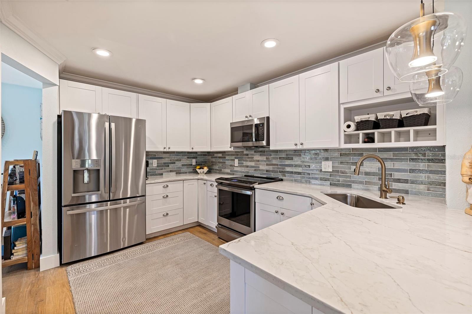 Redução de preços, vendedor motivado (traga todas as ofertas!) Neste delicioso 2 quartos + den, 2,5 banheiros, 1 carro anexado garagem, unidade final da unidade localizada na comunidade serena de marca d'água. Sem mencionar a oportunidade de alugar um deslizamento de barco da associação (aproximadamente US $ 130/mês) inclui água e elétrica. Esta casa tem 1.485 pés quadrados de espaço confortável e oferece uma mistura perfeita de comodidades modernas e charme clássico. No final de 2023, a cozinha foi aberta para a sala da família e atualizada com lindas balcões de quartzo, respingo de cerâmica moderna, pia de aço inoxidável maior, torneira Delta e aparelhos de perfil da linha da linha, incluindo forno de convecção e fogão de indução. Além da reforma da cozinha, as escadas foram realocadas e modernizadas, criando um espaço mais utilizável na sala da família. Um armazenamento embaixo das escadas é um bônus adicional e pode ser servido mesmo como um "retiro de cachorrinho". Sim! Animais de estimação são bem -vindos! MAIS RECURSOS PRINCIPAIS DE 2023: TELHO NOVO METAL, Calhas, piso de vinil de luxo, rodapé modernizado e moldagem por coroa e nova iluminação no primeiro andar. Novo sistema de alarme instalado com sensores de porta/janela adicionados para a segurança extra, se desejado. A casa possui uma entrada particular, janelas de impacto de furacões, luz natural abundante, lareira a lenha na sala da família e portas francesas que levam a um espaçoso lanai exibido com armário de armazenamento. O pátio tem vista para o lago da fonte com paisagismo exuberante. O espaço do escritório/den está localizado na cozinha. Retire-se para a espaçosa suíte primária com teto de bandeja, que oferece uma fuga tranquila com seu banho de banho, grande banheira de imersão de jacuzzi, chuveiro de vidro, vaidade dupla com bancada em granito (belos espelhos modernos) e dois armários (um walk-in com embutido). O quarto de hóspedes, também com um banho de suíte, vaidade com bancada em granito e chuveiro. A lavanderia está convenientemente localizada perto dos quartos. Esta comunidade à beira -mar possui uma doca compartilhada conveniente para pescar e lançar tábuas de caiaques/paddle - paddle curto para Weedon Island. A propriedade é meticulosamente mantida com belo paisagismo, piscina comunitária e sauna. As taxas do HOA incluem seguro de construção e inundações, manutenção de piscina e construção, gerenciamento, esgoto, água, lixo e também inclui cabo básico e internet de alta velocidade. Convenientemente localizado próximo ao vibrante centro de São Petersburgo, a 30 minutos das praias do Golfo, Tampa e Aeroportos de Clearwater. Curto de carrinho de golfe até Mangrove Bay Public Golf Course e o novo YMCA.