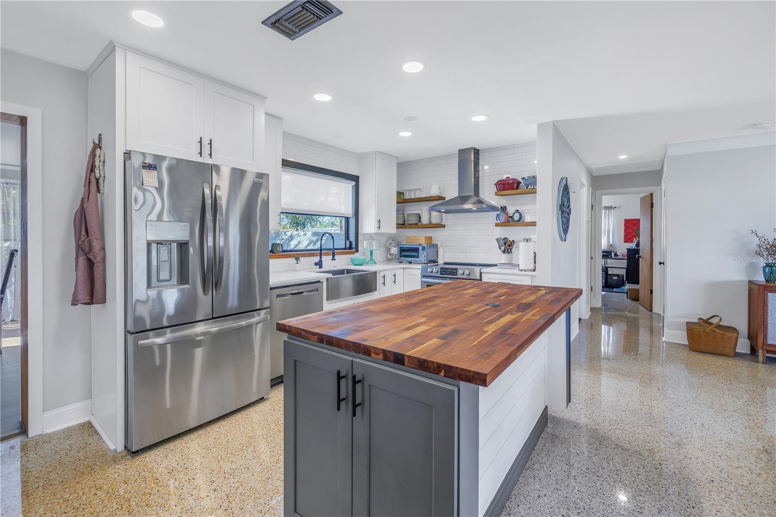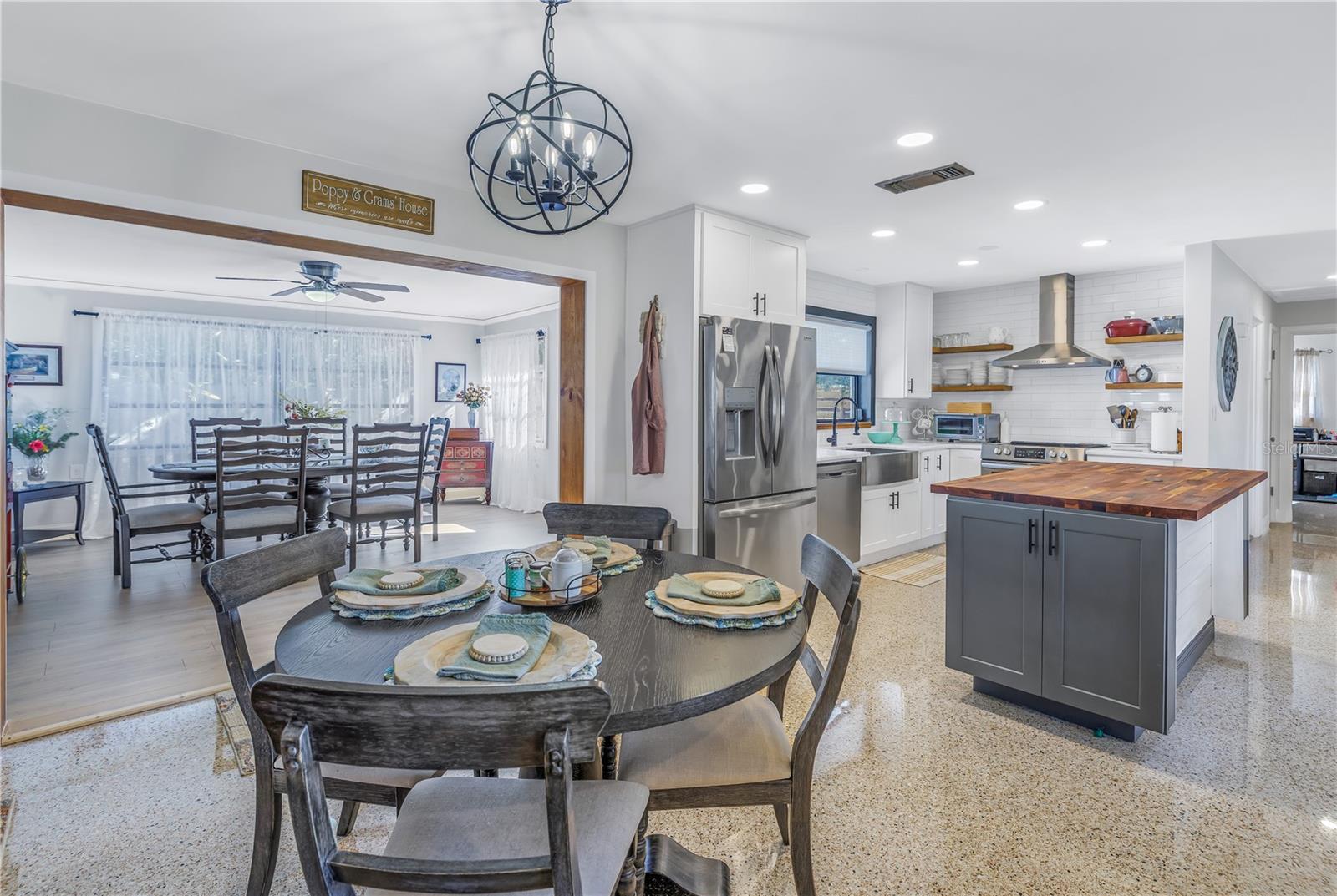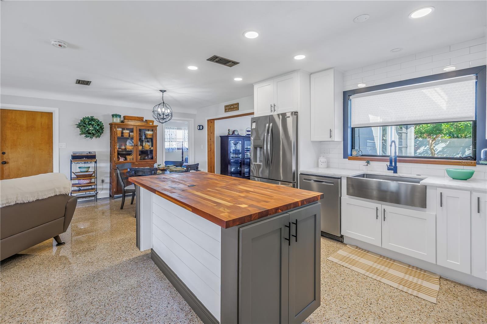 Mova -se para a direita nesta casa imaculada em 3/2/1 com 1564 pés quadrados aquecidos, planta baixa, brilhante e aberta com quartos divididos. Pisos de terrazzo reluzentes recém -refinados. Novo vinil de luxo na sala da Flórida. Cozinha atualizada com balcões de quartzo, utensílios de aço inoxidável, pia da fazenda e toneladas de charme ... Ilha de açougueiro personalizada, prateleiras flutuantes de madeira, respingo traseiro de ladrilhos do metrô que contraria o teto ... Suíte primário apresenta um closet, atualizado com a suíte com tampo de granito, azulejo de sub -via, a caminha no chuveiro e no desfiladeiro. Banho de hóspedes apresenta a vaidade de granito com pias duplas, ladrilhos de metrô, combinação de banheira/chuveiro e piso de mosaico. Grande quintal paisagístico com um jardim de ervas, 2 galpões e espaço para uma piscina. Também aproveite o ar livre, balançando na grande varanda de 45x 6. Grande garagem dupla expandida com muito espaço para estacionamento. Espaço para estacionamento para trailers ou trailers. Centralmente localizado em Sheryl Manor, altamente desejada. Minutos para o Northwest Park and Recreation Center. Cerca de 5 minutos de carro das lojas de Tyrone Mall, restaurantes, entretenimento ... 15 minutos de carro (mol) até as praias de areia branca do Golfo do México. Vá 15 minutos na outra direção e aterrisse no centro de St. Pete ... Parques dianteiros de Tampa Bay, jantar, compras, museus, vida noturna, ... a cerca de 30 minutos de carro do Aeroporto Internacional de Tampa. Observe ... a casa recebeu uma intrusão muito menor de água -cerca de uma polegada ou menos de água em parte da casa do furacão Milton. Os pisos de vinil foram removidos e o Terrazzo foi reformado por toda parte. A adição da sala dos fundos tem um novo piso de vinil.