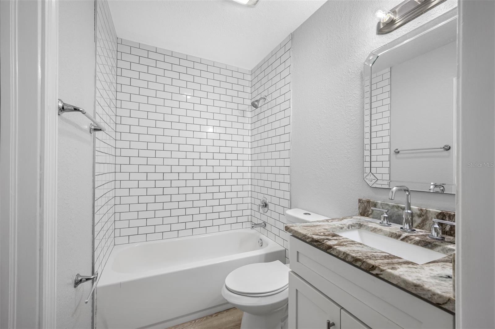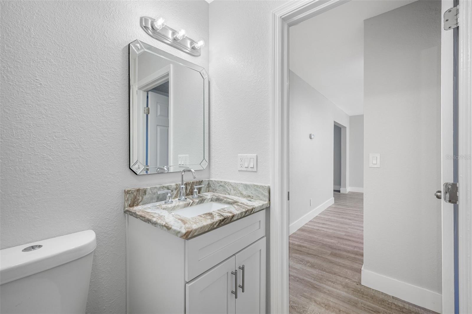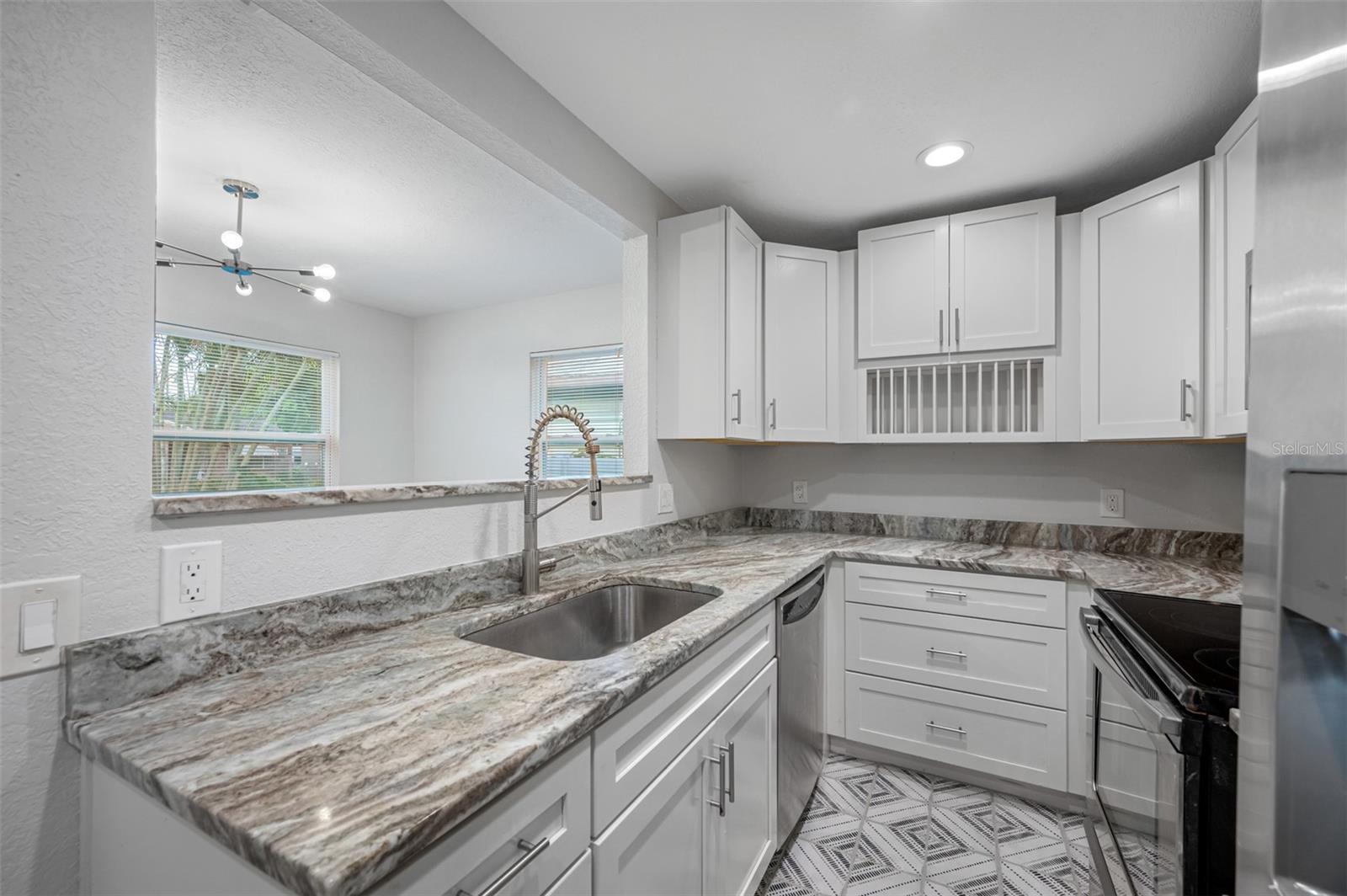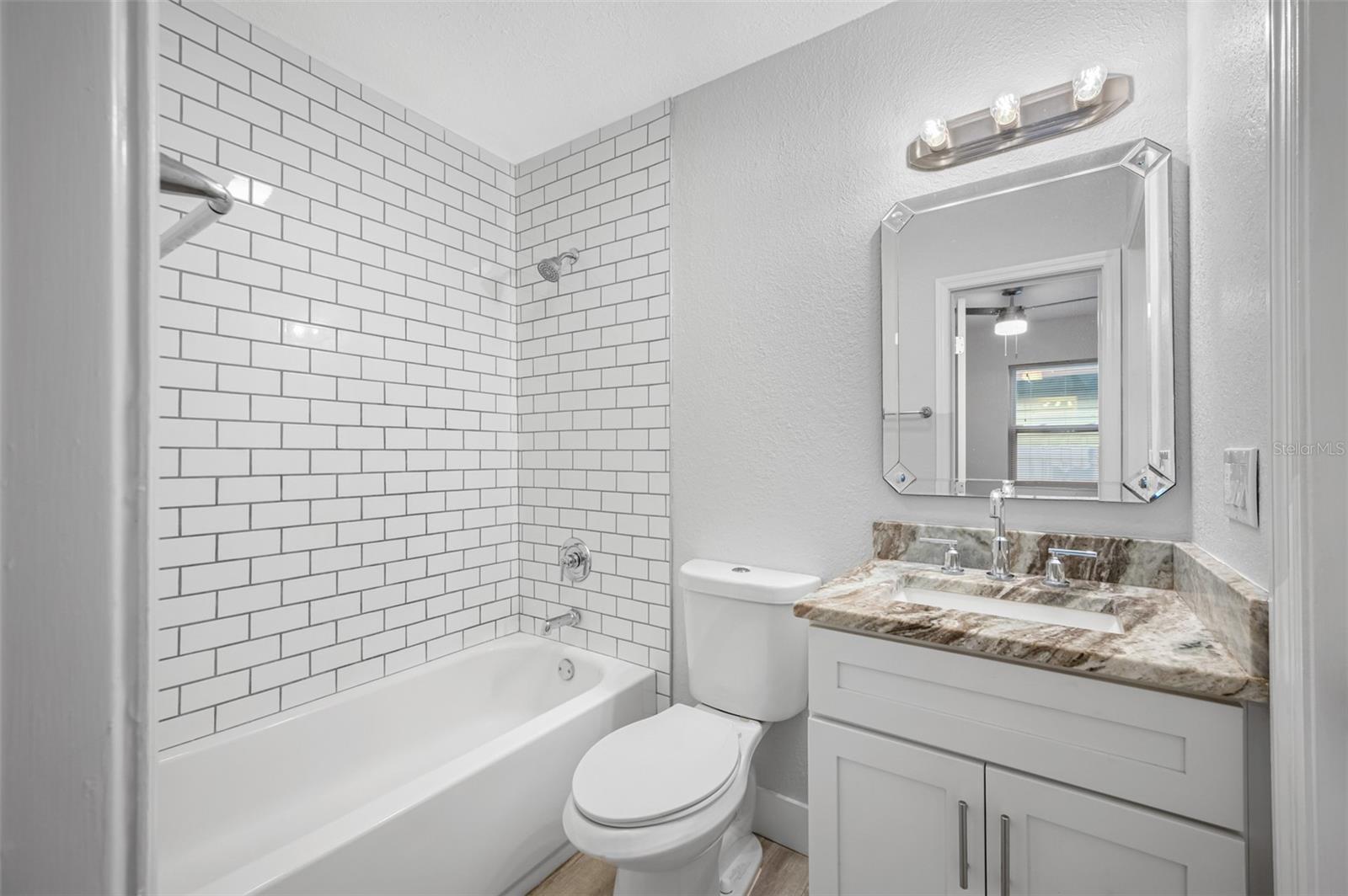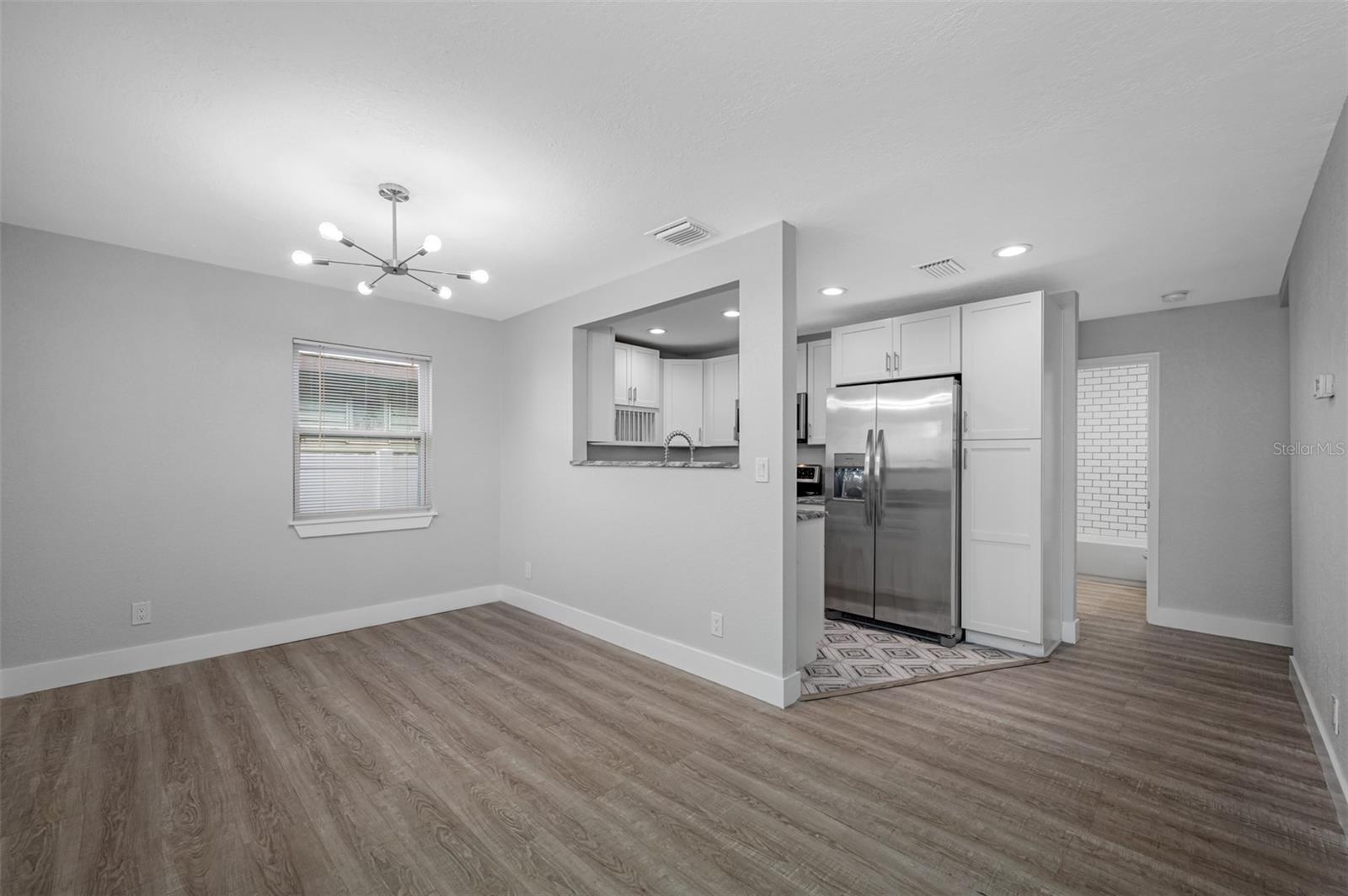 Casa atualizada de 2 quartos e 2 banheiros com 896 pés quadrados de área útil. A cozinha tipo galley possui bancadas de granito, armários shaker e eletrodomésticos de aço inoxidável, incluindo uma máquina de lavar louça recém-instalada. Uma janela de passagem conveniente se abre para a sala de jantar a partir da cozinha. O quarto principal possui banheiro privativo com azulejos elegantes e uma penteadeira nova, enquanto o segundo quarto também oferece banheiro privativo com banheira e chuveiro. Vendida como está, a propriedade precisará de reparos no piso devido aos recentes danos causados pelas tempestades para atingir seu pleno potencial. A propriedade foi reformada em 2017-2018, 70' de linha de esgoto foram substituídos, janelas substituídas por janelas e portas de impacto, reformas completas de cozinha, armários, bancadas e eletrodomésticos, substituição de dutos para HVAC para 6 suprimentos existentes e 4 retornos. AC 2020: Telhado 2015: Observação: as fotos mostram as condições atuais do piso e as fotos anteriores mostram atualizações. O vendedor é investidor e nunca ocupou o imóvel. Os tamanhos dos quartos são aproximados.