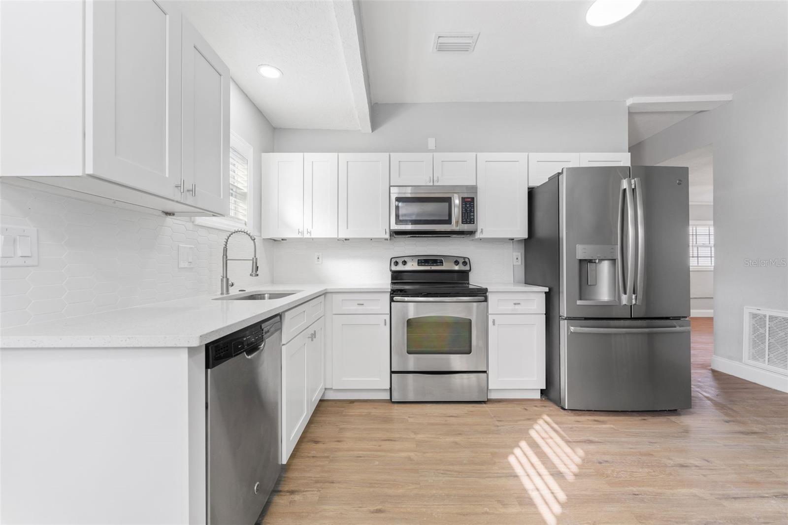 Mais de 20k queda de preço! Esta casa de 3 quartos e 1 banheiro em St. Pete foi totalmente reformada e atualizada, oferecendo a experiência de uma casa moderna e moderna! Todo o trabalho caro e pesado foi feito novo telhado, novas janelas, novos encanamentos, novo aquecedor de água sem tanques, novo elétrico, novo tapume, novo intradorso, nova cerca. O belo piso de vinil de luxo permite que seus olhos fluam e complementam qualquer decoração, com muitas janelas para iluminação natural em toda a casa. A impressionante cozinha possui utensílios de aço inoxidável, como um microondas auto -limpador, geladeira com fabricante de água e gelo, fogão e máquina de lavar louça de 4 queimadores, que estão aninhados entre os armários brancos de fechamento e belas bancadas de quartzo com um backsplash moderno de design. O banheiro elegante e elegante está localizado centralmente para você e seus convidados. Quartos projetados com eficiência que parecem espaçosos e práticos. Esta casa é perfeita para o proprietário pela primeira vez ou um Nester vazio que procura reduzir o tamanho. Esta casa está em uma localização privilegiada e não requer seguro contra inundações, nem HOA, nenhuma inundação durante nenhuma das tempestades. Agende sua exibição particular hoje e faça desta propriedade sua casa e oásis privado!
