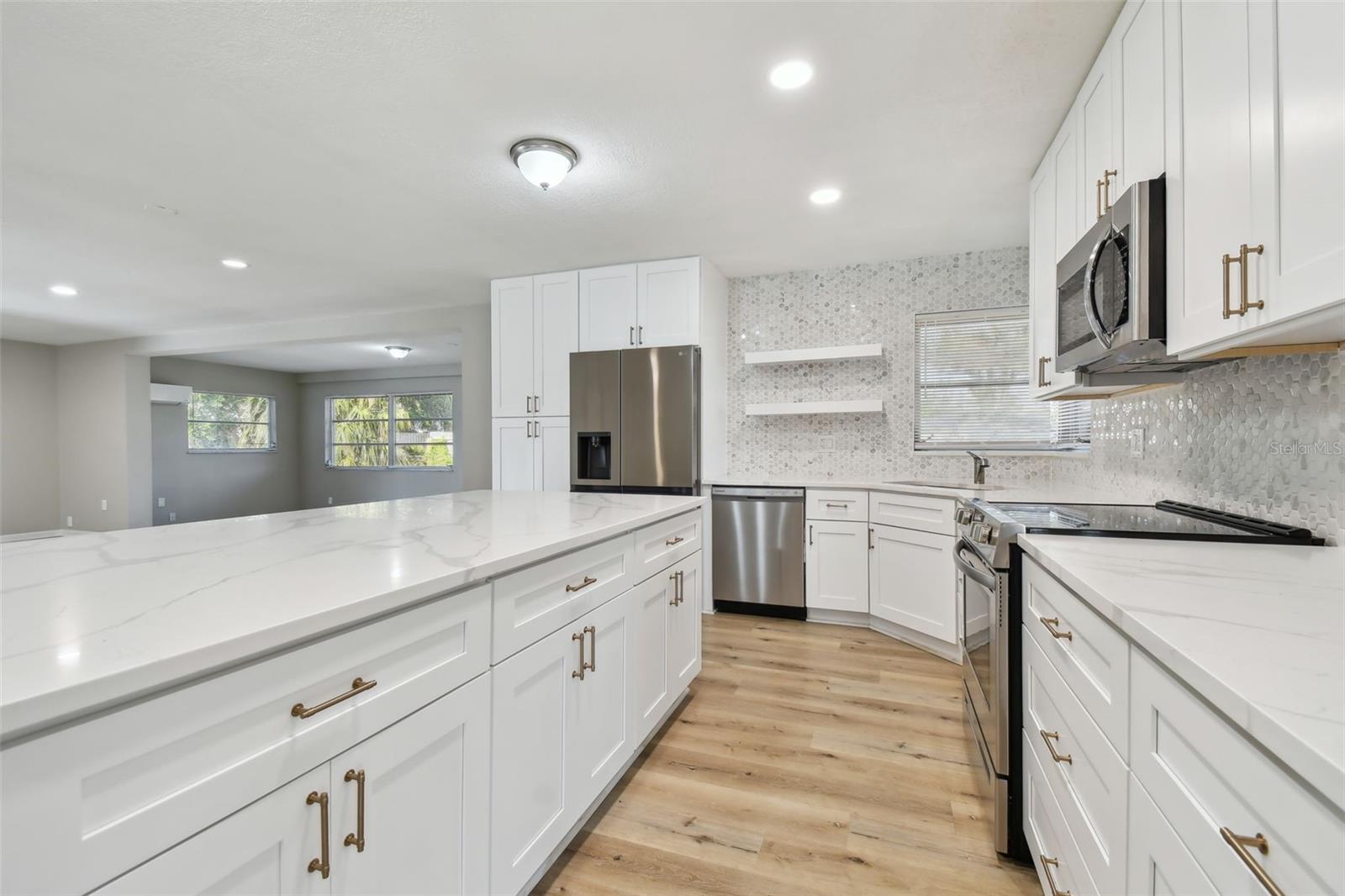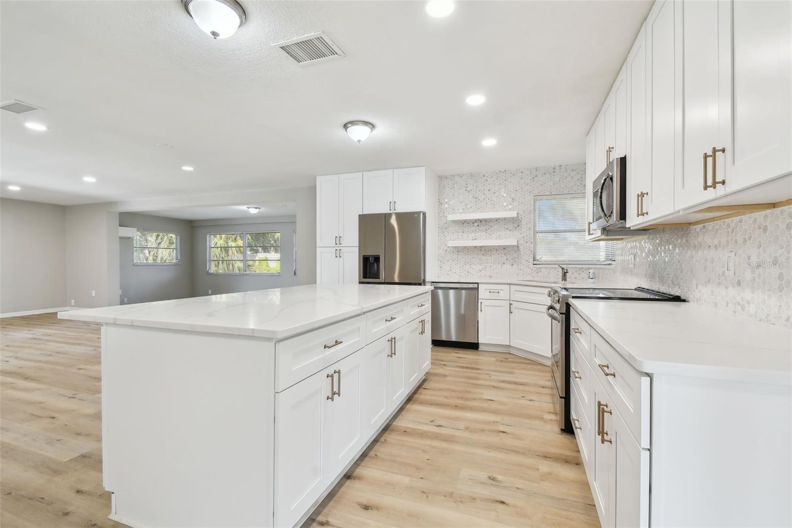 ACABAMENTOS DE DESIGN IMPRESSIONANTES! Com quase 2.000 pés quadrados, esta casa atualizada com bom gosto oferece 3 quartos, 2 banheiros e uma garagem para 2 carros escondida em um terreno de grandes dimensões, localizada no altamente desejável bairro de Wedgewood Park/Pinellas Point, em São Petersburgo! Sem HOA. NÃO é necessário seguro contra inundações! Chegando à sua futura casa, você será atraído pela pintura moderna, pela garagem com carregamento lateral, pela garagem/parque de estacionamento de grandes dimensões e pela fachada de tijolos, proporcionando um apelo encantador ao meio-fio. Sua entrada acolhedora apresenta azulejos de design personalizado que imediatamente dão o tom para as atualizações luxuosas que esta casa tem a oferecer. Entre e você encontrará um ótimo espaço aberto em estilo de sala com luxuoso piso de vinil à prova d'água, acessórios modernos e muitas janelas para luz natural. A cozinha Dream lindamente atualizada tem tudo, ostentando armários shaker personalizados de 42 ”com recurso de fechamento suave, oferecendo muito espaço de armazenamento, bancadas de QUARTZO deslumbrantes, ferragens OURO, enorme ilha central com barra de café da manhã convidativa, eletrodomésticos de aço inoxidável, despensa espaçosa, backsplash hexagonal de MÁRMORE e espaço bônus para comer na cozinha. A grande combinação de cozinha, sala de jantar e sala de estar em conceito aberto oferece muito espaço para todos! Enorme área de bônus com potencial para uma área de jantar formal ou espaço flexível para todas as suas necessidades de entretenimento! Aproveite sua suíte Primária iluminada e espaçosa, com luxuoso carpete macio, amplo closet e banheiro privativo. Fuja para o seu retiro tipo spa, banheiro privativo com piso de cerâmica, box amplo com lindos acabamentos de azulejos personalizados e pia de quartzo atualizada com ferragens douradas e armários shaker. Dois quartos de hóspedes oferecem amplo espaço para todos e apresentam novos carpetes luxuosos de alta qualidade com bastante espaço no armário. O banheiro de hóspedes é totalmente atualizado com piso de ladrilho hexagonal de design, pia moderna de quartzo com amplo balcão e espaço de armazenamento e chuveiro/banheira com acabamento em azulejo de metrô brilhante. Sua garagem de grandes dimensões inclui prateleiras embutidas para todas as suas necessidades de armazenamento, um espaço adicional de trabalho/armazenamento com infinitas possibilidades para qualquer projeto e muito espaço para seus carros/brinquedos/barco! A grande porta de vidro deslizante leva ao seu espaço de varanda recém-reprojetado para desfrutar da verdadeira vida ao ar livre na Flórida. Quintal amplo tem muito espaço para piscina! A sua futura casa está numa localização fantástica! A poucos minutos do Centro Recreativo Lake Vista, que possui um belo parque com um lago panorâmico, a primeira academia de ginástica ao ar livre da cidade, trilhas para caminhada que se estendem até a Trilha Pinellas, quadras de tênis, quadras de basquete, uma pista de skate estilo rua, duas quadras de basquete ao ar livre, ginásio coberto , aulas, acampamentos para adolescentes e jovens do ensino fundamental e muitas maneiras de se adequar ao seu estilo de vida ativo! A casa também é conveniente para escolas, Skyway Fishing Pier State Park e I-275 para fácil deslocamento para Tampa/Sarasota/Bradenton. Perto das premiadas praias do Golfo, Fort DeSoto Park/Dog Beach, das históricas Pink Streets, do centro de São Petersburgo para ótimas compras, vida noturna e restaurantes! Venha conhecer esta incrível casa hoje e faça-a sua amanhã!