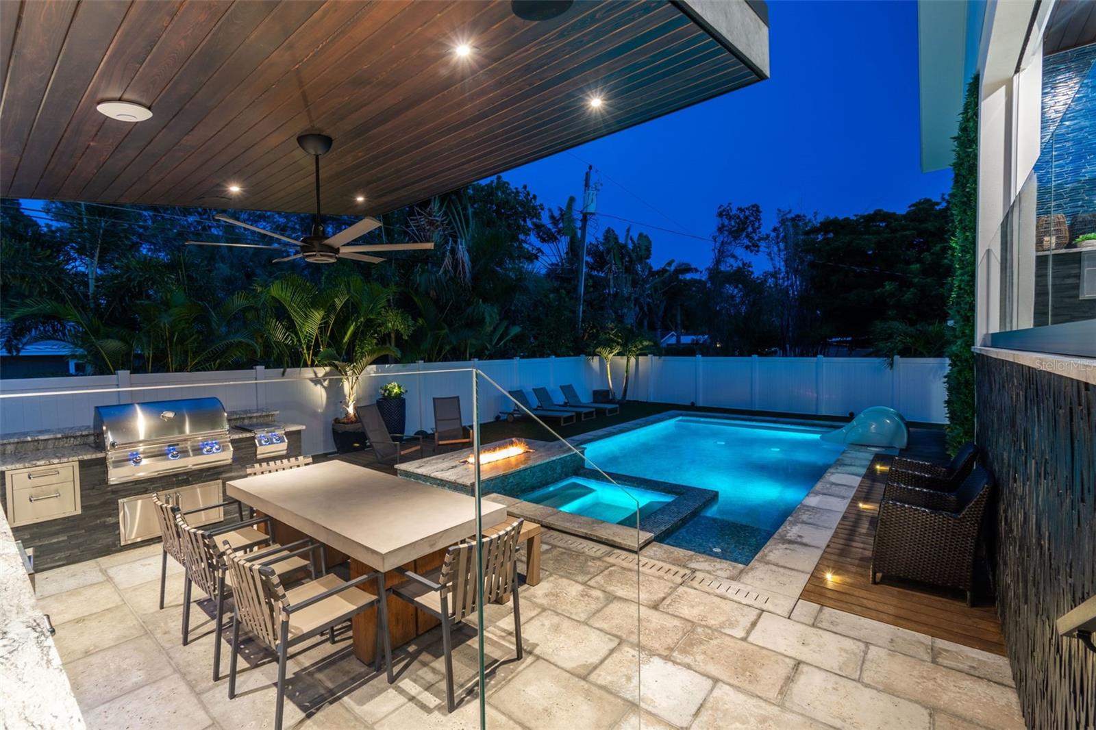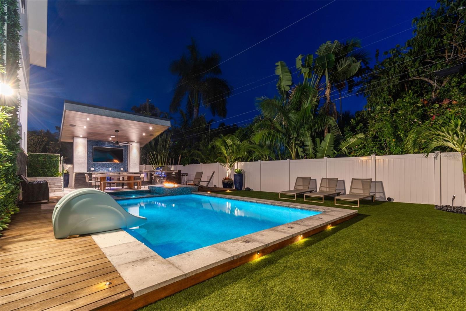 Esta deslumbrante casa de São Petersburgo construída sob medida para 2020 apresenta um artesanato incomparável que combina perfeitamente confortos modernos com charme, design e funcionalidade atemporais. Ao entrar na casa, você notará o lindo piso de madeira maciça por toda parte. À sua esquerda existe uma entrada para dois quartos e uma casa de banho completa. A luxuosa vida no primeiro andar oferece uma planta de conceito aberto com embutidos de designer perto da entrada, bem como a parede da sala de estar. As portas duplas abrem totalmente para combinar os espaços internos e externos. Ao lado da sala encontra-se um terceiro quarto – que pode ser um escritório ou arrumos – e outra casa de banho completa que funciona convenientemente como banheira de piscina. O chef da casa irá desfrutar da cozinha gourmet com armários brancos, bancadas de quartzito, fogão a gás Wolf de 6 bocas com chapa e forno duplo completo, Vent-A-Hood de aço inoxidável, ilha de cozinha de quartzito de esquadria grande com armários de armazenamento em ambos laterais, geladeira Sub-Zero de aço inoxidável com porta de vidro, adega refrigerada, lava-louças duplas e despensa. A lavanderia tem muitos armários, pia e lavadora e secadora dupla. A área de jantar é espaçosa, com uma cristaleira embutida e muita luz solar. Uma vez lá em cima você ficará surpreso com os recursos que apenas a moldura convencional oferece. As águas-furtadas adicionam personalidade a cada canto. No topo da escada existe um espaço de escritório embutido com um grande armário de escritório. O loft aconchegante tem um aparador e prateleiras flutuantes e o teto apresenta vigas de madeira recuperada. Há um lavabo no segundo nível. O quarto principal tem uma área de estar embutida, outra adega refrigerada e tratamentos de teto. O primeiro closet é grande o suficiente para um espaço de treino e o outro armário inclui um cofre. O luxuoso banheiro principal possui chuveiro com azulejos de vidro com 5 pulverizadores, vaso sanitário de vidro fosco, banheira de imersão, TV e uma grande pia dupla. Um segundo quarto no andar de cima irá impressioná-lo com tratamentos de teto, banheiro privativo e um quarto escondido que é o sonho de uma criança, com mesa embutida, parede com quadro-negro e TV. Indo para o quintal você entrará no pátio com uma tela retrátil motorizada com vistas tranquilas de seu incrível espaço ao ar livre. O quintal foi projetado pelo premiado designer internacional de piscinas Ryan Hughes Design. A grade de vidro transparente leva você até a espetacular piscina aquecida de água salgada com spa e lareira a gás. Este oásis ao ar livre inclui um pórtico cantilever projetado sob medida sobre a cozinha externa bem equipada e o bar com espaço para refeições adicional e TV externa. Atualizações adicionais incluem grama artificial, estação de ovo verde, aquecedor de água sem tanque, parede de organização para acessórios de piscina, conjunto infantil, putting green e gerador para toda a casa. Além disso, o sistema Savant de casa inteligente controla áudio/visual e segurança por meio de um aplicativo em seu telefone. A garagem alta para dois carros tem uma unidade de ar condicionado separada, dois aquecedores de água sem tanque, bem como um segundo nível para armazenamento e vários elevadores de armazenamento em controle remoto, armários de armazenamento e parede para bicicletas. A poucos minutos do centro de São Petersburgo e da Beach Drive para compras, restaurantes, museus, o St. Pete Pier, com fácil acesso à I-275 e às praias. Esta é a casa que você estava esperando!