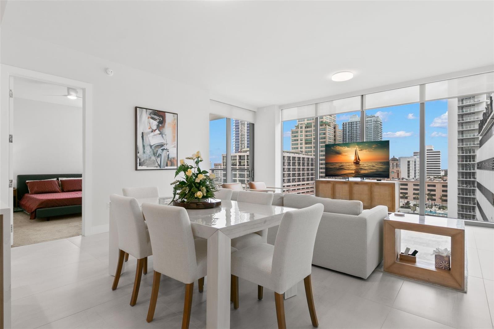 Uma das poucas unidades deste prédio com 3 quartos nesta faixa de preço. Condomínio de esquina totalmente mobiliado (opcional) no 12º andar no belo edifício moderno de Saltaire, no vibrante centro de St Pete. O proprietário não morou nele e nunca foi alugado. Curta caminhada até restaurantes, museus, estádio Rowdy e cais. Prédio seguro com portaria 24 horas. entrada fabulosa para o edifício, bem como estacionamento. Nova construção com todos os recursos de segurança contra furacões, vidros contra furacões em todas as unidades e áreas comuns, sem danos ao edifício devido aos últimos 2 furacões. A unidade tem uma planta aberta com combinação de sala de estar/jantar/cozinha. Vista da baía do quarto principal e da sala e vista da cidade da sala e do segundo quarto. As vistas da cidade são excepcionalmente bonitas à noite, enquanto as vistas da baía são relaxantes durante o dia. O quarto principal tem armários totalmente embutidos, dele e dela. O segundo quarto também tem closet. Terceiro quarto tem armário embutido. A cozinha possui geladeira com painel, cooktop de indução, ilha com bancada de quartzo e cascata. Tratamento automatizado de janelas com persianas opacas bloqueadoras de luz em ambos os quartos e persianas translúcidas na sala. Dois quartos também possuem ventiladores de teto. O comprador tem a opção de comprá-lo totalmente mobiliado. Móveis de um ano, muito pouco usados, pois o proprietário nunca morou aqui. Piscina no 7º andar com vistas incríveis, cabanas, churrasqueiras ao ar livre. Academia de última geração, cafeteria de notícias e área social que pode ser reservada para até 50 convidados. Há muitas atividades sociais no prédio, como aulas de ioga, clube do livro e confraternizações. Saltaire é um belo edifício com construção de alta classe e preços razoáveis.