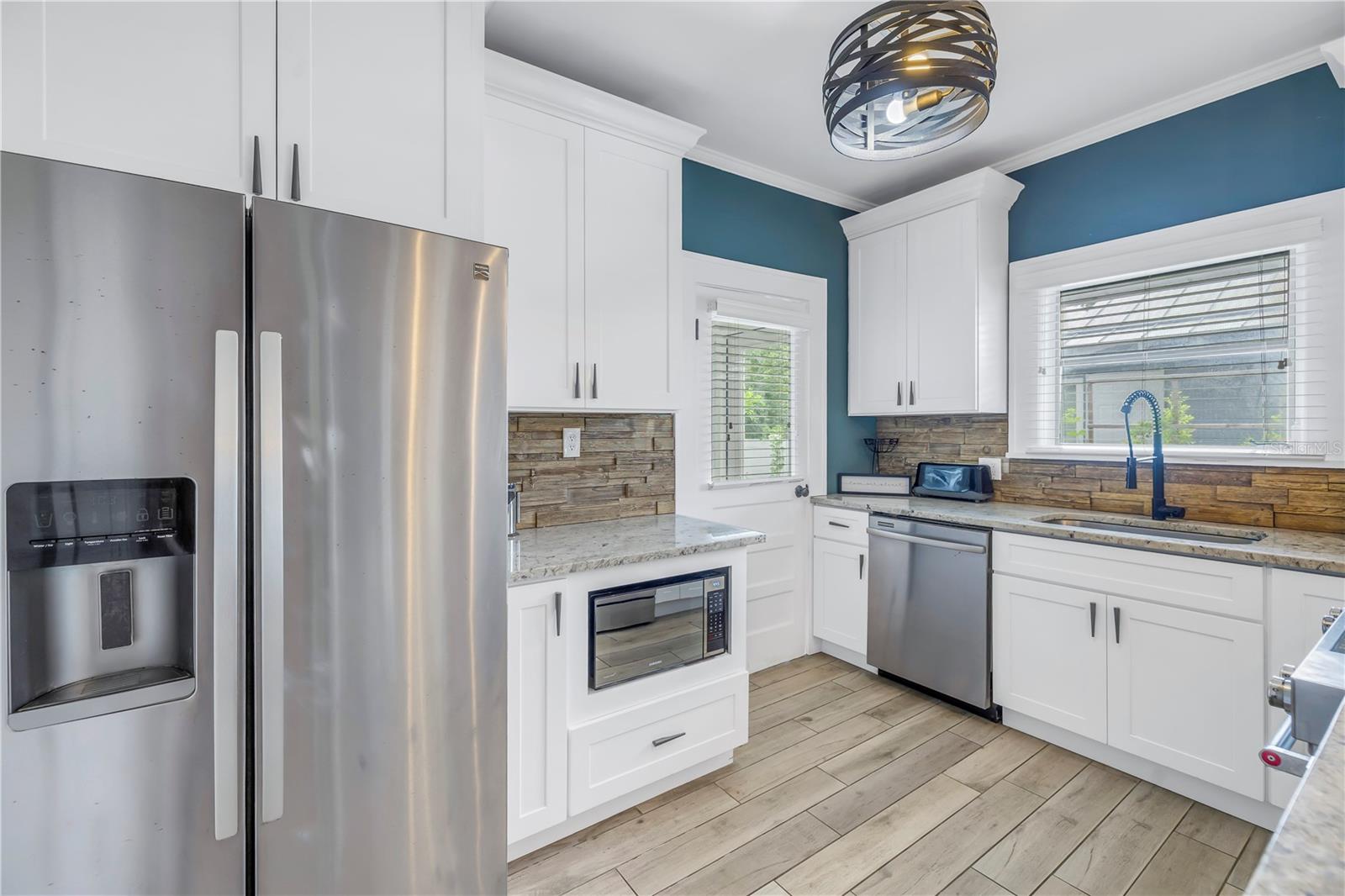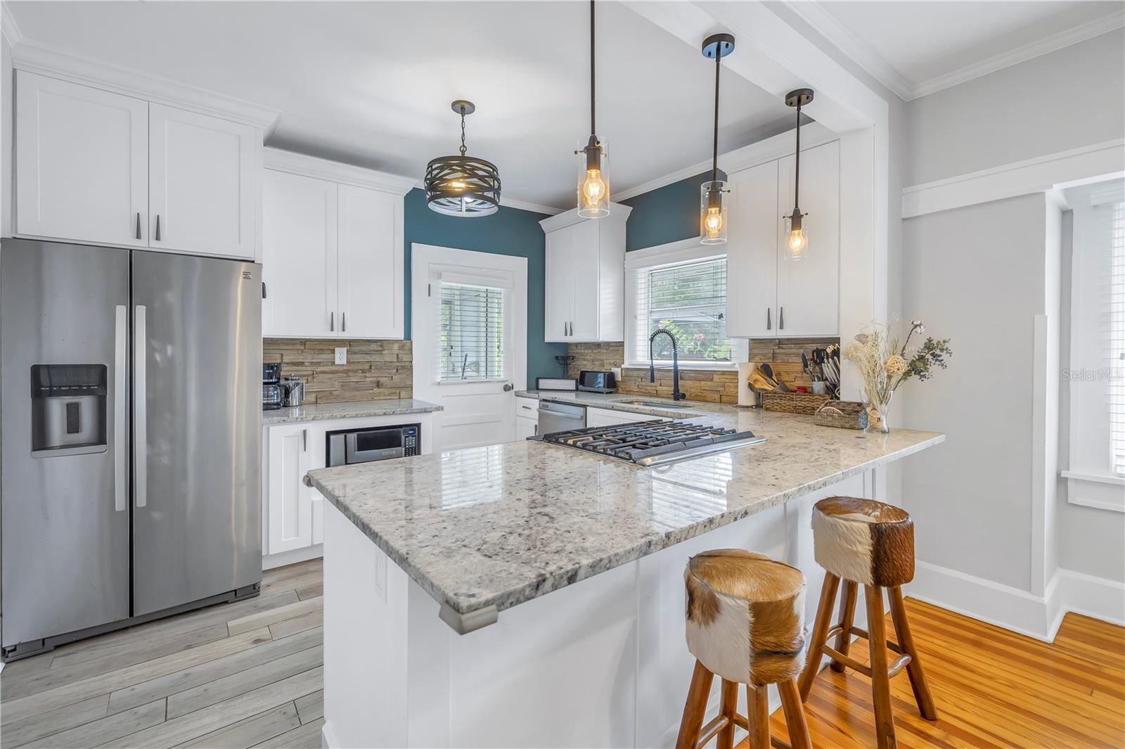 O velho bangalô do nordeste a poucos quarteirões do centro de St Pete! Este bangalô alto e seco possui três quartos, dois banheiros, plano de vida aberto e lote fantástico. Os proprietários instalaram amorosamente o paisagismo nativo da Flórida, elevou camas de plantador para flores e vegetais, pavimentadores e grande pérgola, criando um ótimo espaço para jardinagem e entretenimento ao ar livre. Entre em uma sala de azulejos da Flórida que abre um ótimo espaço para um escritório ou recanto de leitura. A sala apresenta pisos de madeira original, lareira e prateleiras embutidas originais e abre para a sala de jantar e cozinha para um conceito aberto. A cozinha foi remodelada em 2018 e possui aparelhos de aço inoxidável, incluindo uma linha de gás e comer na Península que maximiza o espaço divertido. O quarto principal possui pisos de madeira, armário embutido e banheiro privativo remodelado com grande vaidade e caminhada no chuveiro. O banheiro do Hall também foi remodelado e o quarto de hóspedes também possui pisos de madeira e ótima luz natural. Lavanderia na parte de trás da cozinha, e o terceiro quarto tem vista para o amplo quintal. A propriedade também possui uma garagem de um carro, com estacionamento adicional fora do beco. Os painéis elétricos foram atualizados há alguns anos com o circuito para conectar o gerador, ou o gerador também pode ser conectado à linha de gás natural. A apenas 4 quarteirões do centro de São Petersburgo, esta propriedade está sendo vendida fornecida com todos os móveis e produtos domésticos para conveniência do vendedor. Isso também faz uma maravilhosa oportunidade de investimento no antigo NE!