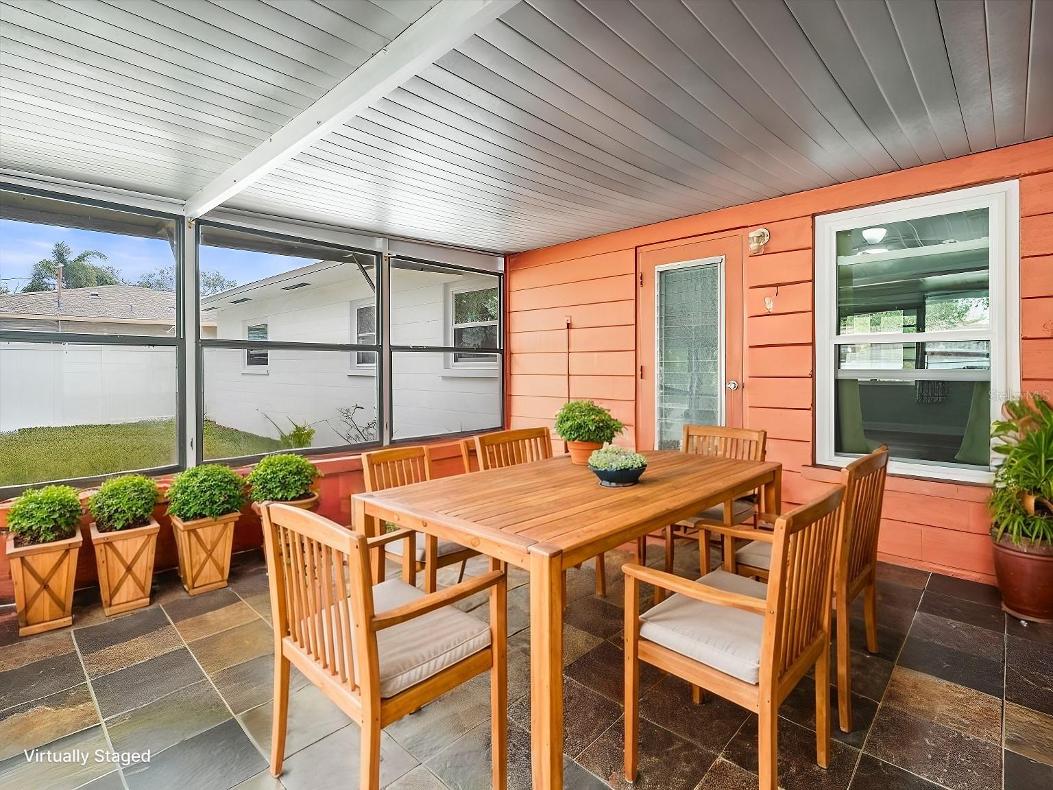 Se você está procurando uma casa de garagem de 2 quartos de 2 quartos e não inundação alta e seca que esteja no condado e permite a STR (a partir desta listagem), esta é a solução perfeita! Indenscutilizada por Milton e Helene e perfeitamente localizada perto de linhas de ônibus, compras e restaurantes, esta casa de meados do século fica a uma curta distância de carro de nossas belas praias do condado de Pinellas e tudo o que eles têm a oferecer! Na chegada, a varanda da frente está convidativa e pronta para desfrutar do nosso ensolarado clima durante todo o ano, na Flórida! Uma vez lá dentro, você notará o piso de cerejeira brasileiro radiante que fica na maior parte do espaço e a grande sala de grandes dimensões com teto dividido e janela de imagem grande para toneladas de luz natural! A sala de jantar é grande o suficiente para uma mesa/convidados e a cozinha também tem espaço para uma pequena mesa, prateleiras adicionais ou café! O quarto principal tem piso de ladrilhos de travertino com banho de banheiro com pé no chuveiro e acessórios atualizados. O corredor possui 3 armários para roupas de cama, armazenamento, etc. e adjacente é o banho de salão retrô que está em ótimas condições com uma banheira grande e chuveiro. O terceiro quarto fica fora da sala da Flórida/Lanai e é perfeito para um espaço de sogro/adolescente/ou hóspedes por causa de sua privacidade adicional. A sala da Flórida é grande com acesso ao quintal cercado com espaço para uma piscina /brinquedos /galpão- você escolhe! A garagem tem uma área de lavanderia de grandes dimensões e seria perfeita para incluir (pense em lavanderia) ou adicione um banho conectado às possibilidades intermináveis do terceiro quarto !! A partir desta listagem, esta casa está no município e permite aluguel de curto prazo/comprador do Airbnb-Verificar todas as informações sobre restrições de aluguel etc. 8 novas janelas de impacto duplo e pano foram instaladas 2024 e o teto de metal foi adicionado 2010. Perto de linhas de ônibus, compras Jantar o Hospital VA e nossas dez melhores praias!