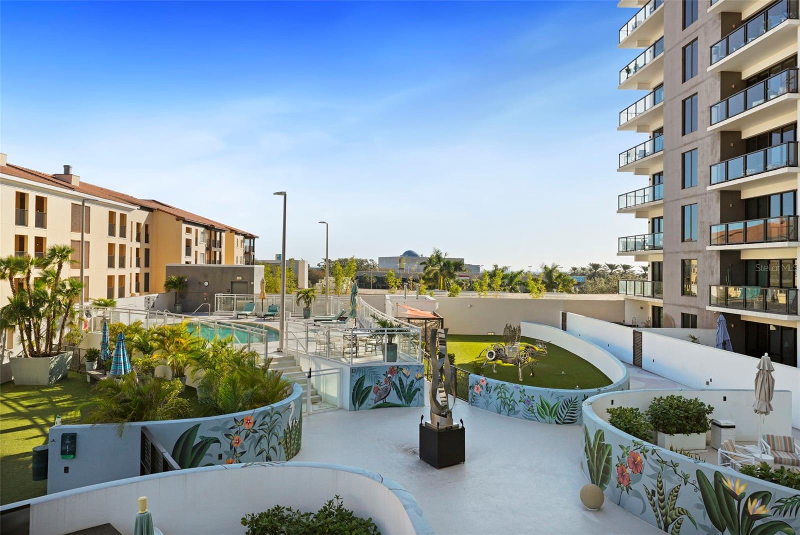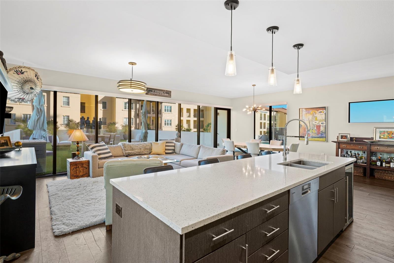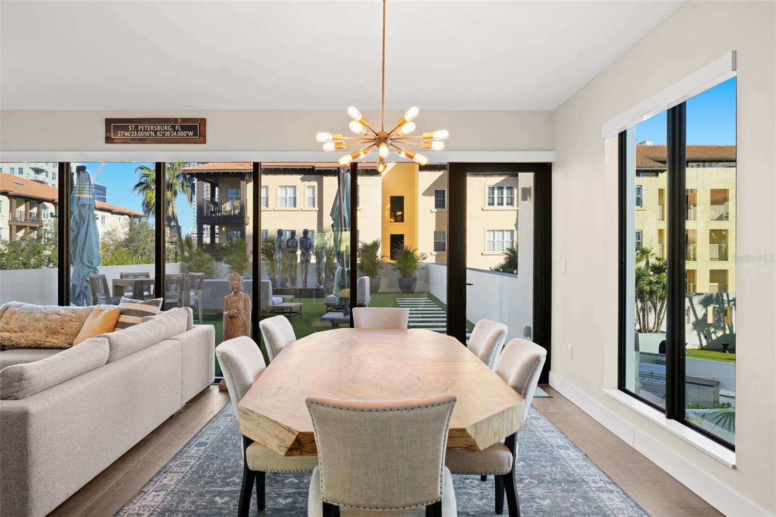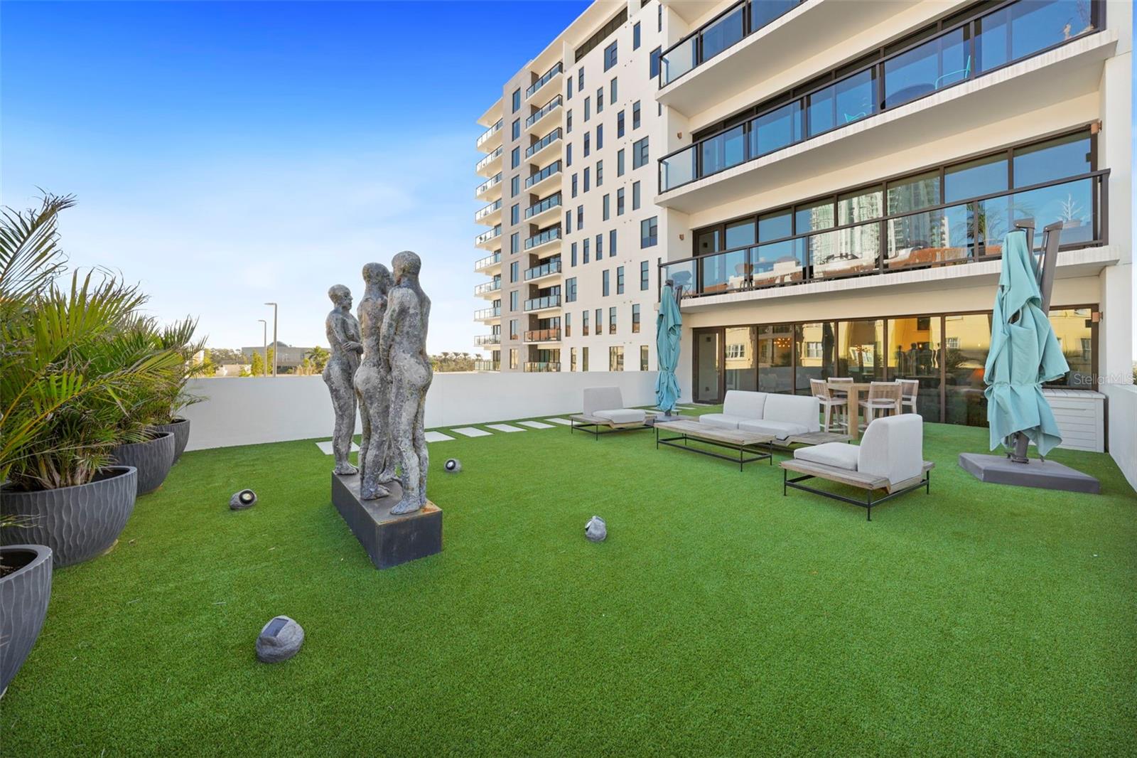 *** O único condomínio *** Esta casa oferece uma oportunidade muito especial, a facilidade do condomínio metropolitano que vive com a sensação de um lindo quintal. Verdadeiramente único no Salvador e, talvez em todo o São Pete, esta casa oferece um terraço de mais de 1000 SF coberto de grama artificial feita com tecnologia refletora de calor, fornecendo uma área fresca e sem manutenção para refeições e relaxamento ao ar livre. O terraço tem vista para o deck de comodidades do terceiro andar, no centro da cidade, o Museu Dali e a Baía de Tampa. Um piso plano aberto com cozinha, jantar e salas de estar, com vista para o terraço pelas janelas do chão ao teto, oferecem um espaço mais elegante para entreter, dentro e fora de portas. Este condomínio sai do restante do edifício e, portanto, não possui unidades adjacentes ao lado, fornecendo o máximo em privacidade. Os pisos de madeira projetada fluem ao longo dos 1555sf desta casa. Uma cozinha grande, aberta e contemporânea, com bancadas de quartzo, aparelhos de Bosch, faixa de gás e refrigerador de vinho tem luz natural abundante. A sala de estar possui um centro de entretenimento embutido com um refrigerador de bebidas adicional e persianas motorizadas. O quarto principal com um closet de grandes dimensões é suite com uma banheira de imersão profunda, pias duplas e chuveiro grande. O banho de hóspedes tem uma banheira/chuveiro com porta de chuveiro e os dois quartos têm janelas altas com tons de blecaute. A casa possui dois lugares de estacionamento e uma unidade de armazenamento controlada pelo clima. O Salvador, um edifício de unidade Green 74 Certified Green Certified possui grandes comodidades em uma piscina, spa, centro de fitness de ponta, sala social, estação de grelhar, parque de cães com estação de lavagem de cães, jardim de esculturas e área de fogueira ao ar livre. O gerenciamento de concierge e no local são recursos convenientes para os proprietários. Todos localizados em fácil acesso a todas as ofertas do centro da cidade e, no entanto, localizadas em uma parte tranquila da cidade quando você está pronto para acabar. Ligue para o seu tour privado nesta casa requintada e única.