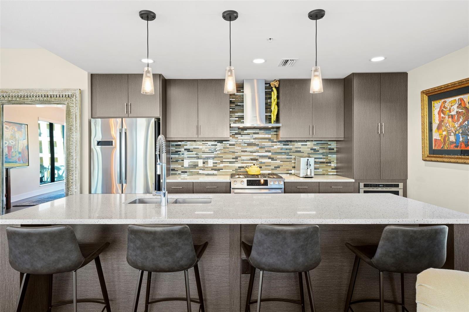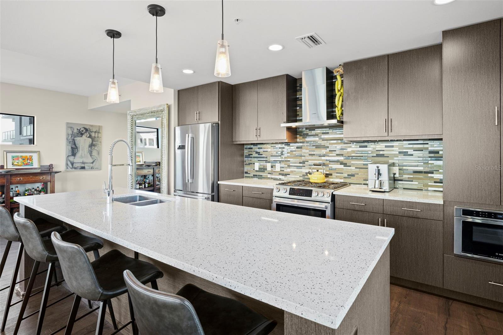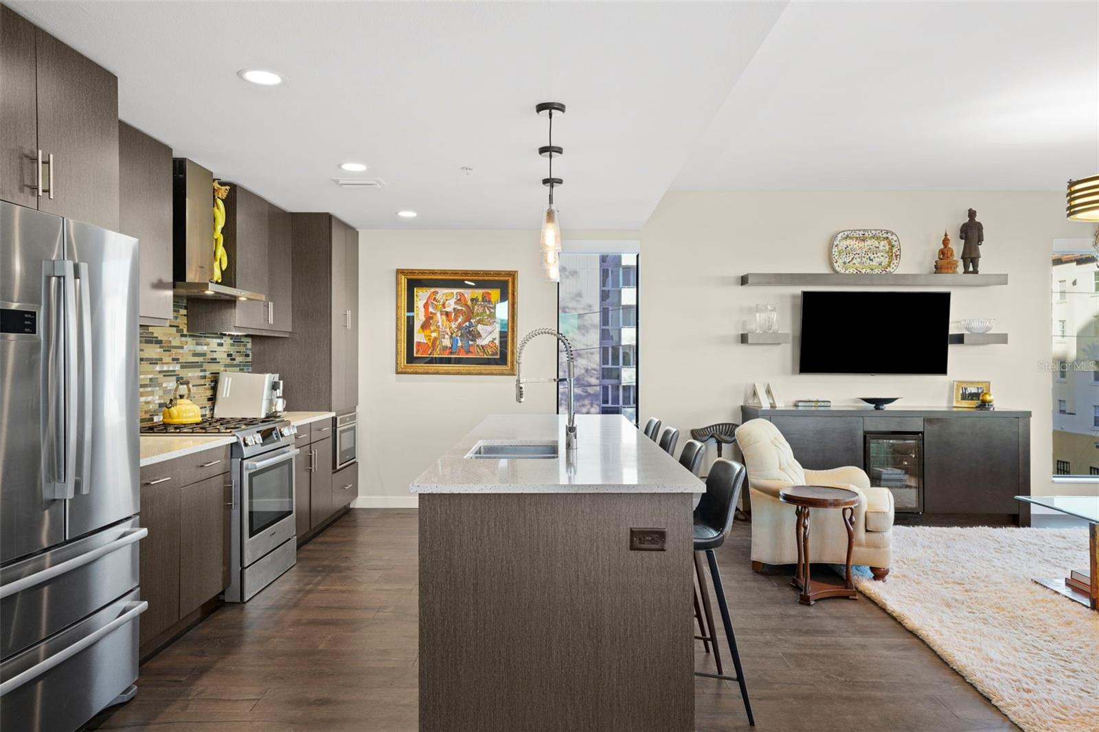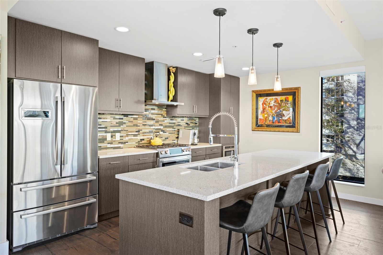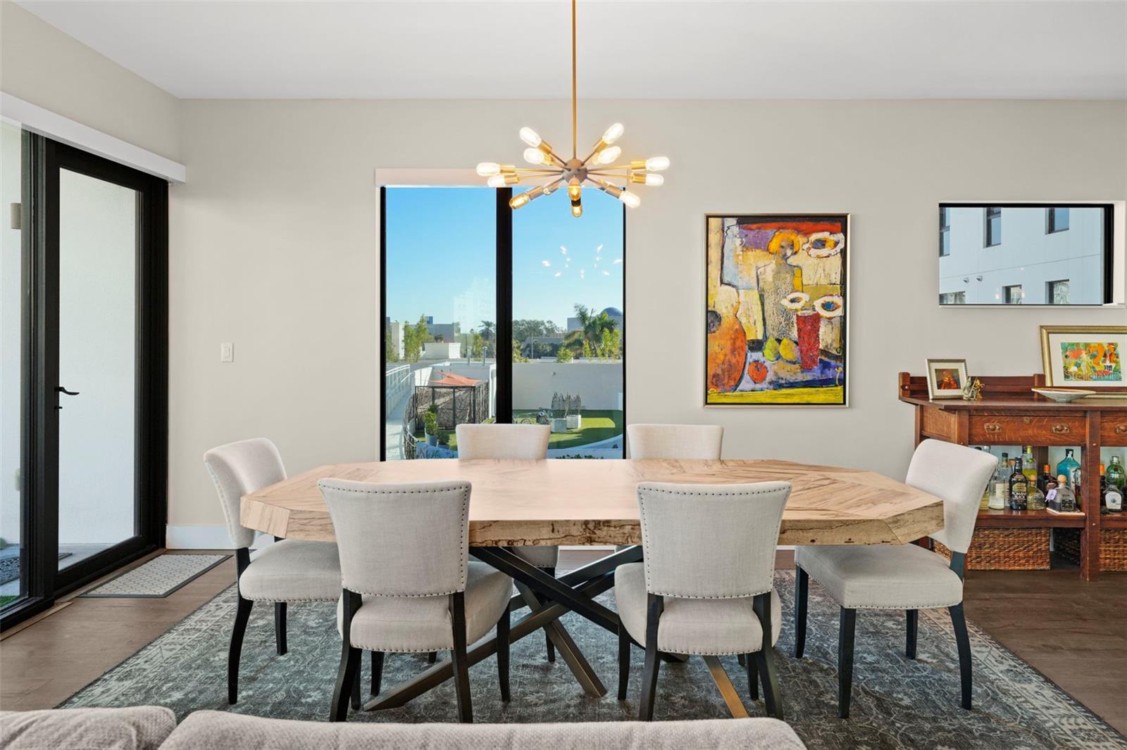 *** O único condomínio *** Esta casa oferece uma oportunidade muito especial, a facilidade do condomínio metropolitano que vive com a sensação de um lindo quintal. Verdadeiramente único no Salvador e, talvez em todo o São Pete, esta casa oferece um terraço de mais de 1000 SF coberto de grama artificial feita com tecnologia refletora de calor, fornecendo uma área fresca e sem manutenção para refeições e relaxamento ao ar livre. O terraço tem vista para o deck de comodidades do terceiro andar, no centro da cidade, o Museu Dali e a Baía de Tampa. Um piso plano aberto com cozinha, jantar e salas de estar, com vista para o terraço pelas janelas do chão ao teto, oferecem um espaço mais elegante para entreter, dentro e fora de portas. Este condomínio sai do restante do edifício e, portanto, não possui unidades adjacentes ao lado, fornecendo o máximo em privacidade. Os pisos de madeira projetada fluem ao longo dos 1555sf desta casa. Uma cozinha grande, aberta e contemporânea, com bancadas de quartzo, aparelhos de Bosch, faixa de gás e refrigerador de vinho tem luz natural abundante. A sala de estar possui um centro de entretenimento embutido com um refrigerador de bebidas adicional e persianas motorizadas. O quarto principal com um closet de grandes dimensões é suite com uma banheira de imersão profunda, pias duplas e chuveiro grande. O banho de hóspedes tem uma banheira/chuveiro com porta de chuveiro e os dois quartos têm janelas altas com tons de blecaute. A casa possui dois lugares de estacionamento e uma unidade de armazenamento controlada pelo clima. O Salvador, um edifício de unidade Green 74 Certified Green Certified possui grandes comodidades em uma piscina, spa, centro de fitness de ponta, sala social, estação de grelhar, parque de cães com estação de lavagem de cães, jardim de esculturas e área de fogueira ao ar livre. O gerenciamento de concierge e no local são recursos convenientes para os proprietários. Todos localizados em fácil acesso a todas as ofertas do centro da cidade e, no entanto, localizadas em uma parte tranquila da cidade quando você está pronto para acabar. Ligue para o seu tour privado nesta casa requintada e única.