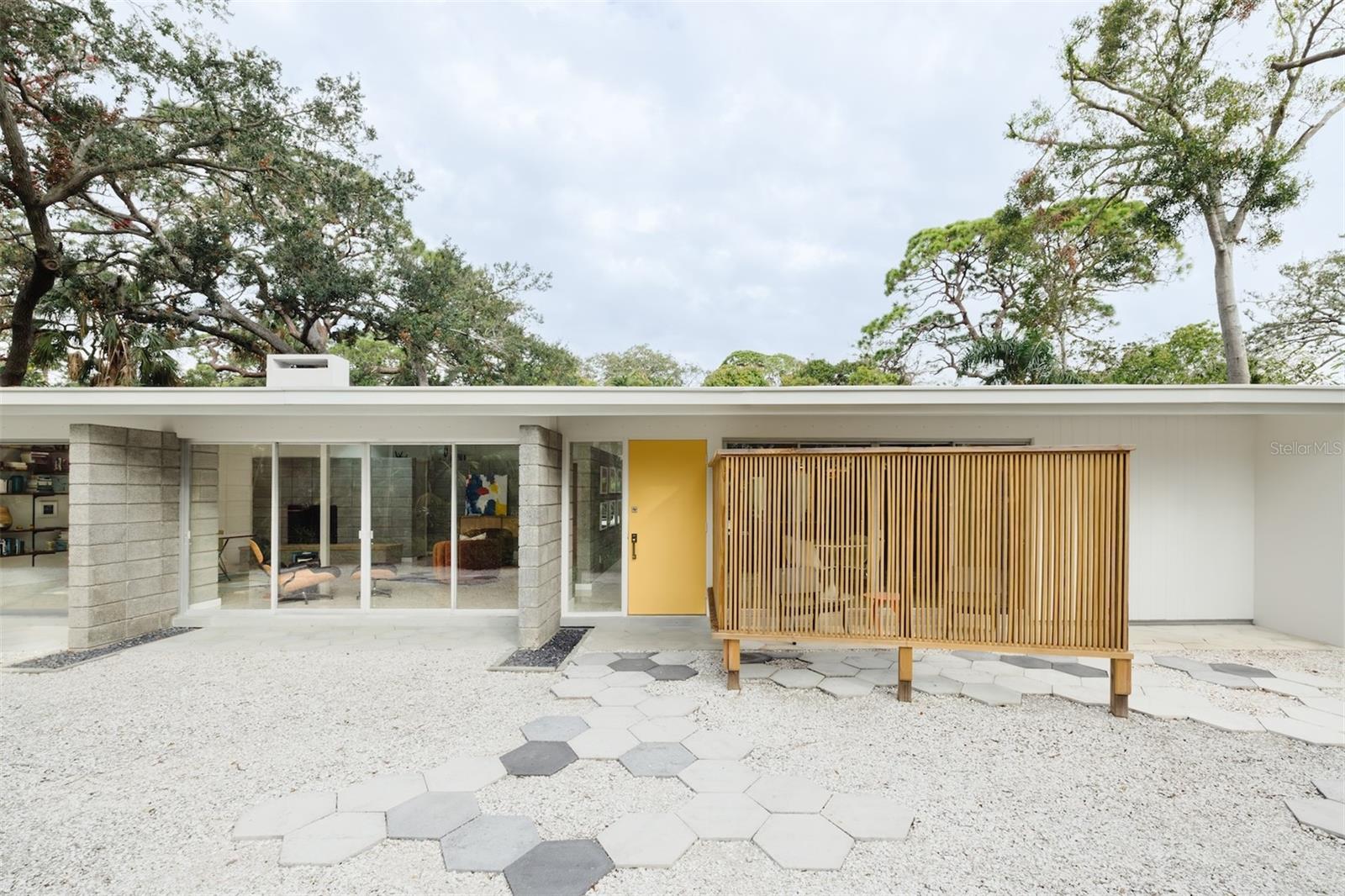Aninhado em Bayou Bonita, este raro oásis privado mostra o brilho da arquitetura de meados do século, projetada pelo renomado arquiteto de São Petersburgo William B. Harvard, Sr., apresentado na revista Atomic Ranch, a propriedade está situada em um litoral de tampa. Um testemunho do design visionário de Harvard, esta casa do MCM é cuidadosamente reformada para aprimorar seus elementos arquitetônicos e conceitos de vida interna/externa sem costura. Esta casa não experimentou nenhuma inundação das duas tempestades passadas. Pisos originais de terrazzo e armários de cozinha de nogueira recém -projetados com armários artesanais que acenam para a época. A luz natural derrama nos 3.260 pés quadrados de espaços amplos de convivência através de janelas e clarabóias do chão ao teto, acentuando os divisores originais da sala de estar de concreto e lareira aconchegante. A beleza se desenrola nos detalhes, evidente nas persianas verticais personalizadas de bétula no quarto, banheiro de azulejo rosa personalizado projetado por Walker Zanger, as icônicas pavimentadoras de São Petersburgo que alinham o pátio com cercas de madeira de cedro natural. A enorme área de estar/jantar aberta se estende a um paraíso tropical em torno da piscina 18x36. Um plantador de concreto com um grande carvalho fornece assentos adicionais e evoca um design japonês semelhante ao zen, oferecendo uma atmosfera e sombra tranquilas para os dias de verão na piscina. O jardim privado oferece caminhos pacíficos sob o suave oscilante das palmeiras da Flórida, um mirante selecionado para retiros tranquilos da manhã, viu palmettos com artes com artes por toda parte e uma fogueira perfeita para entreter e hospedar festas ao ar livre durante as noites de inverno. Explore este santuário oculto da Old Florida, oferecendo uma oportunidade única de possuir seu refúgio nos arredores do centro da cidade, com uma mistura perfeita de serenidade, toques modernos, design atemporal e rica história.