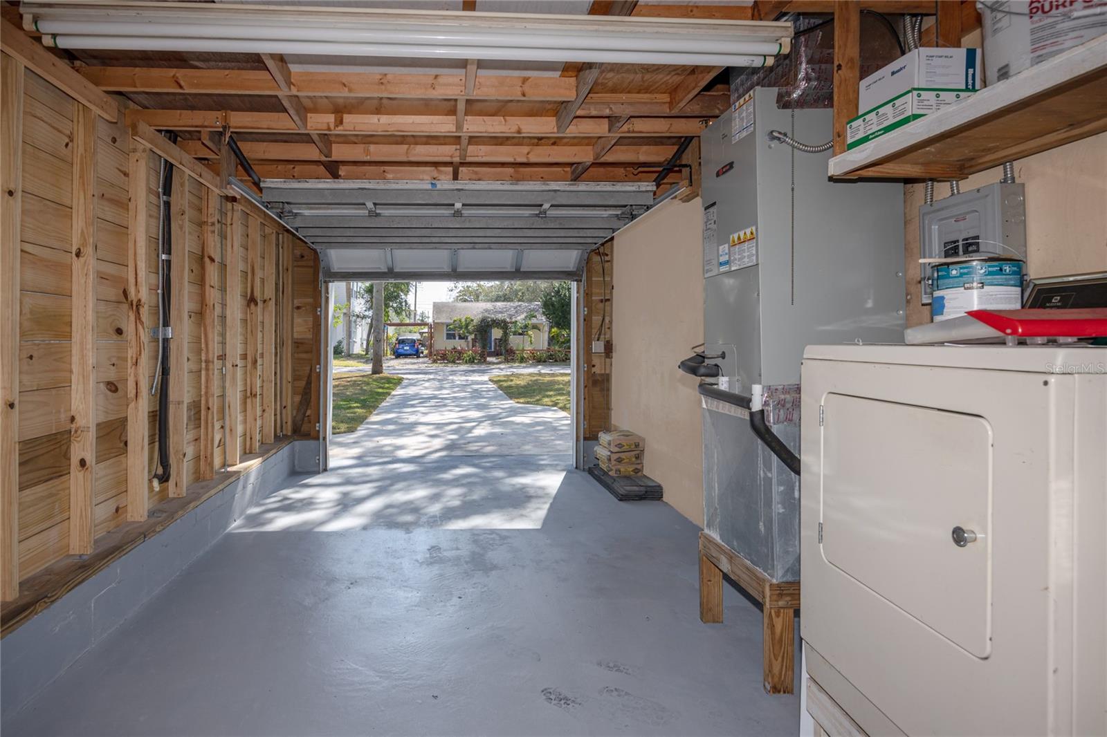Acesso ao beco, designado, coberto, garagem, estação de carregamento de veículos elétricos, convidado, fora da rua, na rua