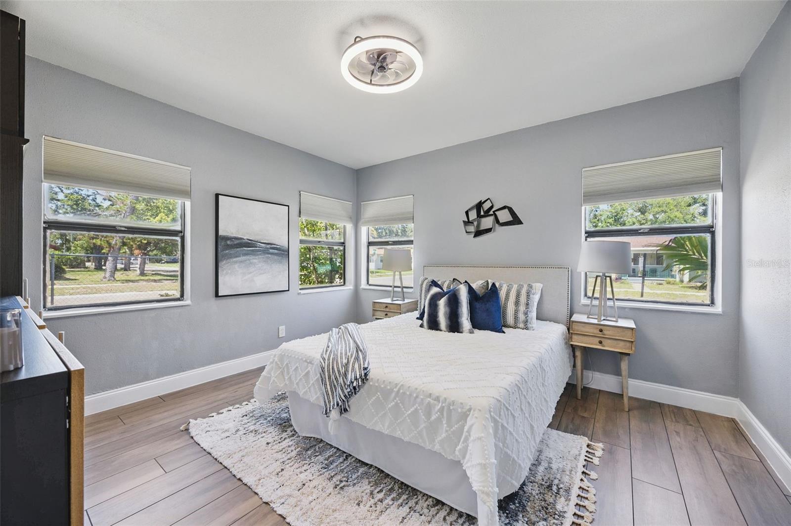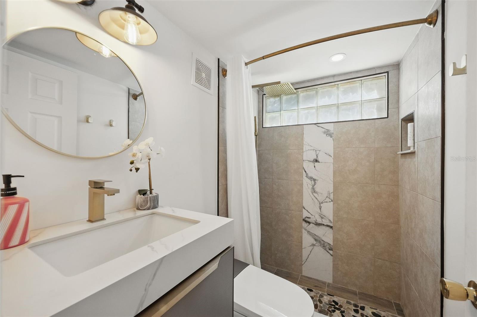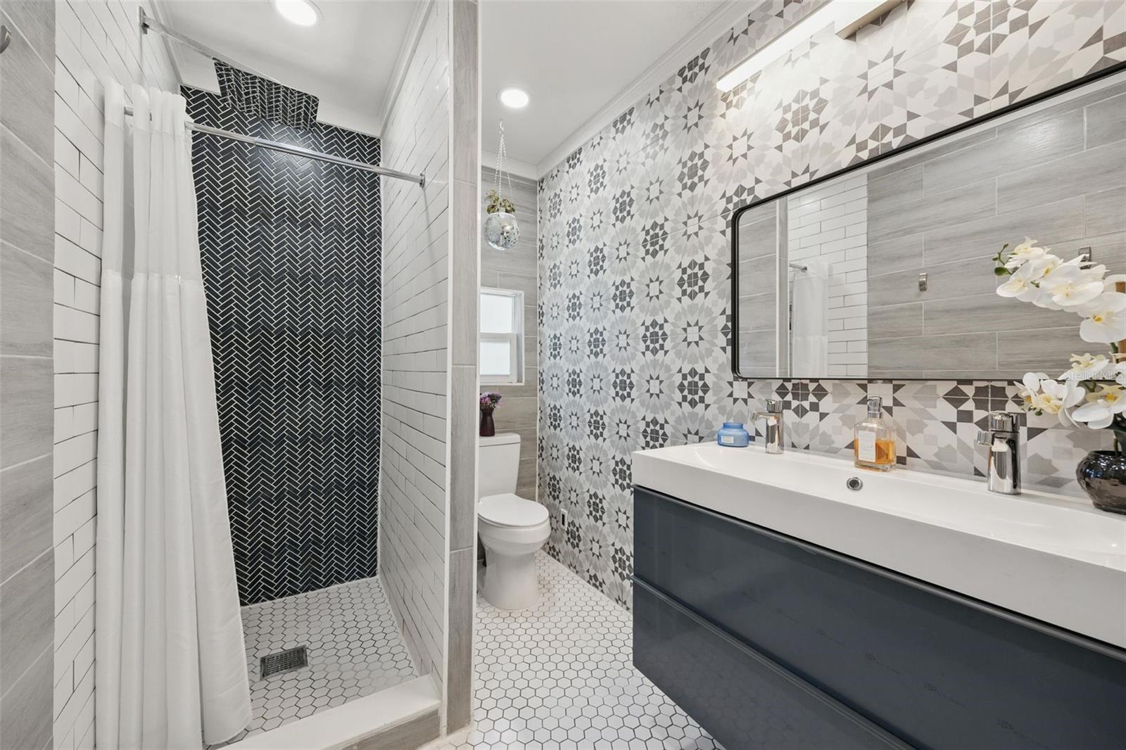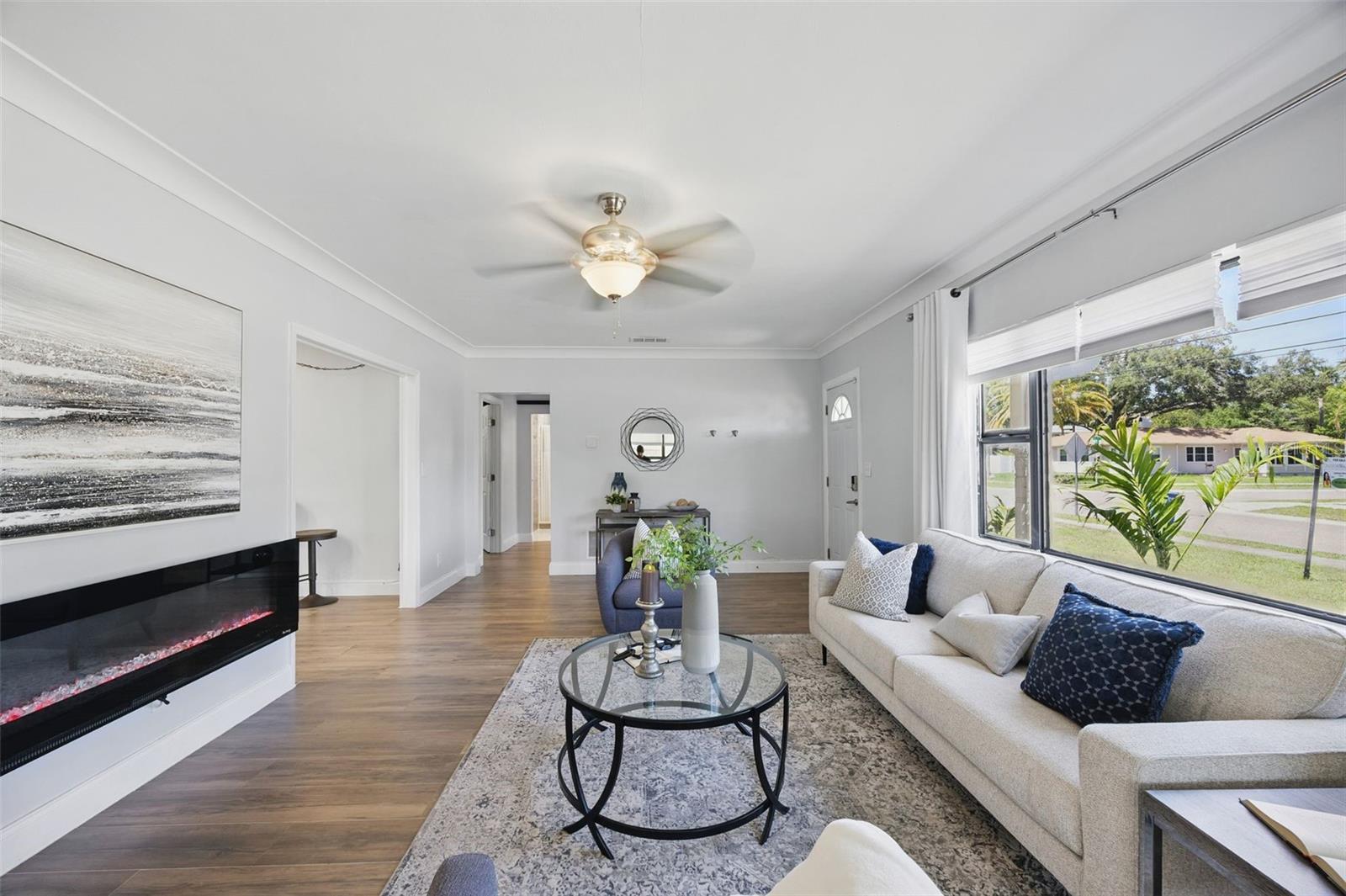 Sem zona de inundação - sem danos! Com uma sala de bônus, deve ver. O bangalô encantador da Flórida com suíte privado de sogro em um grande lote de canto. Airbnb amigável! Maior do que parece-esta casa atualizada de 3 leitos e 2 banheiros possui um layout espaçoso, pisos de porcelana (2023) e armários personalizados. Os banheiros são totalmente reformados com chuveiro, ladrilhos de metrô e acabamentos sofisticados. A cozinha possui bancadas em cachoeira em granito, fogão Bosch e aparelhos Frigidaire. As portas de vidro levam a um grande quintal com um novo galpão de tuff com classificação de furacões. Extras: Tinta fresca por toda parte Novo duto hvac + sótão Sistema de remediação de molde (ARS) Combo LG Washer/Secer Entrada sem chave, Amust, veja!