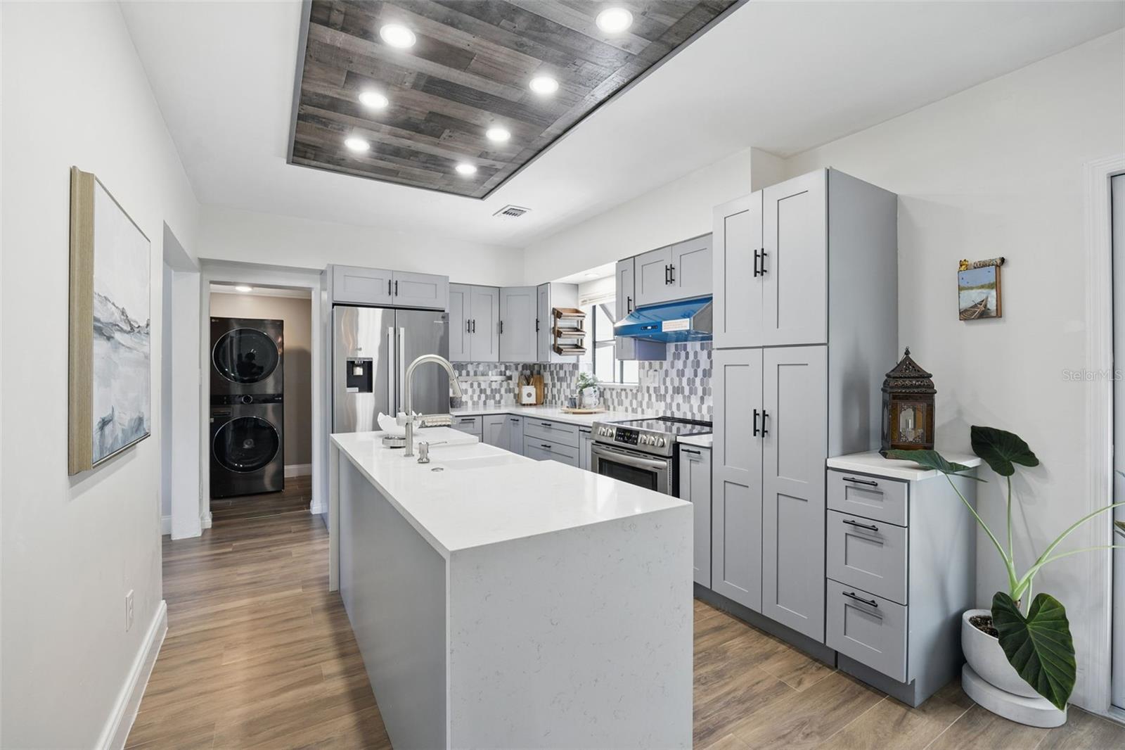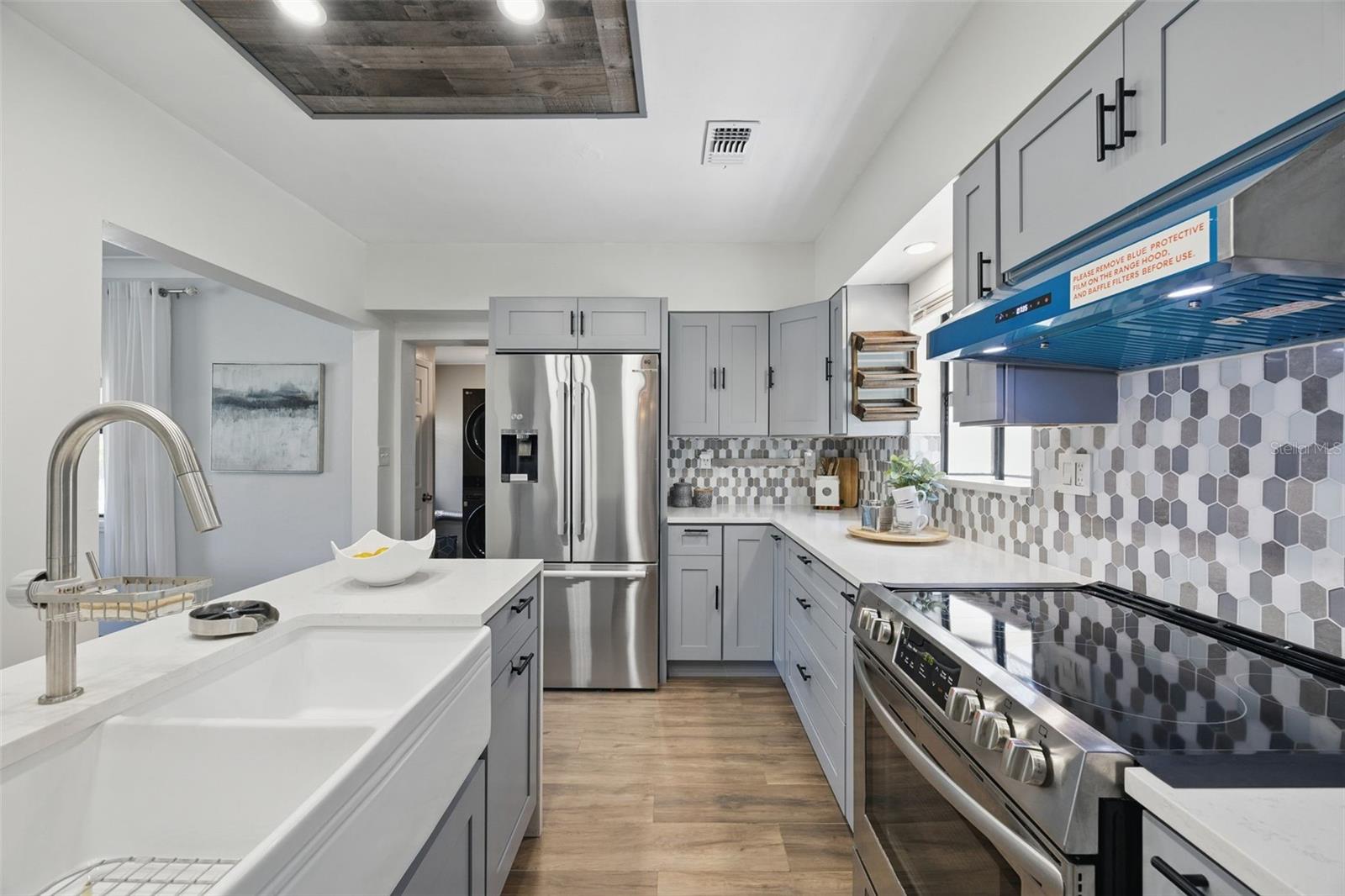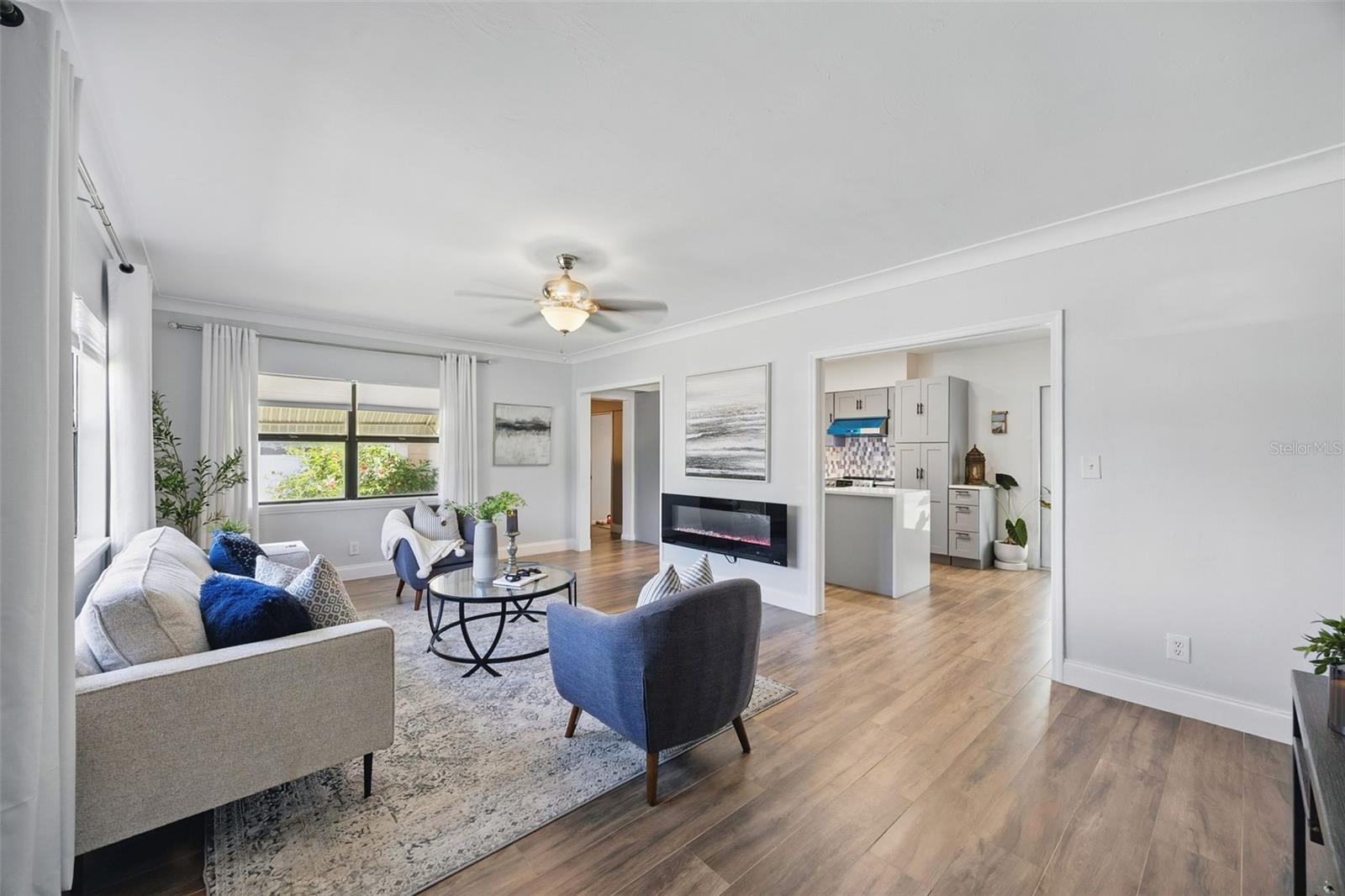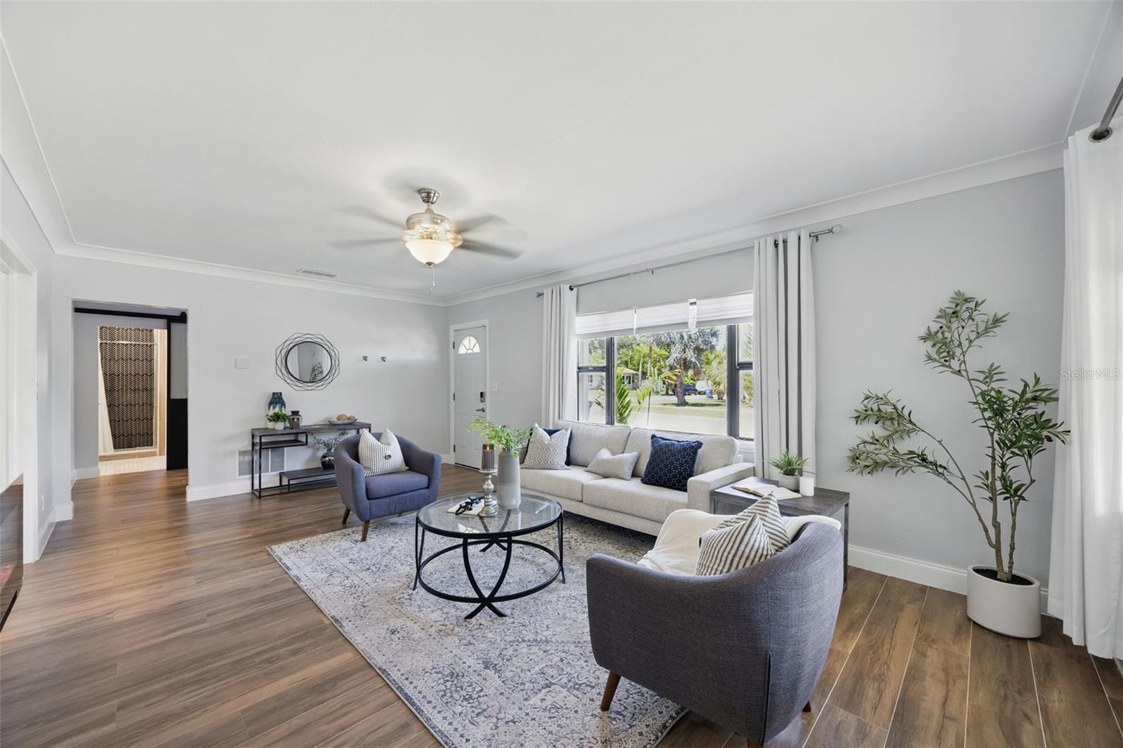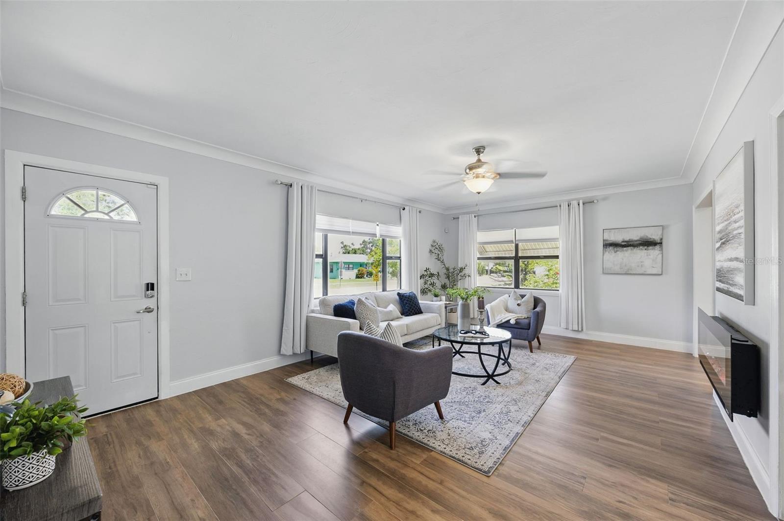 Sem zona de inundação - sem danos! Com uma sala de bônus, deve ver. O bangalô encantador da Flórida com suíte privado de sogro em um grande lote de canto. Airbnb amigável! Maior do que parece-esta casa atualizada de 3 leitos e 2 banheiros possui um layout espaçoso, pisos de porcelana (2023) e armários personalizados. Os banheiros são totalmente reformados com chuveiro, ladrilhos de metrô e acabamentos sofisticados. A cozinha possui bancadas em cachoeira em granito, fogão Bosch e aparelhos Frigidaire. As portas de vidro levam a um grande quintal com um novo galpão de tuff com classificação de furacões. Extras: Tinta fresca por toda parte Novo duto hvac + sótão Sistema de remediação de molde (ARS) Combo LG Washer/Secer Entrada sem chave, Amust, veja!