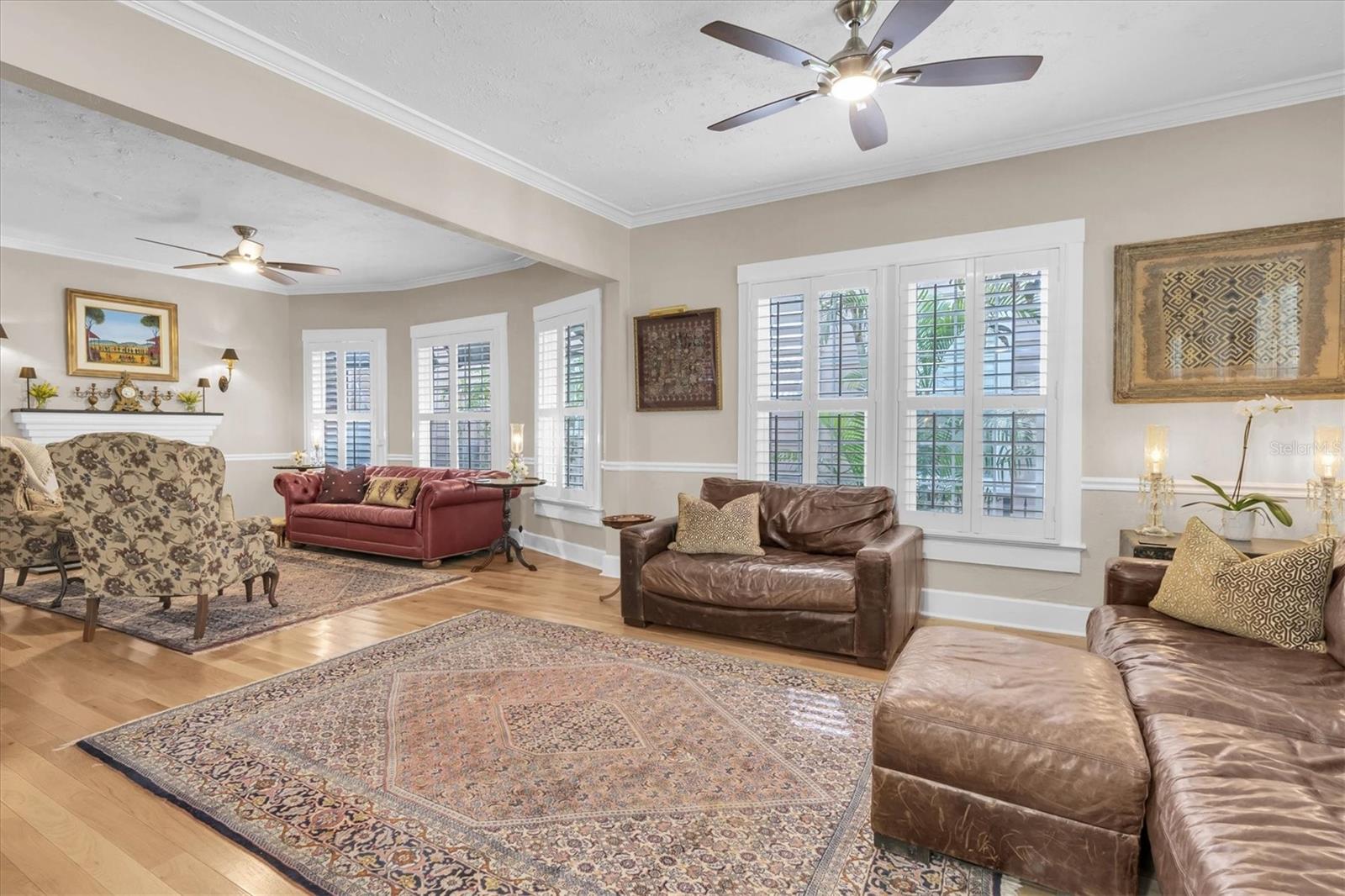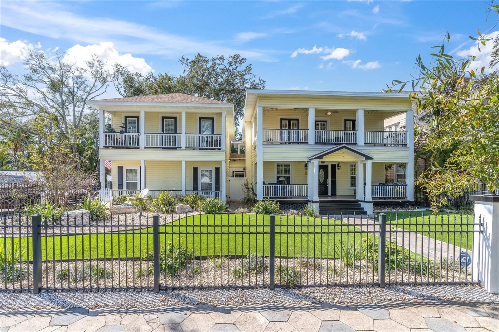 Esta beleza de estilo colonial de 1905 é um achado raro em nosso cobiçado velho nordeste: lote duplo; A uma curta distância do centro; Estacionamento fora da rua para 6 carros; PISCINA; Garagem de 2 carros; Apartamento legal de garagem; Frente e costas cercadas. Oferece 6 quartos e 5 banheiros, incluindo o apartamento da garagem. Construído em conjunto com o icônico Hotel Vinoy, esta casa combina charme de período com comodidades modernas e oferece ao comprador discriminador a oportunidade de possuir uma peça de história arquitetônica. Ao entrar no portão de ferro forjado, você notará o apelo do meio-fio da casa. A varanda da frente pode ser facilmente apresentada em um anúncio da Southern Living! Upon entering, you are greeted by new Hardwood Floors, 7 3/4" Antique Baseboards, Crown Molding, Arched Doorways, Plantation Shutters, and a Wood-burning Fireplace in the spacious, inviting Living Room. The adjacent Den leads to a functional Updated Kitchen that would delight any Chef with copious Oak Cabinets, Granite, commercial Thermador Gas Stove with Grill, Double Appliances, 2 Pantries, and a Wet Barra de costas da cozinha, você encontrará uma área de alimentação agradável com uma janela de sacada e uma 2ª escada que pode ser convertida em um elevador. A varanda, com vista para a torre de Vinoy. Uma piscina de água salgada de 10 pés de profundidade (2018). Tower e Railing de escada reforçada que pode acomodar um elevador de cadeira. Anos.