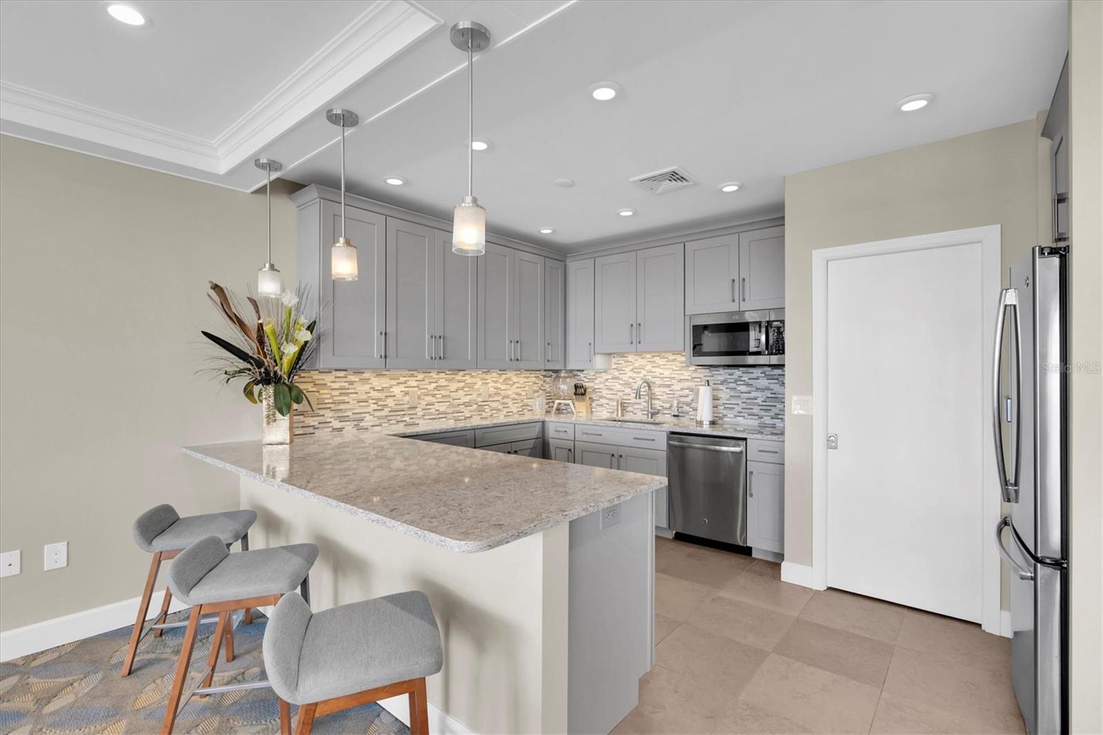Entre em sofisticado no centro da cidade! Desde o momento em que você caminha pelas portas de Harbor Hill, você sentirá o charme atemporal deste tesouro de meados do século, agora lindamente atualizado para a vida moderna. O elegante lobby e a entrada da Grand Beach Drive deram o tom para a elegância sem esforço, enquanto estacionamento de garagem garantido e armazenamento privado adicionam conveniência diária. No interior, esta unidade de 1 quarto cheia de luz 1 recebe você com um piso plano aberto, piso de grife e portas de correr triplas, levando a uma varanda espaçosa e sombreada-seu local perfeito para apreciar a vibrante paisagem da cidade. A cozinha elegante e atualizada é um sonho, com balcões de granito, armários brancos personalizados, iluminação macia sub-cabinete e uma barra de café da manhã com detalhes chiques. Aparelhos de aço inoxidável Bosch de ponta, incluindo um forno de convecção com gaveta de aquecimento, geladeira embutida, máquina de lavar louça ultra-quieta e um capuz da Faber Range, torne esse espaço tão funcional quanto bonito. A suíte principal é o seu retiro pessoal, completo com uma parede de sotaque de declaração, janela de imagem grande mostrando vistas da cidade e um closet totalmente personalizado. O banheiro inspirado no spa é luxuoso, oferecendo uma vaidade flutuante com balcões de granito, ladrilhos de porcelana elegantes e um chuveiro de walk-in com vidro. Harbor Hill oferece um estilo de vida excepcional com sua sala de porto recém -renovada e terraço de tirar o fôlego, onde você absorve vistas panorâmicas do Vinoy, Tampa Bay, The Pier e o deslumbrante horizonte de St. Pete. Esta comunidade exclusiva de mais de 55 anos oferece uma localização tranquila, mas central - apenas a dois quarteirões das melhores compras e restaurantes da Beach Drive. Sem animais de estimação, por favor. O retiro do seu sonho no centro da cidade está esperando - vamos fazer o seu!
