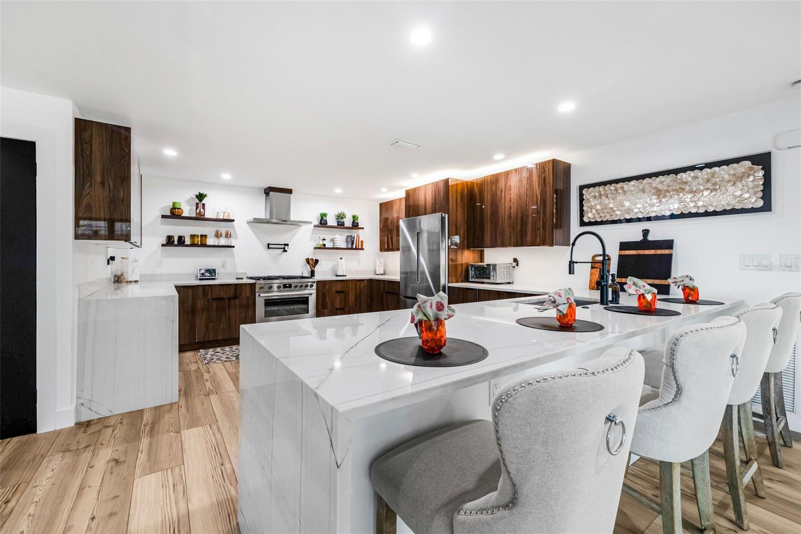 Magnífica casa com piscina à beira-mar pronta para morar. ALTO E SECO, NUNCA INUNDOU. Esta é uma daquelas casas com agulha no palheiro que está no topo da lista de verificação de todos os compradores, mas muitas vezes parece evasiva. Desde o início, cada detalhe dentro e fora da casa foi cuidadosamente reimaginado para acomodar até as necessidades mais exigentes. No momento em que você entra neste retiro moderno pela porta da frente personalizada, será impossível resistir ao seu apelo. Vistas deslumbrantes da água se desdobram diante de você em todos os cantos da residência, enquanto o novo e elegante piso proporciona um fluxo contínuo de cômodo em cômodo, elevando a sensação personalizada da casa. É importante notar que o espaço de convivência do conceito aberto da casa não foi comprometido por uma conversão desarticulada do pátio, com degraus desajeitados e vigas de teto feias. Desfrute de uma vida livre de manutenção com um telhado de metal mais recente (2022), HVAC mais recente (2022), aquecedor de água mais recente, janelas e controles deslizantes de impacto totalmente novos (2024), eletricidade e encanamento atualizados e uma cozinha e banheiros totalmente renovados. Nenhuma despesa foi poupada na transformação desta casa de três quartos (3) e dois banheiros (2) em um retiro moderno deslumbrante. Perfeitamente situada em um terreno grande e elevado, esta casa oferece acesso direto ao mar aberto do Golfo e da Baía com um grande elevador de barco de 13.000 libras e uma doca composta mais recente. Quer você goste de pescar, passear pelas ilhas ou relaxar em um banco de areia local, esta propriedade oferece a flexibilidade para desfrutar de seu estilo de vida preferido à beira-mar em seu próprio quintal. A cozinha de cair o queixo apresenta armários personalizados, novos eletrodomésticos de aço inoxidável, um prático enchimento de panelas, bancadas de quartzo reluzentes com bordas dramáticas em cascata e amplo armazenamento. Esta peça de referência de padrão ouro certamente realizará seus sonhos de cozinha dignos do Instagram. O retiro do proprietário principal e o banheiro privativo foram completamente redesenhados, evocando a sensação de um resort de luxo 5 estrelas. Os destaques incluem um espaçoso closet, penteadeira personalizada e um banheiro Toto aquecido, garantindo o máximo conforto e sofisticação. Saia por meio de um dos três novos controles deslizantes de impacto até seu deck traseiro meticulosamente atualizado, perfeito para organizar reuniões memoráveis ou simplesmente relaxar na água, observando golfinhos e peixes-boi deslizarem. A área da piscina remodelada, completa com novos pavimentos, iluminação, paisagismo exuberante e uma parede elegante, oferece um cenário idílico para mergulhos noturnos e entretenimento ao ar livre. Nem um único detalhe foi esquecido na transformação desta casa no que é, até mesmo nas luxuosas paredes e tetos de textura lisa do Nível 5 e no piso da garagem com acabamento em epóxi. Localizada na acolhedora comunidade de Ponderosa Shores, outrora considerada a "joia escondida de St. Pete", esta casa fica a poucos minutos das lojas e restaurantes vibrantes do próspero centro de São Petersburgo. Passeie por este bairro adequado para carrinhos de golfe, participe do Shore Acres Holiday Golf Cart Parade ou faça um passeio panorâmico de bicicleta até o Historic Vinoy Park e Downtown St Pete ao longo da Northeast Trail. Com uma localização privilegiada, atualizações abrangentes e acabamentos luxuosos, este paraíso à beira-mar é um achado raro. Não espere - agende sua exibição privada hoje e experimente a combinação perfeita de vida luxuosa na Flórida e uma localização imbatível!