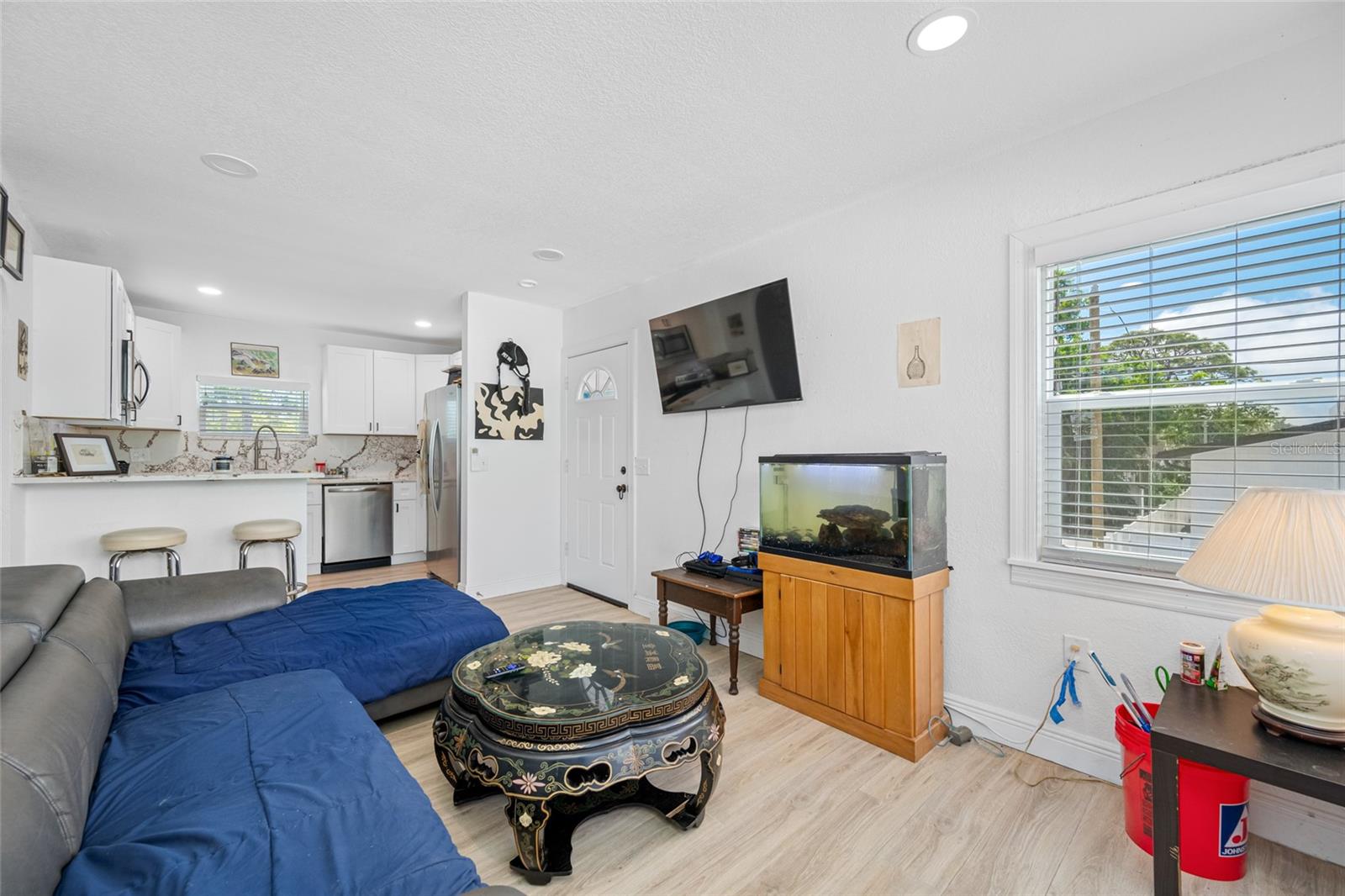 Bem -vindo a esta bela casa que oferece conforto e versatilidade! Esta casa com bom gosto renovada, com 5 quartos e 3 banheiros está situada no coração de São Petersburgo, FL em um lote duplo! Você encontrará o cenário cuidadosamente aprimorado exala o apelo do freio a partir do momento em que chegar, aumentando o fascínio dessa propriedade. Esta casa é perfeita para todas as necessidades de sua família. Ao entrar na casa, você é recebido pela bela cozinha cercada pela sala de estar e pela sala de jantar. Você encontrará aparelhos de aço inoxidável novinhos em folha, uma ilha de cozinha ao lado da lareira aconchegante, que oferece o espaço perfeito para entretenimento. Desenvolva -se com a beleza das bancadas contínuas de quartzo e backsplash. Você encontrará o quarto principal e três quartos bem equipados, proporcionando conforto e versatilidade. A suíte principal do quarto vem com um grande armário e um luxuoso banheiro privativo primário, que inclui vaidades duplas, um grande chuveiro com chuveiros duplos. Você encontrará um quarto lindamente renovado e um banho de banho acima da garagem de 2 carros, com uma cozinha luxuosa em tamanho grande, bancadas de quartzo e aparelhos de aço inoxidável. Possui uma varanda fechada e relaxante, com vistas incríveis do segundo andar. Esta unidade é perfeita como uma suíte de sogra, ideal para os hóspedes ou aluguel produtor de renda. Como uma unidade de produção de renda verdadeira, esta unidade possui uma água separada, elétrica, medidor de gás e entrada privada. No andar de baixo, você encontrará 2 espaços de garagem com acesso privado a cada espaço de garagem e podem ser usados em particular para cada unidade. A casa e a unidade da ADU têm seu próprio espaço separado e totalmente fechado para privacidade e relaxamento. Aproveite o seu quintal duplo enquanto está sentado em sua varanda fechada de 450 pés quadrados ou passe os fins de semana com a família e os amigos em seu quintal totalmente cercado, com muito espaço para correr e brincar. Não apenas esta casa está totalmente reformada, mas também vem com um novo telhado instalado em 2022, novos sistemas HVAC, aquecedores de água a gás sem tanques e novas janelas e portas em 2023! Esta casa está idealmente situada para suas necessidades diárias, a minutos de fazer compras, refeições e belas praias. Não perca a oportunidade de tornar esta linda casa a sua!