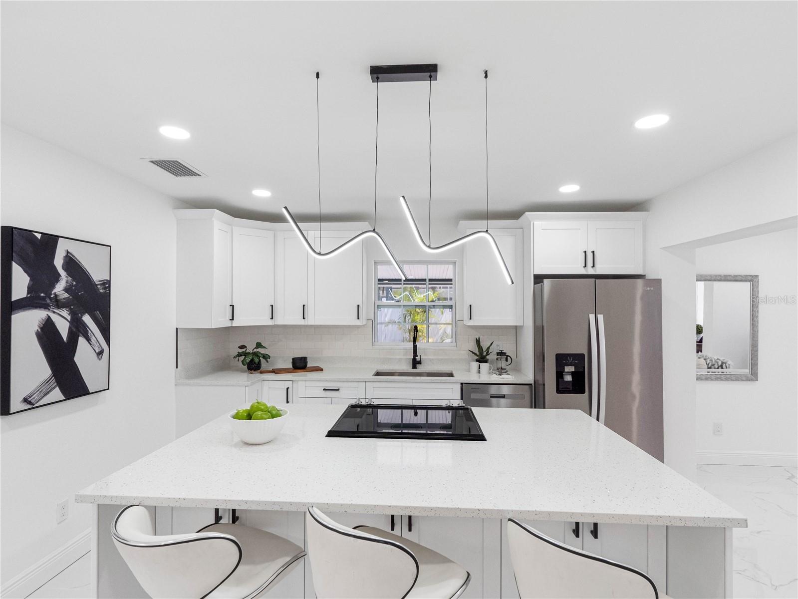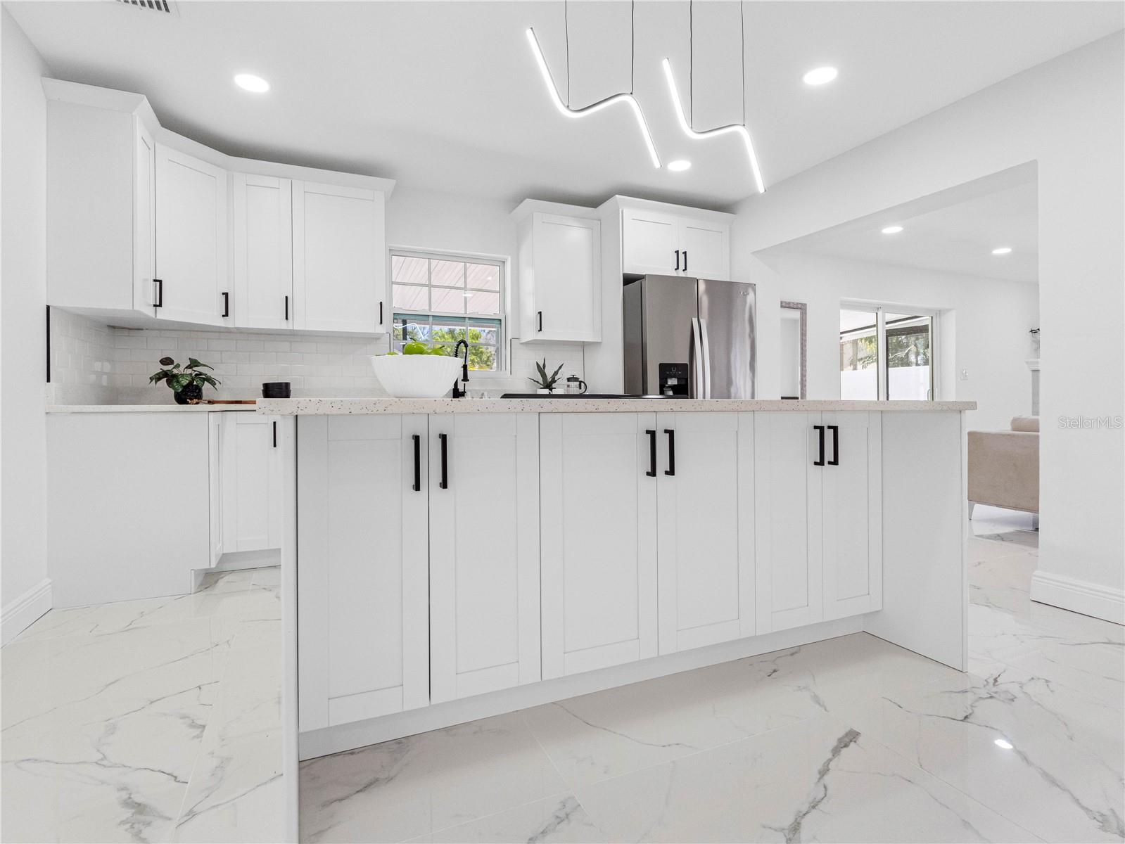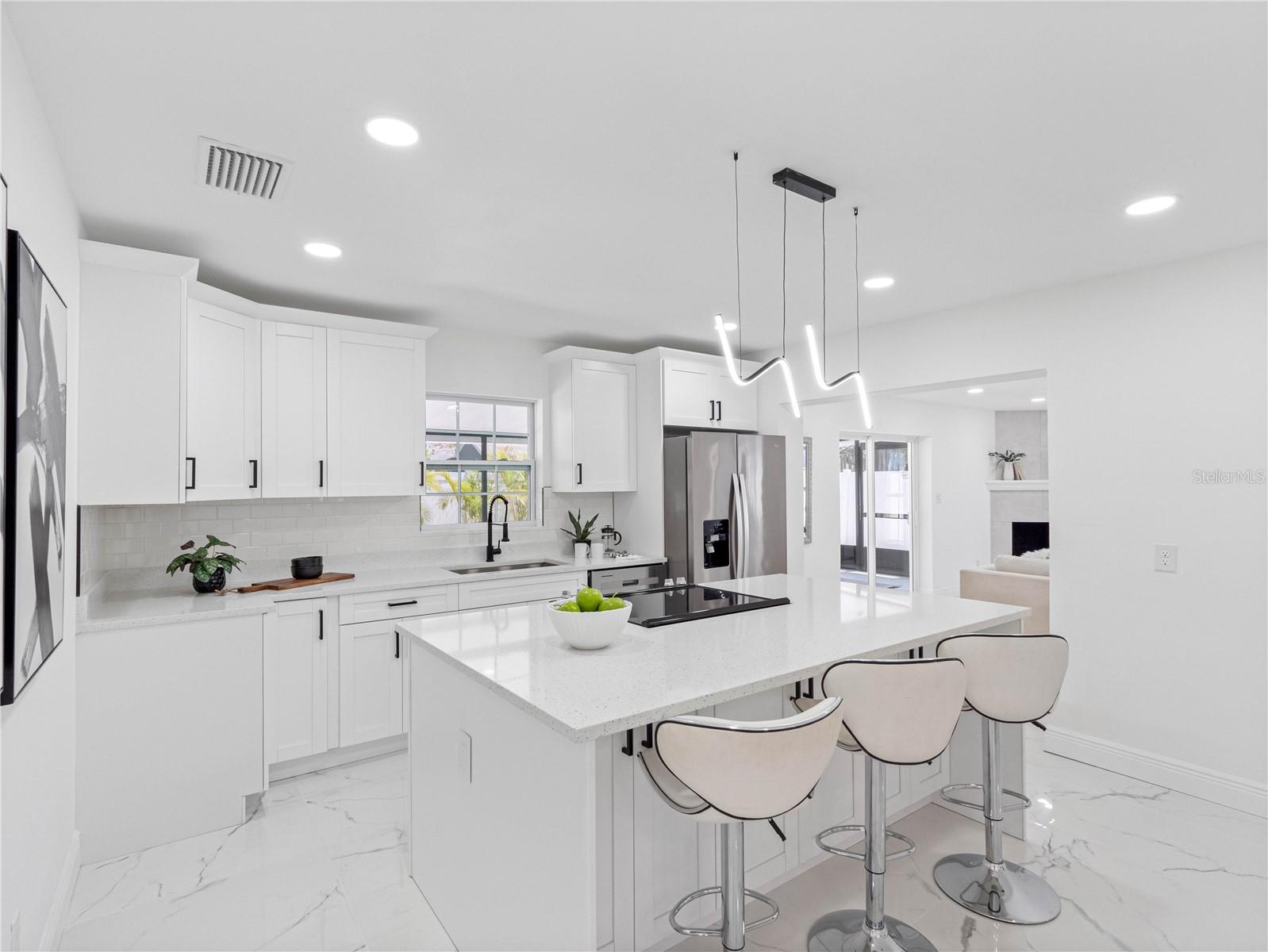 Esta casa totalmente renovada de 3 quartos e 2 banheiros oferece luxo moderno, com acabamentos sofisticados e espaçosa vida interior-outdoor. Os destaques interiores incluem pisos de ladrilhos de porcelana, cozinha de um chef com bancadas de quartzo, utensílios de aço inoxidável, armazenamento da ilha e uma vista da tela de 31x10 pés e lanai de azulejos de cerâmica, além de uma ampla área de estar de 19x15 com uma janela de sacada e lareira moderna. A suíte master possui armários espelhados e um banheiro privativo do tipo spa, enquanto os dois banheiros mostram equipamentos pretos elegantes e design contemporâneo. E para um conhecedor de vinhos ou convidados divertidos em grande estilo, encontre aqui um espaço de bar também! ** As principais atualizações garantem que a tranquilidade: os sistemas de encanamento e elétricos foram totalmente inspecionados por profissionais certificados e licenciados (relatórios de inspeção). As atualizações adicionais incluem uma nova unidade A/C, novo aquecedor de água e um telhado de metal com classificação de furacões 2020. ** Desfrute de uma vida ao ar livre com um lanchone de 31 'x 10' com ladrilhos de cerâmica, um quintal cercado com palmeiras e uma pérgola encantadora para relaxamento sombreado. Localizado em um bairro tranquilo e estabelecido, para escolas excelentes, com fácil acesso ao centro de São Petersburgo, Shore Acres Rec Center, Campos de golfe e destinos de compras principais como Publix, Whole Foods e Trader Joe - esta casa é a mistura perfeita de conforto, elegância e conveniência.