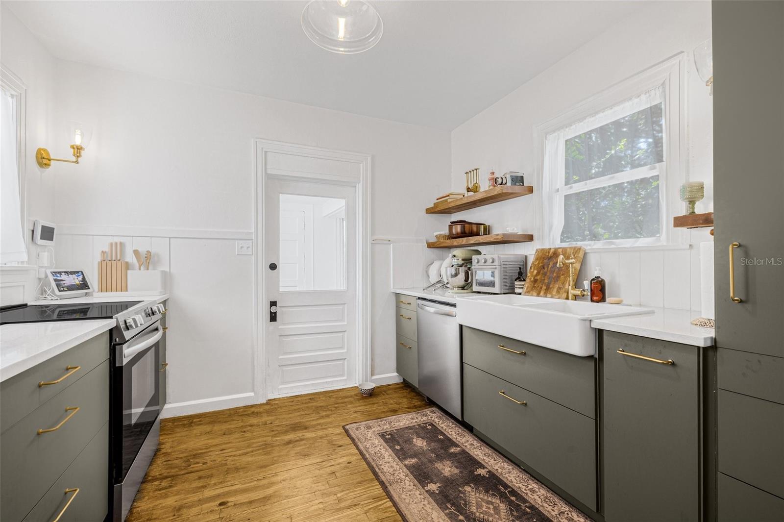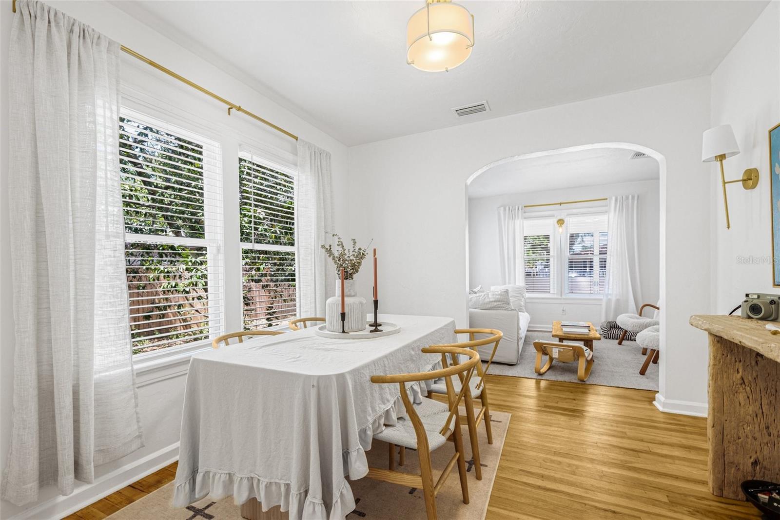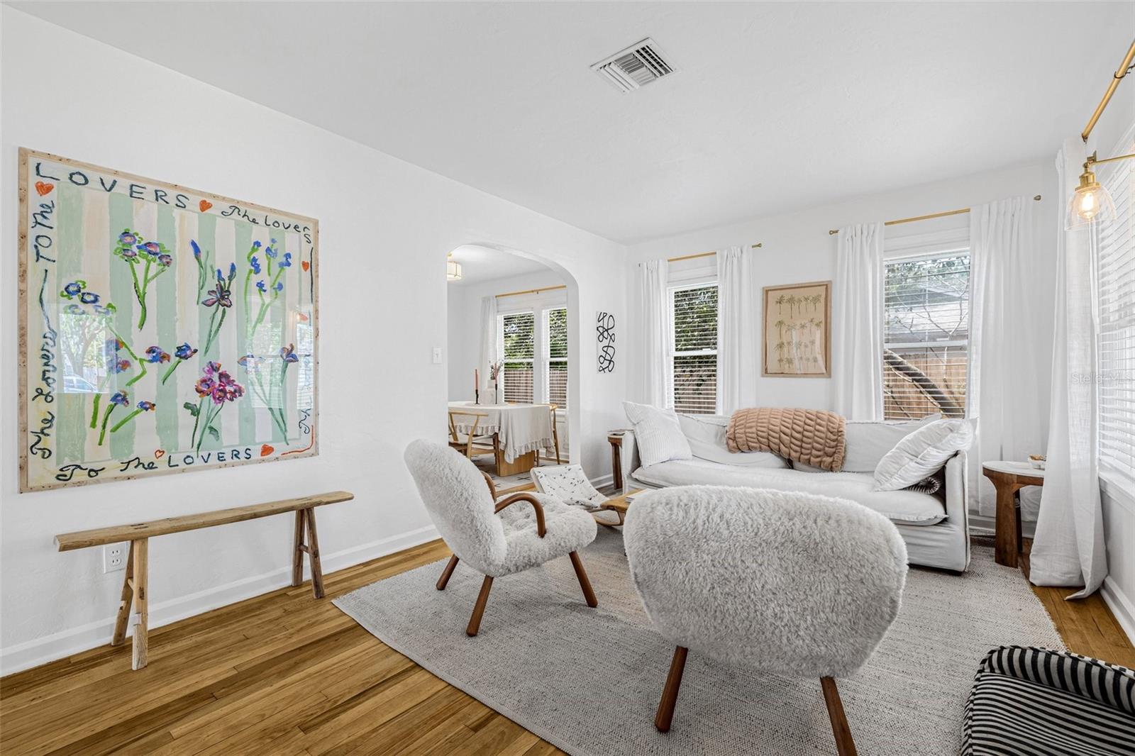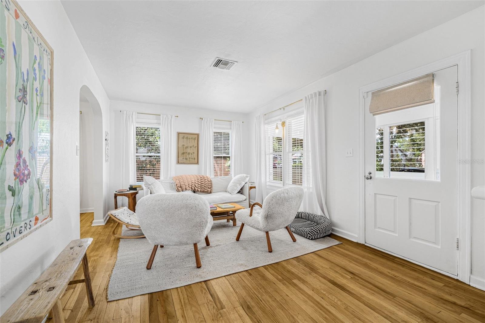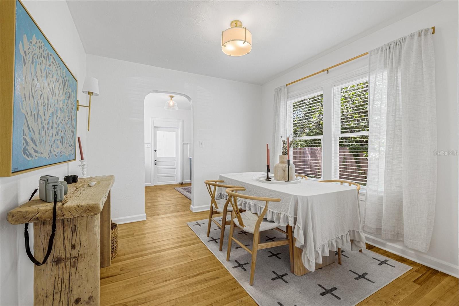 Este bangalô de 3 quartos totalmente atualizado combina um estilo vintage bonito com atualizações atenciosas por toda parte. Uma marquise fechada encantadora recebe você em um interior quente e convidativo, com pisos de madeira e um layout contínuo. A cozinha foi atualizada com bancadas de quartzo, utensílios de aço inoxidável, uma pia da fazenda dupla e prateleiras flutuantes. Uma área de jantar formal conecta a cozinha e os espaços de convivência, enquanto a sala apresenta uma lareira de tijolos clássicos como peça central. Do lado de fora, o lote de canto de grandes dimensões oferece amplo espaço no quintal, com muito potencial para expansão. Localizado no desejável Central Oak Park, esta casa oferece fácil acesso ao centro de São Petersburgo, parques próximos e uma variedade de comodidades e atrações locais - além de estar situado na Zona de Inundação X. Não perca a oportunidade de possuir esta jóia em um local privilegiado!