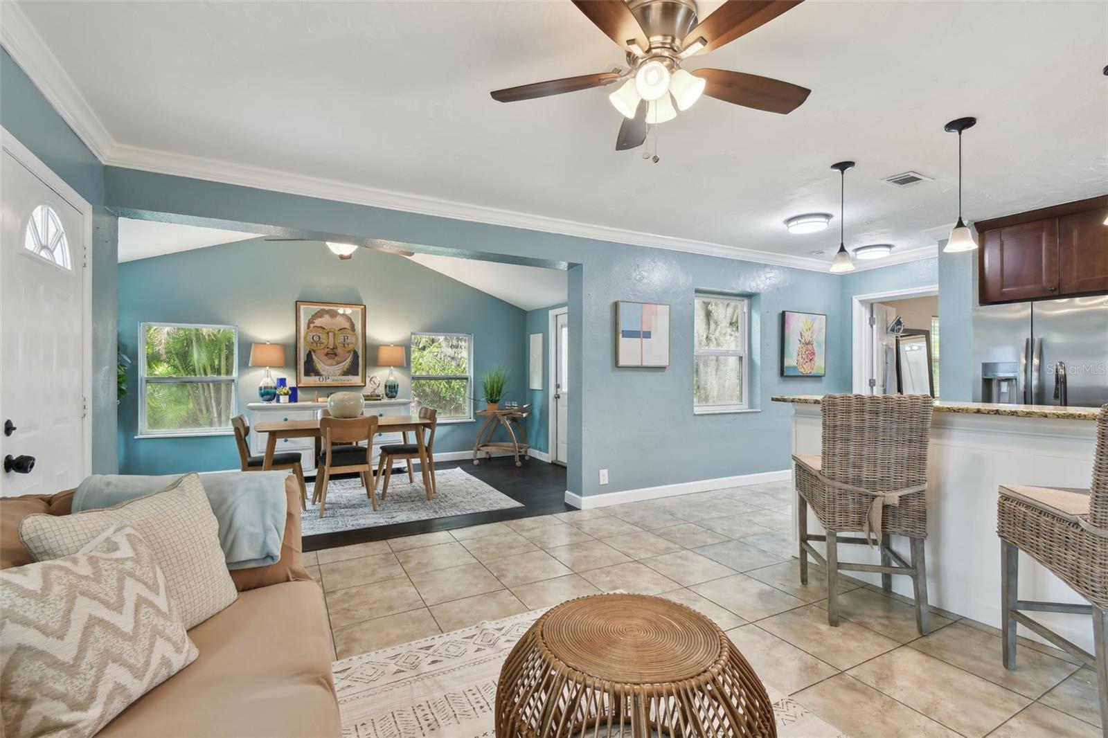 Bem-vindo a esta casa lindamente mantida de 3 quartos e 2 banheiros, aninhada no coração do bairro de Northeast Park, altamente procurado. Perfeitamente situado a uma curta distância a Whole Foods e a um curto passeio de bicicleta até o Coffee Pot Park e o vibrante centro de St. Pete, esta casa oferece conforto e conveniência. Entre em uma planta convidativa de piso aberto que apresenta tetos altos na área de jantar, criando um espaço brilhante e arejado, perfeito para entretenimento. O layout de quartos divididos garante a privacidade, com a espaçosa suíte primária escondida na parte traseira da casa. O banheiro da suíte possui um chuveiro, pia de dupla vaidade e amplo espaço no armário. A cozinha, completa com utensílios de aço inoxidável mais recentes, bancadas de granito e muitos armários para armazenamento. Logo na área de estar principal, você encontrará dois quartos de hóspedes de tamanho bem e um banheiro moderno de hóspedes atualizado para família ou visitantes. Voltar, aproveite o estilo de vida da Flórida sob um pátio naturalmente sombreado que abre para um grande quintal paisagístico - ideal para relaxar, jardinar ou até mesmo expansão futura. Os recursos adicionais incluem um telhado totalmente novo (2025), um novo sistema A/C (2024) e paisagismo maduro que fornece apelo e privacidade do meio-fio. Não perca a oportunidade de chamar essa jóia pronta para mover-se de sua nova casa em um dos bairros mais desejáveis de St. Pete!